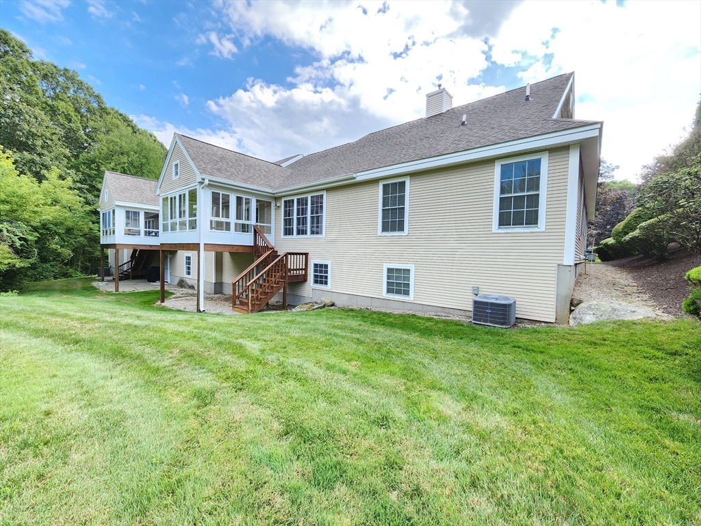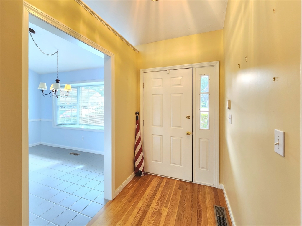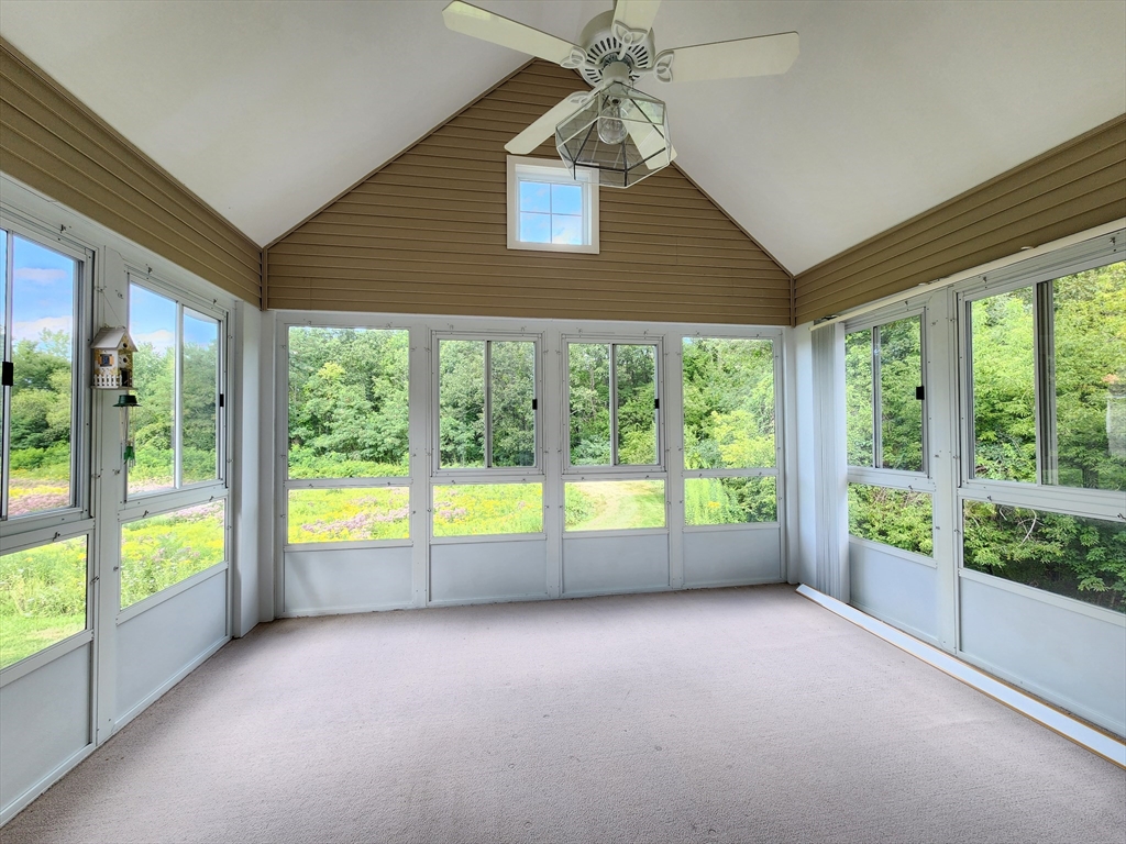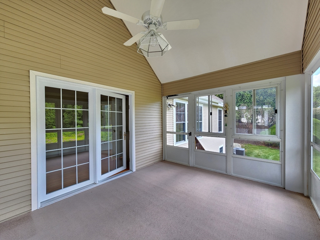 Sunny south facing over 55 one level in Active Adult community. Fresh & sunny living area, Bright kitchen with plentiful cabinets, Corian counter and sunny bay window eating area. Entertain in the Dining room open to the cathedral ceiling living room with hardwood floors. French doors to den, a perfect space for your reading chair or TV. All summer enjoy the private, vaulted screen porch with full windows for the chilly times. Spacious vaulted main bedroom with new stain master carpeting, provides an oversized walk in closet & bath with whirlpool and separate shower. Walk out lower level partially finished with family room, bonus room and half bath. Ample driveway and 1 car garage with direct access to the kitchen. Updated heat in 2023. Enjoy all the maintenance free benefits of condominium living in a peaceful setting you will love. The large clubhouse is great for functions, group activities, exercise, etc. Great location at end of cul-de-sac with lots of privacy.