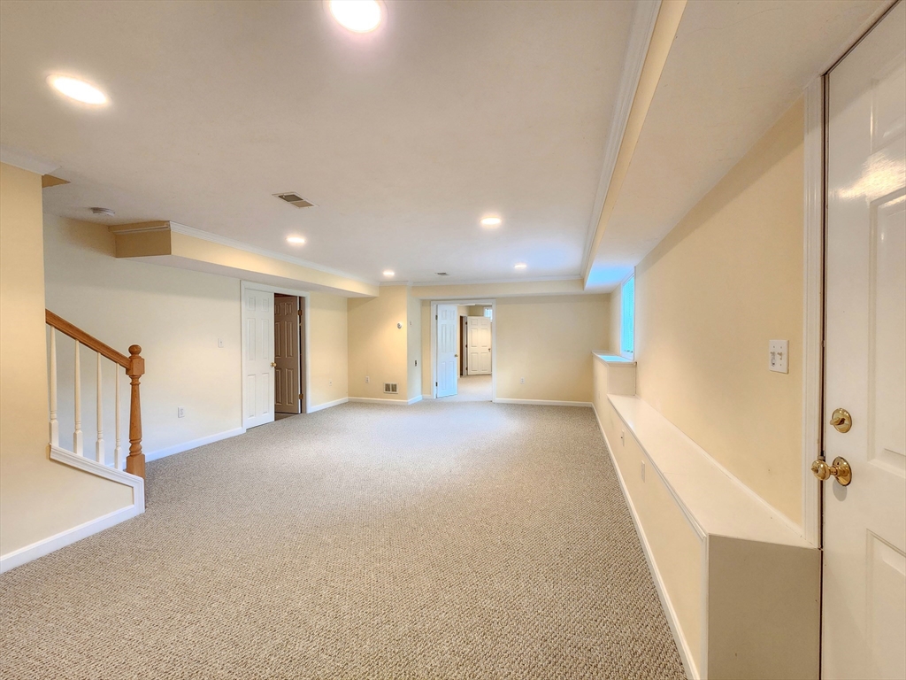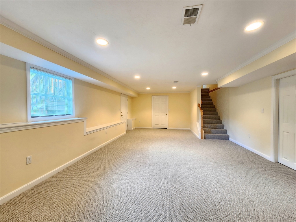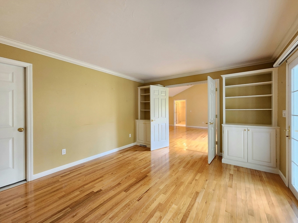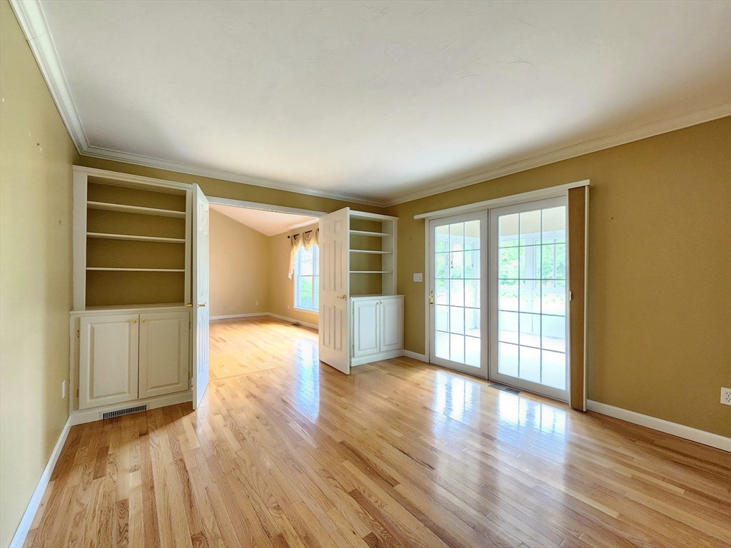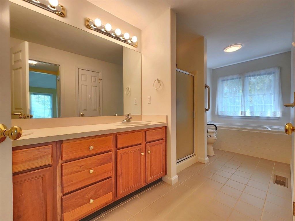 Sunny south facing over 55 one level in Active Adult community. Fresh & sunny living area, Bright kitchen with plentiful cabinets, Corian counter and sunny bay window eating area. Entertain in the Dining room open to the cathedral ceiling living room with hardwood floors. French doors to den, a perfect space for your reading chair or TV. All summer enjoy the private, vaulted screen porch with full windows for the chilly times. Spacious vaulted main bedroom with new stain master carpeting, provides an oversized walk in closet & bath with whirlpool and separate shower. Walk out lower level partially finished with family room, bonus room and half bath. Ample driveway and 1 car garage with direct access to the kitchen. Updated heat in 2023. Enjoy all the maintenance free benefits of condominium living in a peaceful setting you will love. The large clubhouse is great for functions, group activities, exercise, etc. Great location at end of cul-de-sac with lots of privacy.