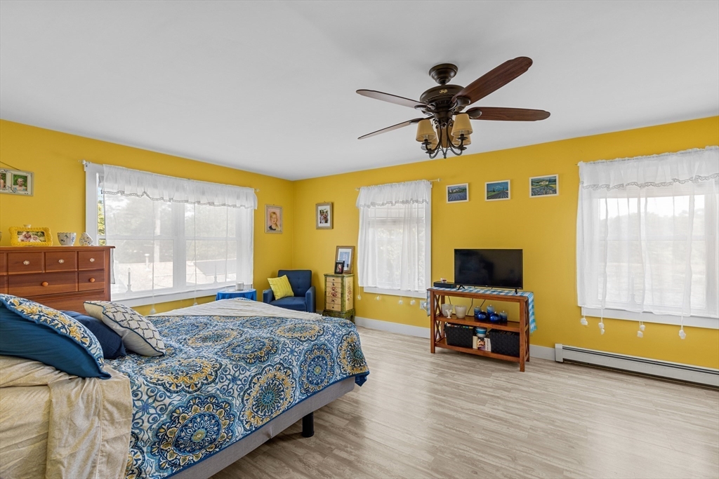 Sun-kissed days & starlit nights await at this 11-year-young Colonial with rare frontage on King Pond in a great West Plymouth neighborhood. Designed for versatility, multiple rooms offer endless possibilities—perfect for gatherings, creative spaces, or a remote working lifestyle with a view. The spacious primary suite boasts a walk-in closet, while the exceptional kitchen features Corian countertops & abundant cabinetry. Generous closet space through-out. Ideal as a year-round residence or summer retreat, spend your days fishing, kayaking & swimming just steps from your door, then unwind on the spacious 11x23 composite deck or by the firepit as the sky turns to gold. Features include a whole-house generator, 1st-floor laundry, newer mini-splits & sweeping pond views. Minutes to vibrant downtown Plymouth’s waterfront, dining, & cultural scene—where historic charm meets coastal energy—this home perfectly blends peaceful pondfront living with the best of seaside New England.