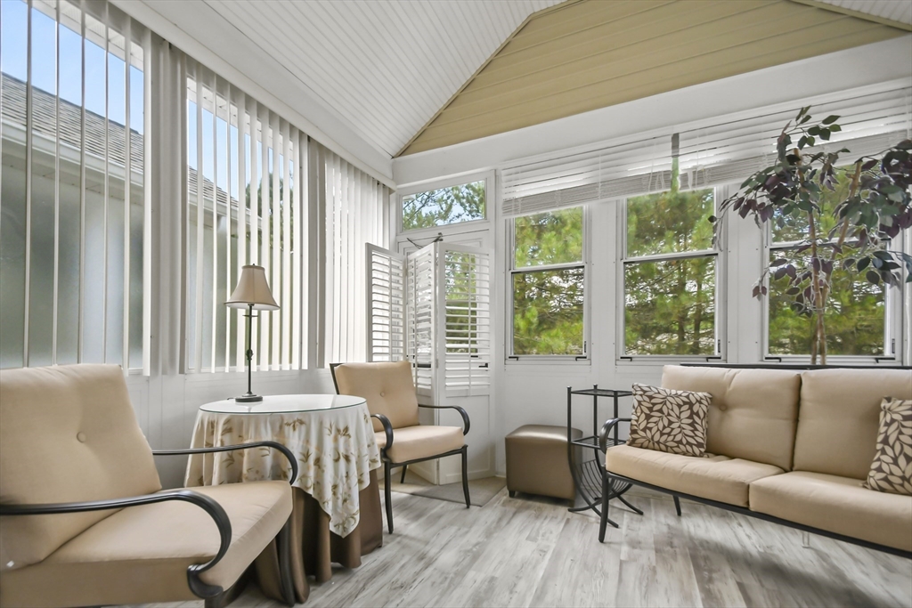 The Villages at Orchard Meadow is one of Shrewsbury’s premier 55+ community, celebrated for its warm atmosphere and impeccable management. This sought-after Ashley Model shines with a bright, welcoming foyer and a spacious eat-in kitchen offering direct access to the one-car garage. The open living and dining rooms create an inviting setting for gatherings, while the first-floor primary suite pampers with a walk-in closet and roomy bath. Guests will love the private front-hall bedroom and nearby full bath. The three-season porch is the perfect spot for morning coffee, afternoon sun, or admiring the beautifully landscaped grounds. A finished lower level offers endless possibilities with an open layout, half bath, and generous storage. Hardwood floors grace most rooms, adding timeless appeal. Here, you’ll find not just a home, but a vibrant community ready to welcome you!