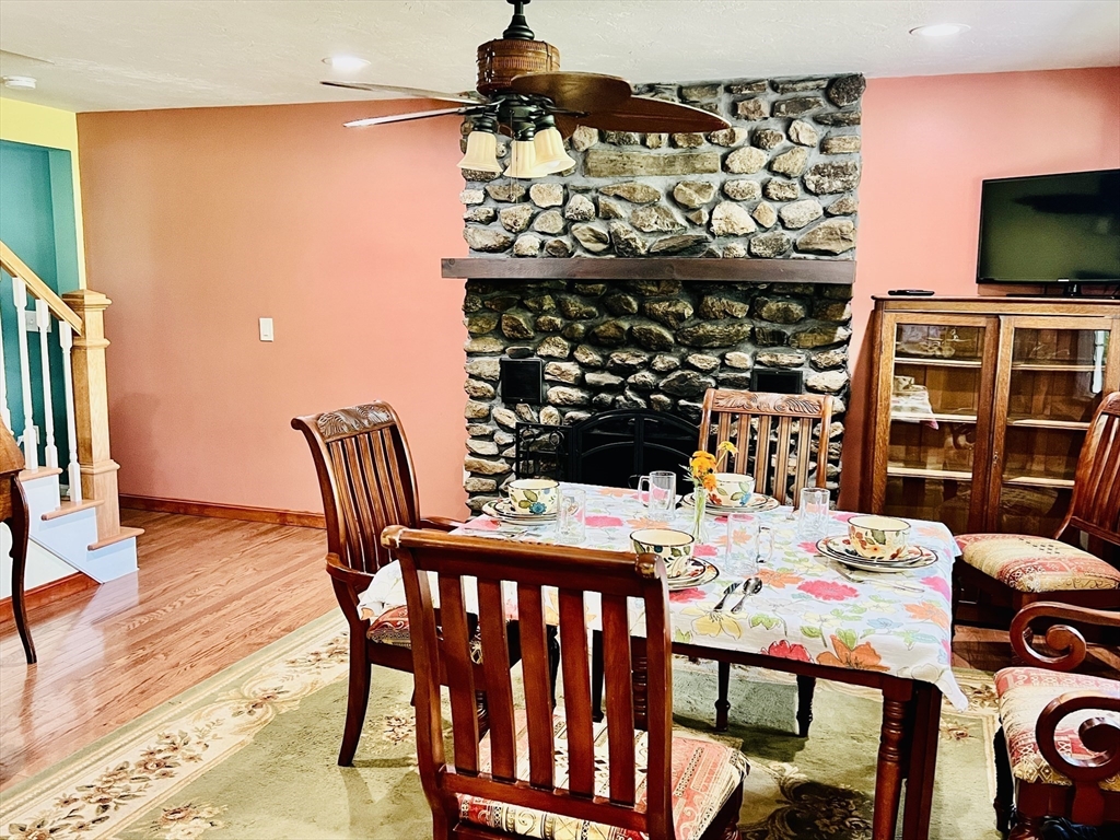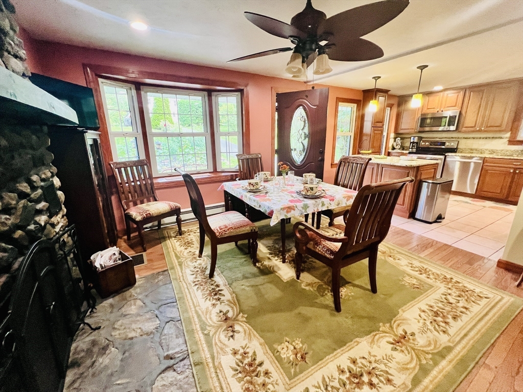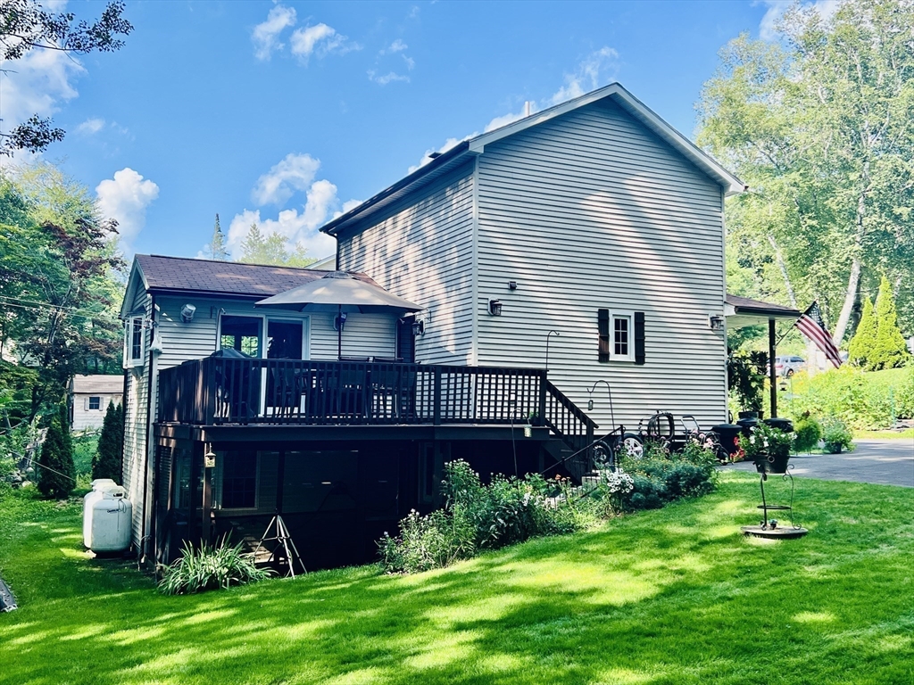 Welcome home to this fabulous 3 bedroom 1.5 bath colonial with picturesque front porch, just blocks away from Webster lake. 3.5 miles to the beach and to highway access. The seller is the original owner and has lovingly maintained and updated this home over the years. Kitchen and 1/2 bath were updated in 2016 and full bath, bedrooms and family room with new propane heater were updated in 2019. The modern kitchen with center island, tile floor and SS appliances opens onto a spacious dinning room with a beautiful fieldstone fire place. The living room with gleaming hardwwod floors has a slider that opens onto a big deck which over looks the expansive yard. 1/2 Bath and laundry on the main floor. 2 bedrooms and a nicely remodeled full bath are on the second floor. There is a 3rd bedroom on the LL and a beautiful walkout family room. This bright open roomy space is a perfect spot for family fun!