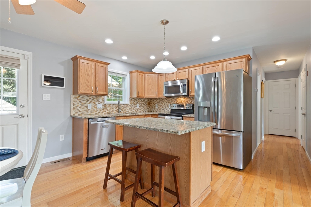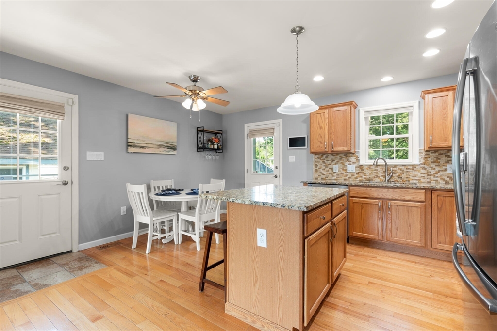 Enjoy lakeside living in this sun-filled Cape in Norfolk’s Mirror Lake community, just steps from a sandy neighborhood beach; perfect for swimming, kayaking, fishing & relaxing! The first floor features flawless hardwood floors, which flow throughout a convenient open floor-plan. The updated, eat-in kitchen offers SS appliances, granite countertops and direct access to the back deck. A first floor bedroom, home office and full bath make it possible for easy, one level living. Upstairs, two oversized bedrooms offer space and comfort. A charming, fully fenced backyard is just the right size for container gardens, grilling, or simply unwinding. The location is the perfect blend of accessibility, activity and nature...Ideally located between King Philip Middle School and High School, Wrentham’s Rice Fields & playground, and the Norfolk Commuter train station. Showings begin at first Open House.