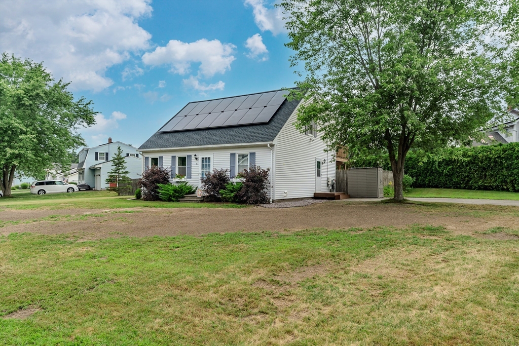 Welcome to this charming Single single-family cape in Ludlow, MA. With a spacious layout of 1568 square feet situated on a 0.38-acre lot, this home offers a serene living experience. The property features 3 bedrooms and 2 full baths, gas heat to keep you cozy during the winter months, and a deck off the 2nd-floor bedroom where you can enjoy peaceful mornings or unwind in the evenings. Additionally, a solar system has been installed to help minimize energy costs. This home features desirable amenities, including central air, laminate floors, vinyl siding, and more. All appliances, including the washer and dryer, remain with the home for added convenience. The property's central location offers easy access to nearby amenities and community resources. With ample space on the lot, there is potential to expand for a garage or additional living space, allowing you to customize the home to fit your needs and lifestyle perfectly. Put this one at the top of your list!