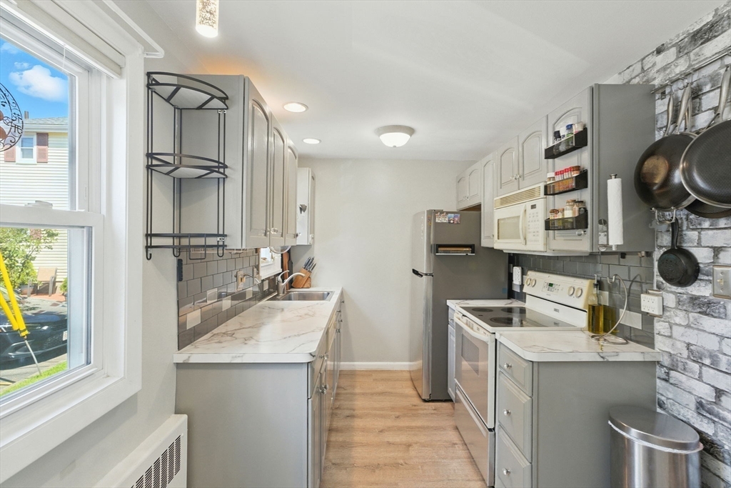 A charming and thoughtfully designed 1B 1.5B townhouse in a highly convenient location with an exceptionally low HOA fee of $275 which includes heat, hot water and snow removal! This 2-level home offers a bright kitchen and an open living/dining area on the first floor, perfect for enjoying the beautiful views of trees and lawns right outside your window. Upstairs, you’ll find a spacious bedroom with a bonus room - ideal for a guest sleep space or a reading nook. The partially finished basement features a half bath and offers incredible flexibility - extra storage, a workshop, or a cozy media room! In-unit laundry in the basement, and one assigned parking space right in front of the home. Nestled in a quiet, well-kept neighborhood, this home is just minutes from Rt-9, I-90, and the Framingham commuter rail, offering an easy commute into Boston. Enjoy nearby shopping and dining at Shoppers World and Natick Mall, along with parks, cafes, and local favorites that make this area so livable