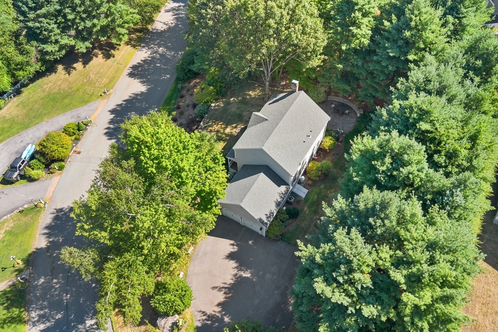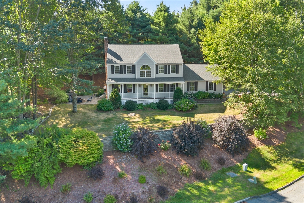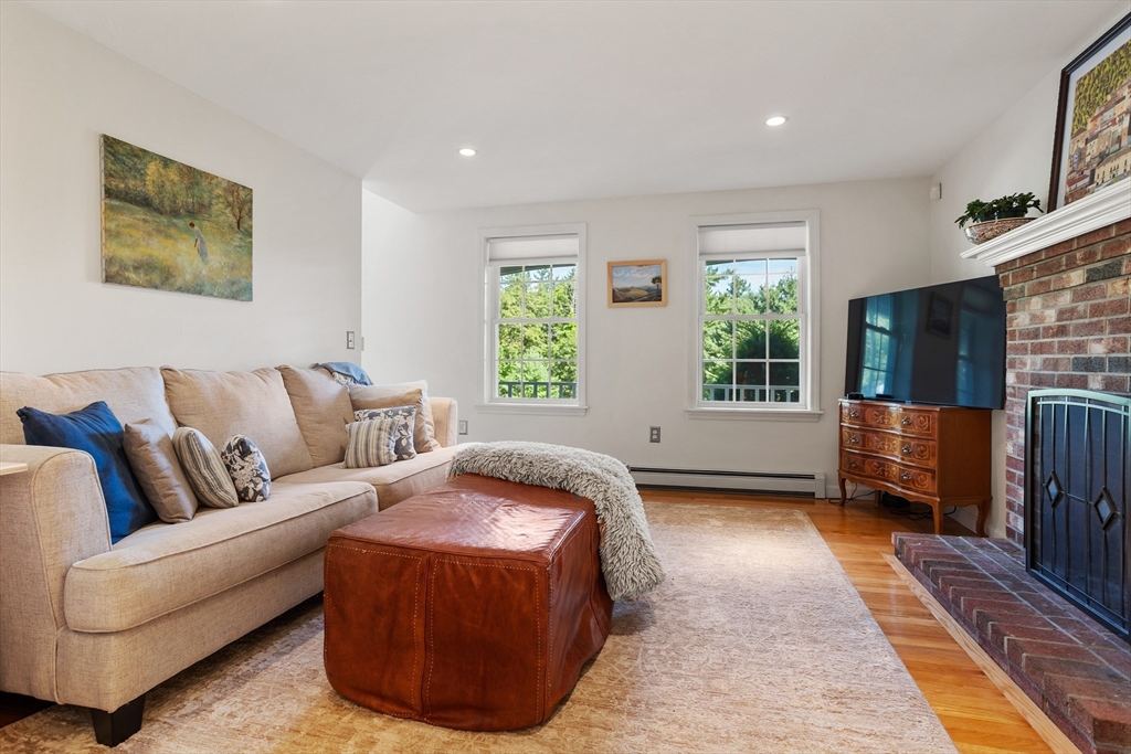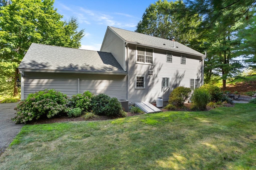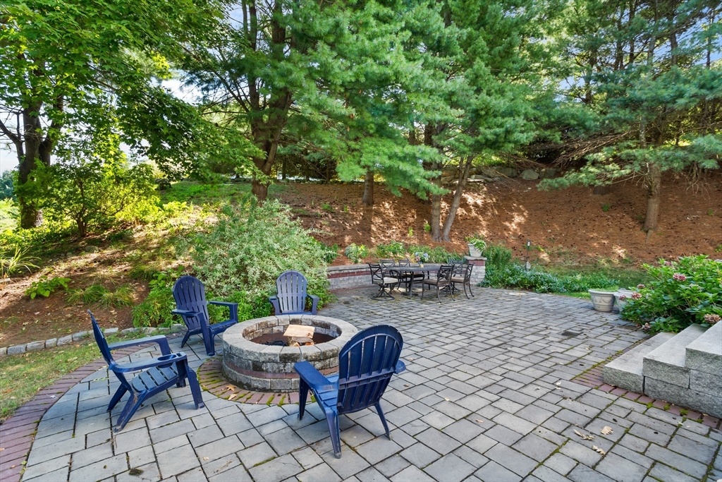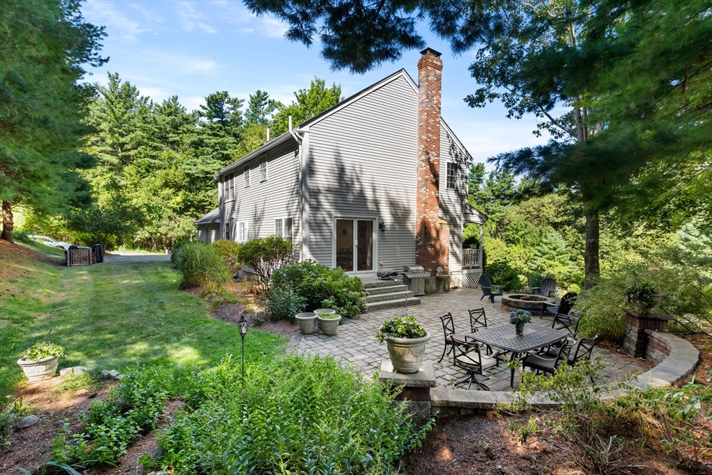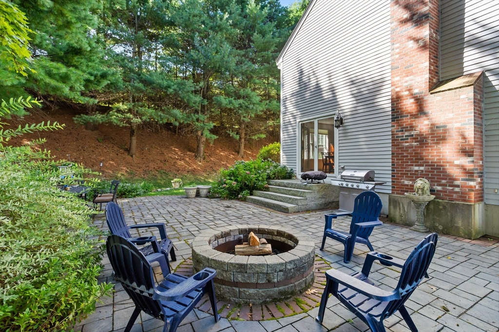 Nestled in the highly sought-after Revolution Drive neighborhood, this stunning 2,300 sq. ft. colonial offers comfort, space, and style. Featuring 3 generously sized bedrooms and 2.5 baths. The heart of the home is a modern kitchen complete with a sprawling center island—ideal for casual meals or hosting friends and family. Just off the kitchen, a warm and inviting fireplaced living room provides the perfect spot to relax. A versatile formal dining room (or potential home office/den) adds flexibility to the main level, along with a convenient half bath and first-floor laundry. Upstairs, the spacious en suite primary bedroom offers a private retreat, while two additional bedrooms share a full bath. The finished basement provides the perfect bonus area for a craft room, home office, or recreation space. Step outside through sliding doors to an expansive custom patio—beautifully bordered by mature trees for privacy.
