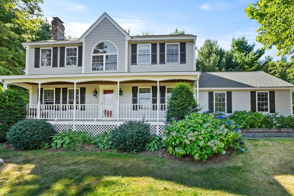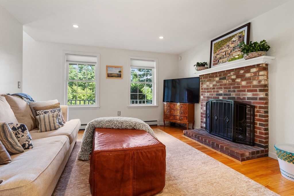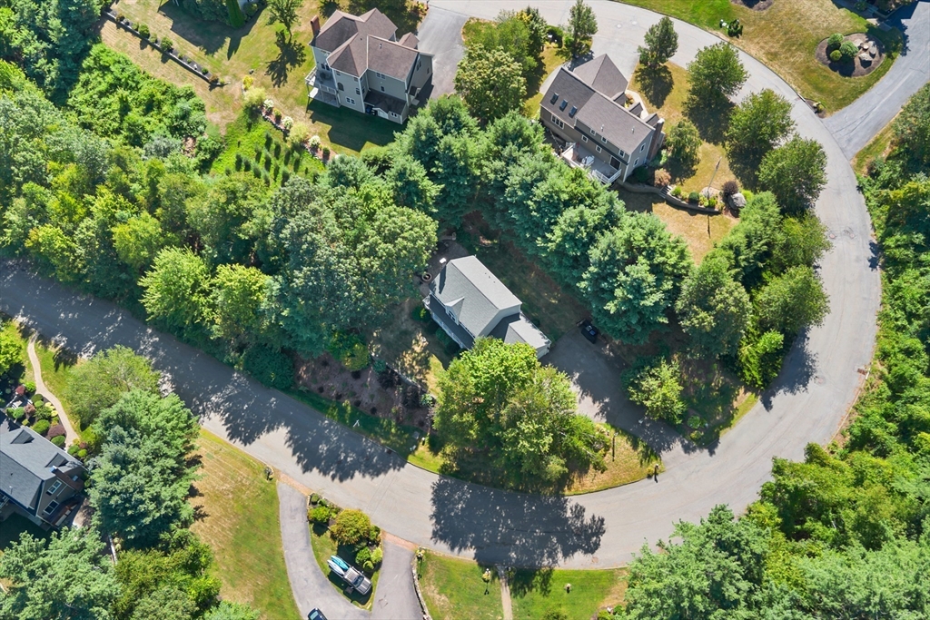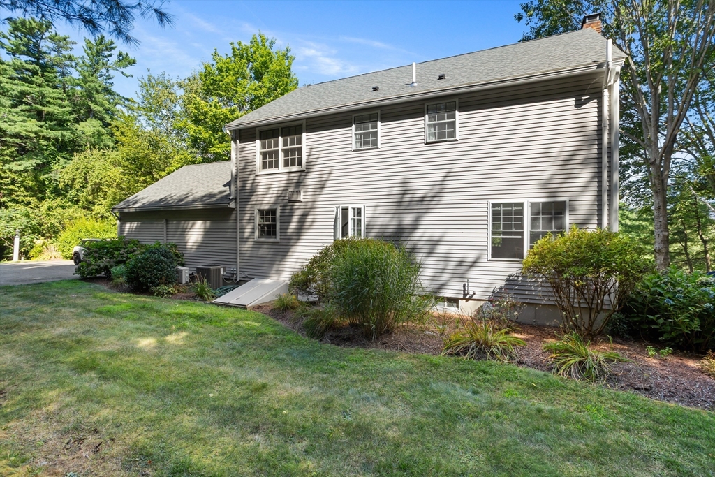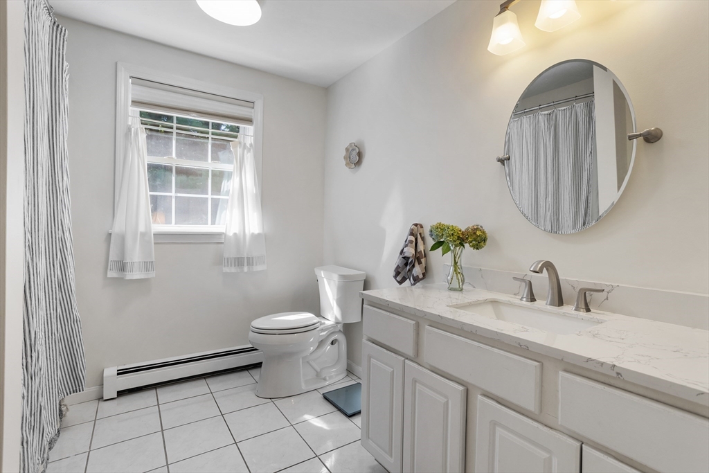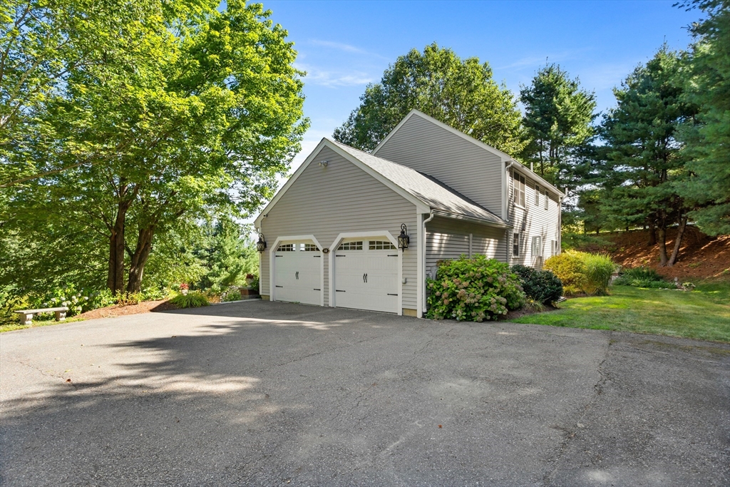 Nestled in the highly sought-after Revolution Drive neighborhood, this stunning 2,300 sq. ft. colonial offers comfort, space, and style. Featuring 3 generously sized bedrooms and 2.5 baths. The heart of the home is a modern kitchen complete with a sprawling center island—ideal for casual meals or hosting friends and family. Just off the kitchen, a warm and inviting fireplaced living room provides the perfect spot to relax. A versatile formal dining room (or potential home office/den) adds flexibility to the main level, along with a convenient half bath and first-floor laundry. Upstairs, the spacious en suite primary bedroom offers a private retreat, while two additional bedrooms share a full bath. The finished basement provides the perfect bonus area for a craft room, home office, or recreation space. Step outside through sliding doors to an expansive custom patio—beautifully bordered by mature trees for privacy.