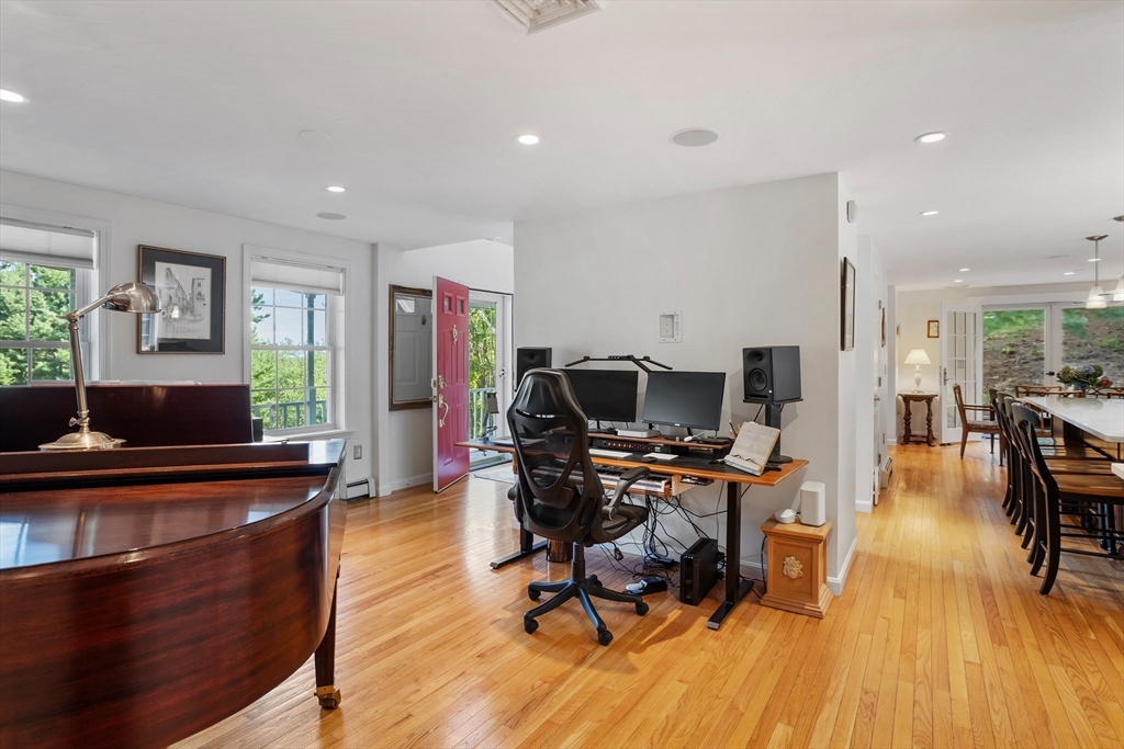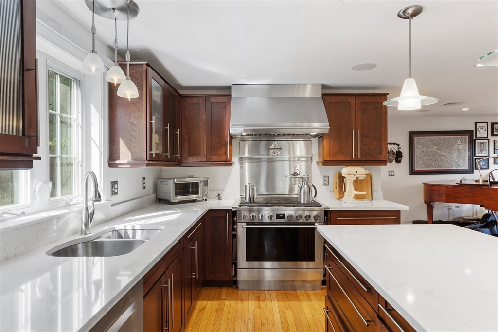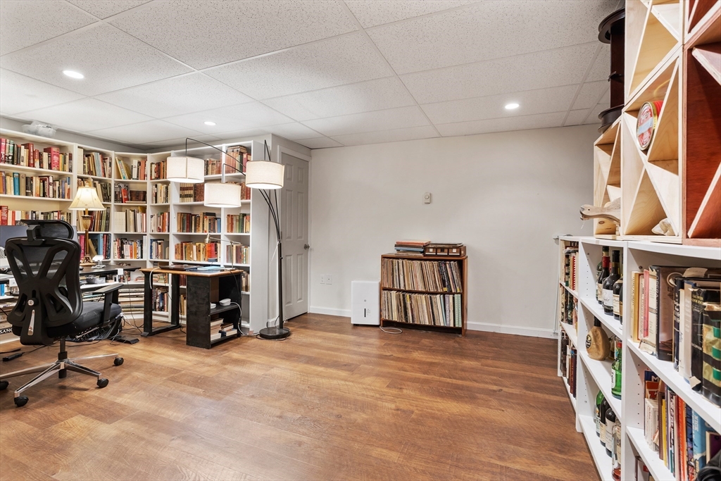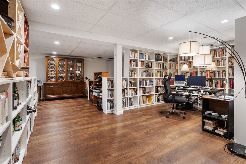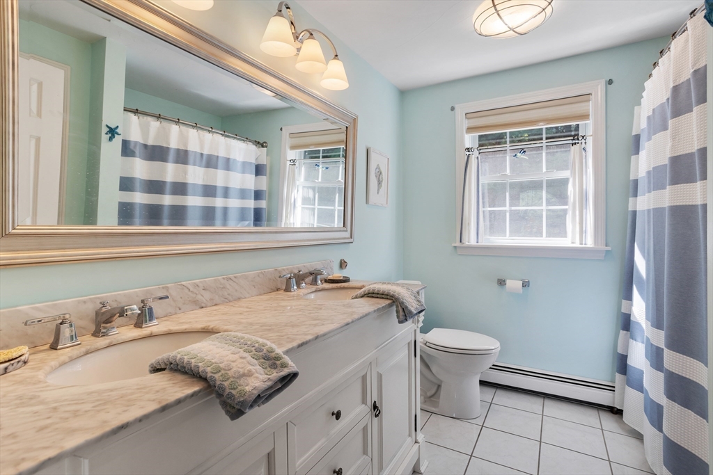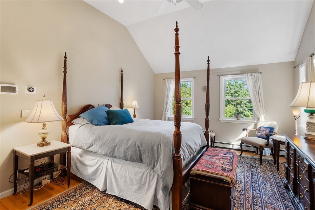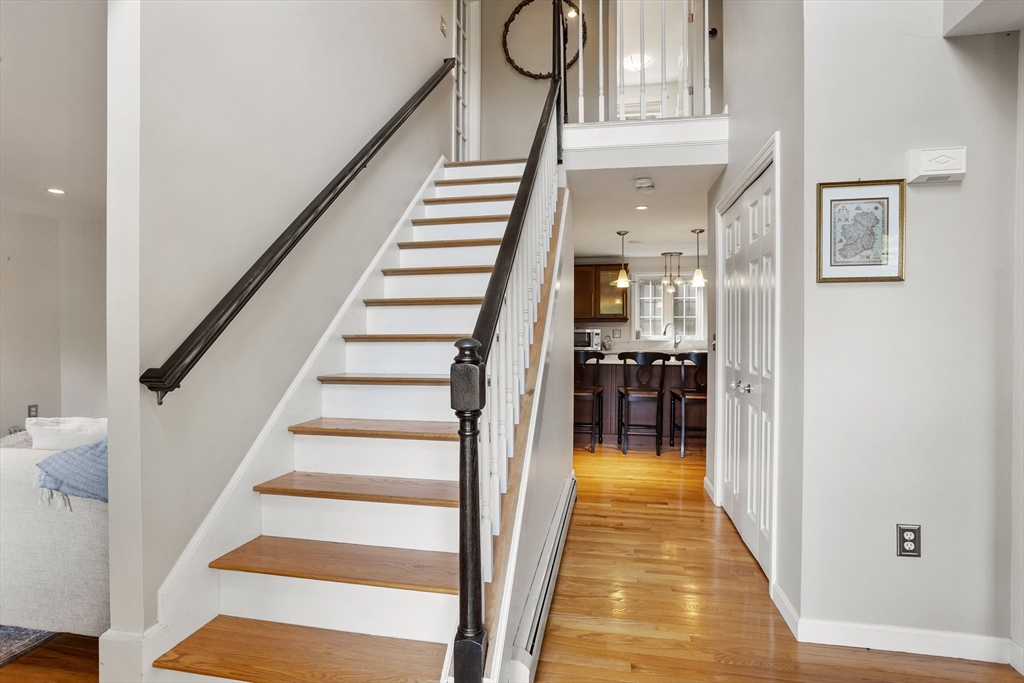 Nestled in the highly sought-after Revolution Drive neighborhood, this stunning 2,300 sq. ft. colonial offers comfort, space, and style. Featuring 3 generously sized bedrooms and 2.5 baths. The heart of the home is a modern kitchen complete with a sprawling center island—ideal for casual meals or hosting friends and family. Just off the kitchen, a warm and inviting fireplaced living room provides the perfect spot to relax. A versatile formal dining room (or potential home office/den) adds flexibility to the main level, along with a convenient half bath and first-floor laundry. Upstairs, the spacious en suite primary bedroom offers a private retreat, while two additional bedrooms share a full bath. The finished basement provides the perfect bonus area for a craft room, home office, or recreation space. Step outside through sliding doors to an expansive custom patio—beautifully bordered by mature trees for privacy.