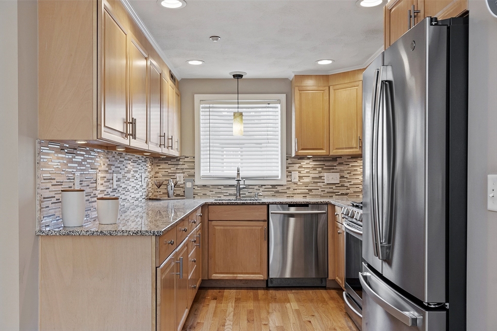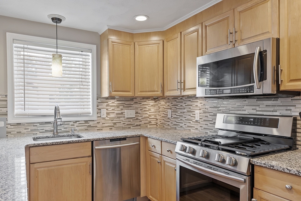 Not your typical complex - Andover Gateway has just 5 units and blends the charm of a house with the ease of a condo. This well-maintained, open-concept unit has 2 beds, 2 baths, and beautiful hardwood floors. Kitchen boasts granite countertops, stainless steel appliances & ample cabinet space. Primary bedroom has a walk-in closet, en-suite bath & sunrise views. Enjoy central air in the summer or cozy up by the gas fireplace in the winter when relaxing in the living room filled with natural light. Morning coffee on the farmer’s porch or entertaining in the spacious backyard with a fire pit. No cleaning snow off your car with an assigned spot in the heated garage. Second spot in the driveway. Commuting made easier with quick access to 495, 93 & MBTA. Andover has great restaurants, shopping, recreation & trails. Deeded storage space included. In-unit security equipped. New washer & dryer stay with the property.