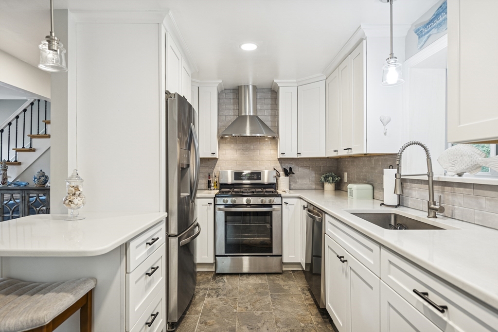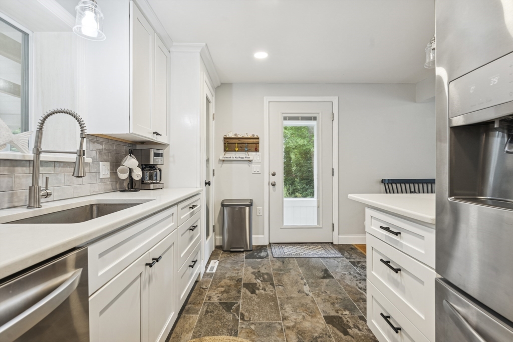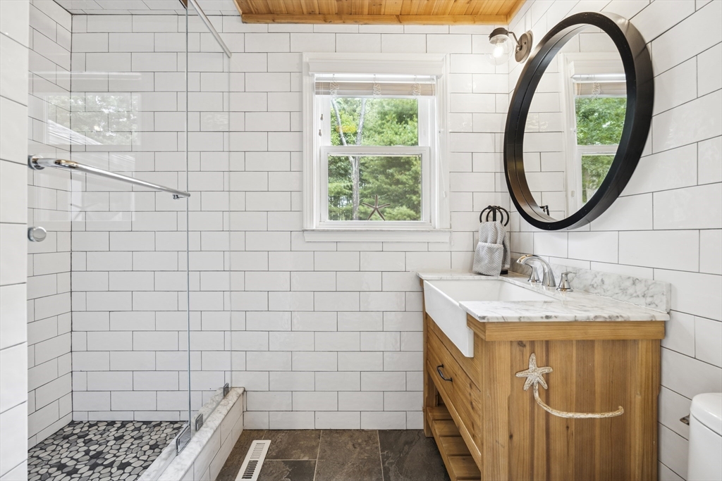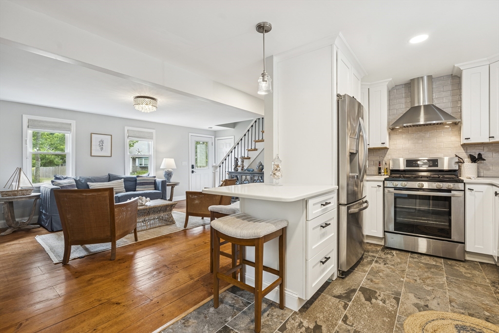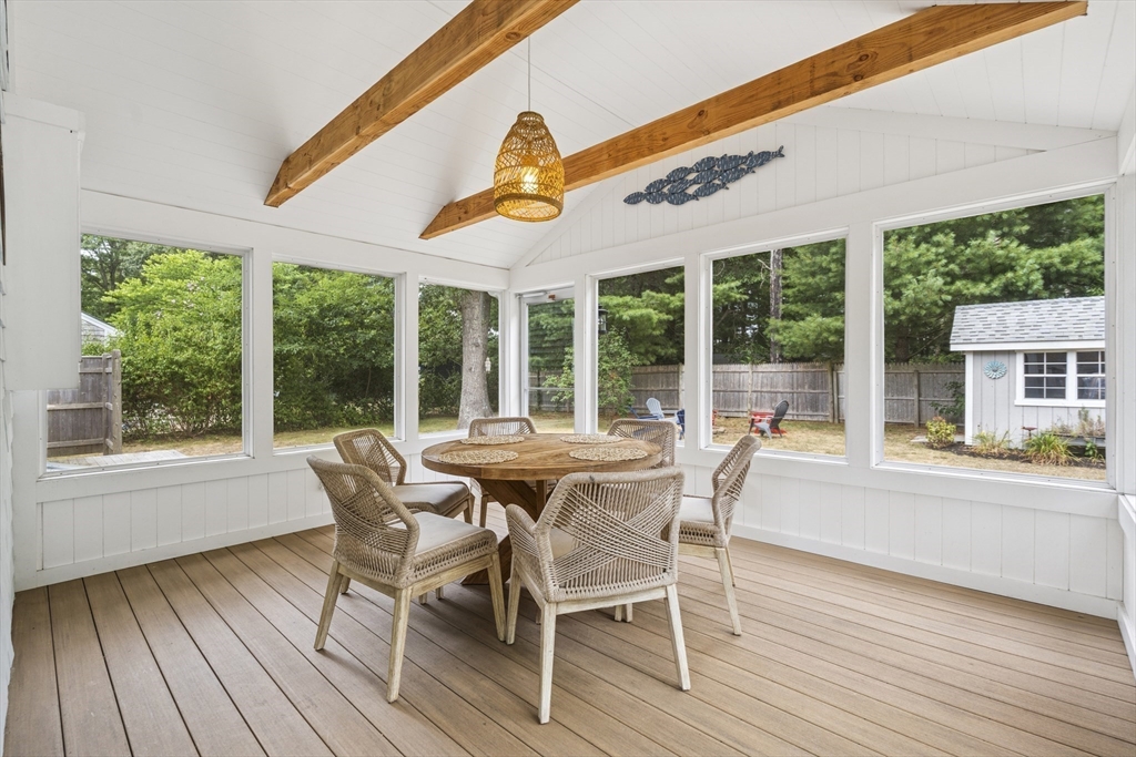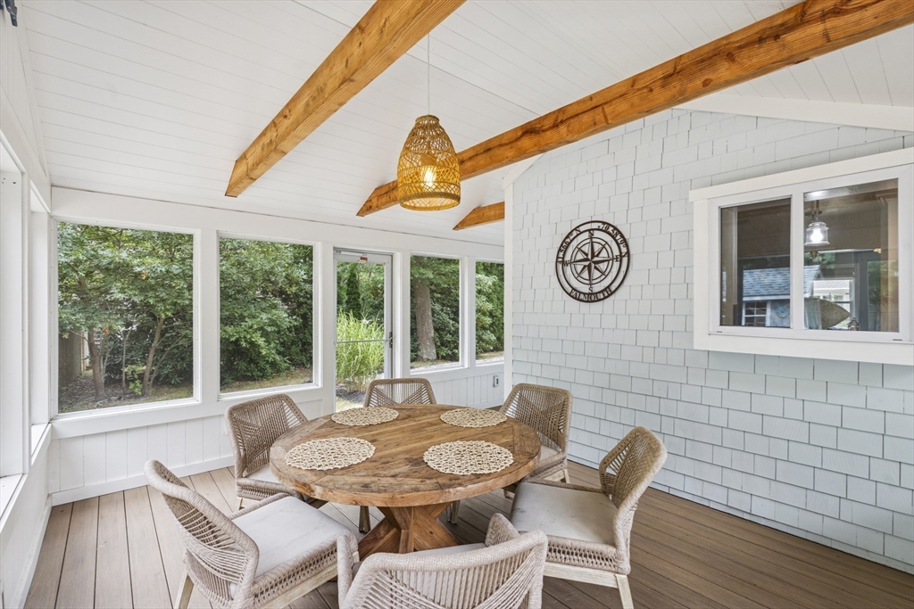 Coastal living awaits in sought-after Maravista neighborhood, just steps to a walkway to Perch Pond for kayaking w/direct access to Great Bay! This beautifully renovated beach house sits at the end of a quiet street w/a fenced backyard perfect for summer entertaining! A stunning screen porch w/cathedral ceiling, Beams and gorgeous decor flows seamlessly into the sundrenched interior, where an open design showcases wide wood floors, a stone fireplace, & a custom white kitchen w/gas cooking, quartz counters, slate flooring, breakfast bar, & pantry. The 1st floor primary suite offers a sitting area w/glass doors to private deck, outdoor shower, & spa-like bath w/subway tile & glass shower & Cedar plank ceiling. The 2nd level offers 2 MASSIVE Sunfilled BR's & designer bath w/tile surround. Perfect expansion ready in lower level! Plus Central Air, gas heat & storage shed. Make your Coastal living dreams come true! Close to Falmouth Heights & Bristol beach, Shipwrecked & downtown Falmouth!