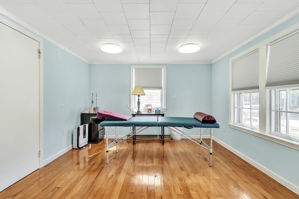 Existing commercial use in a Single Family R-1 Zone. Cape-style house most recently used as an acupuncture clinic, with a large parking lot, set on just under a quarter-acre of land. The house contains an entryroom/lobby, four exam rooms, and a full bathroom on the first floor; two more rooms, each with plumbing, on the second floor. Full, unfinished basement that's been used for storage. Excellent location for a similar commercial or office use; single family residential allowed by right, with the opportunity to turn the house back to a residential use, or redevelop. Excellent, convenient location at Woburn's Four Corners. MBTA 350 (to Alewife) & 354 (to Downtown) within steps. Minutes to Horn Pond, Battle Road Woodlands, and the Burlington Mall.