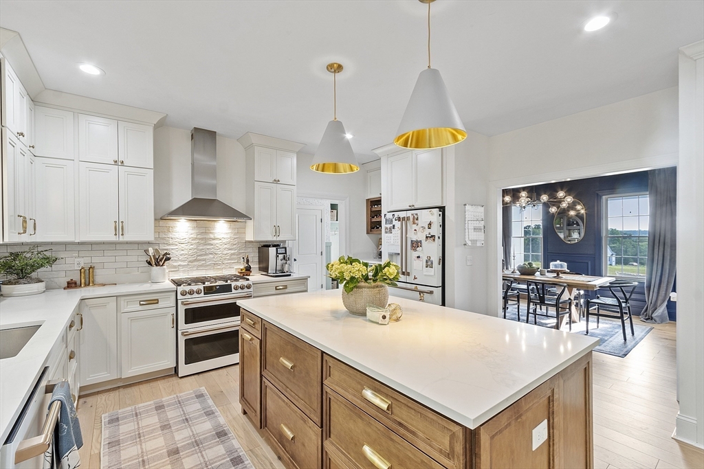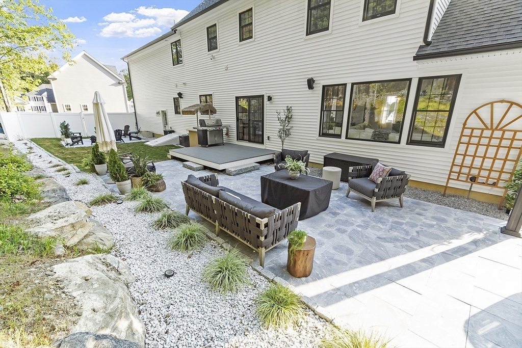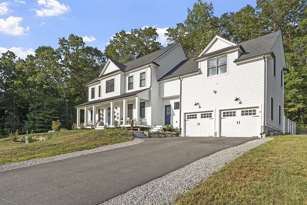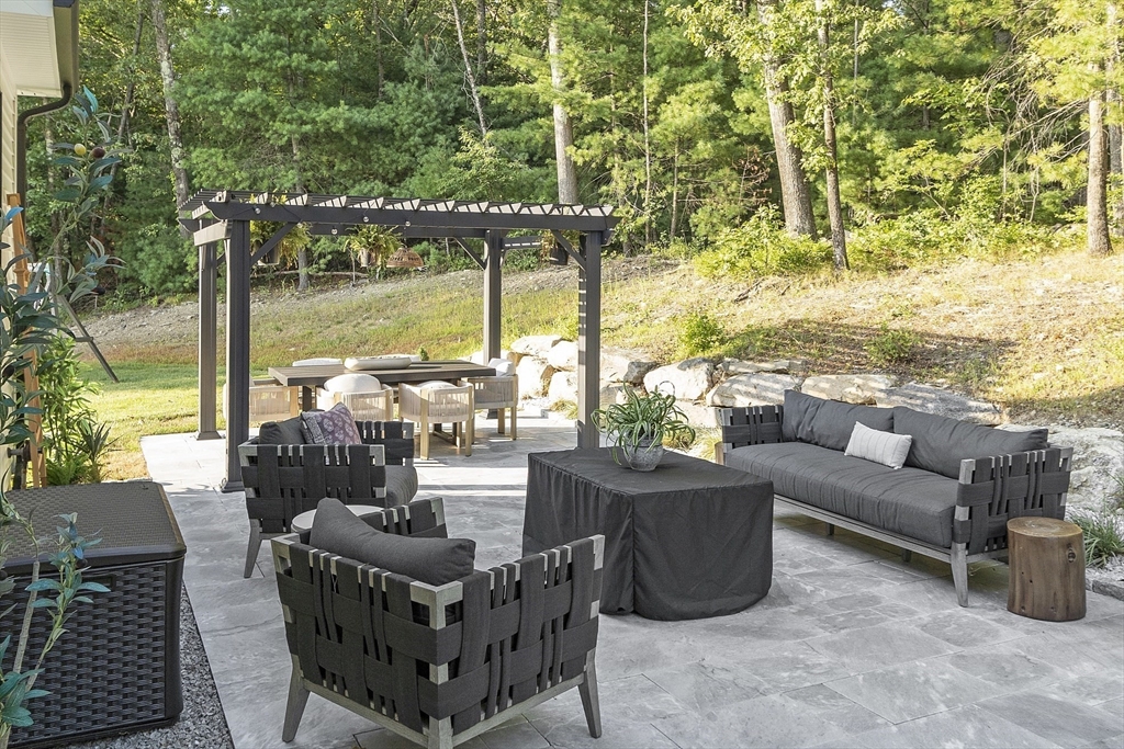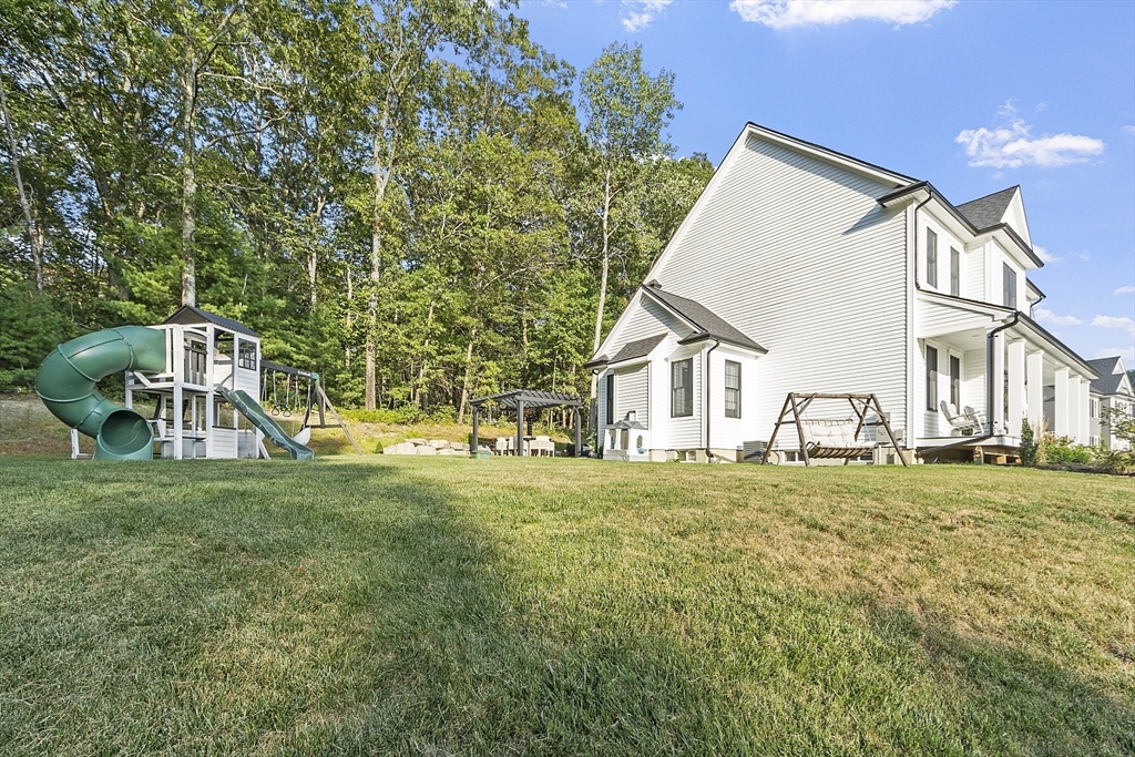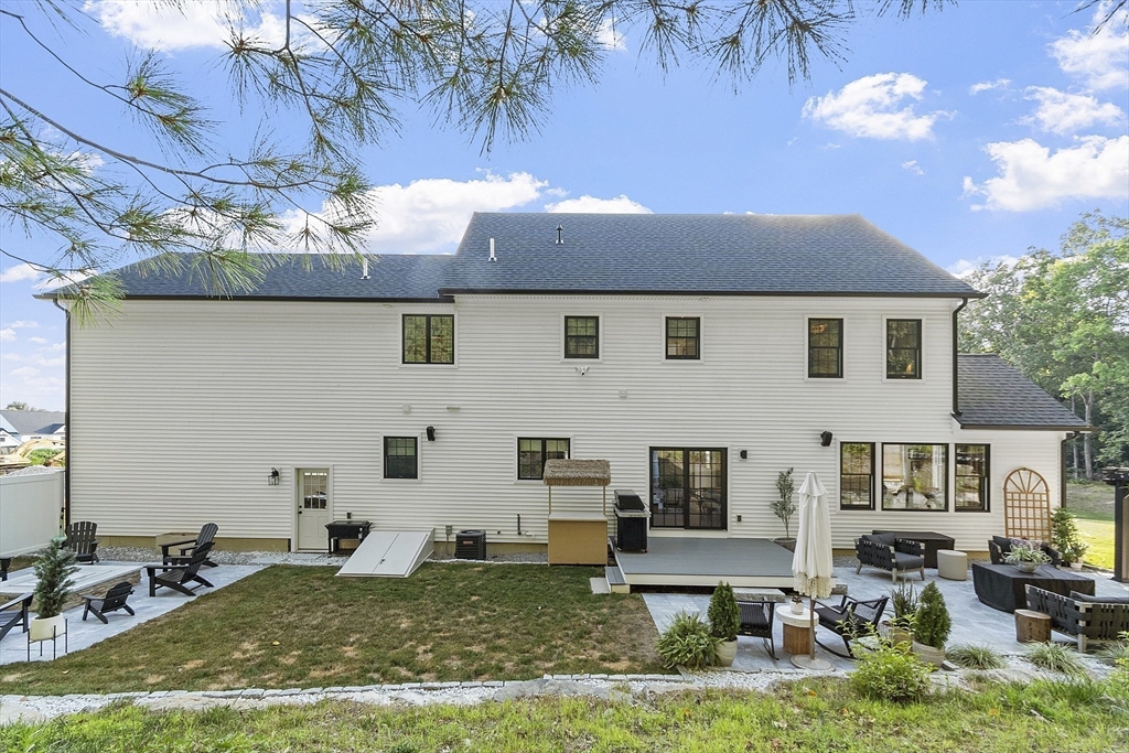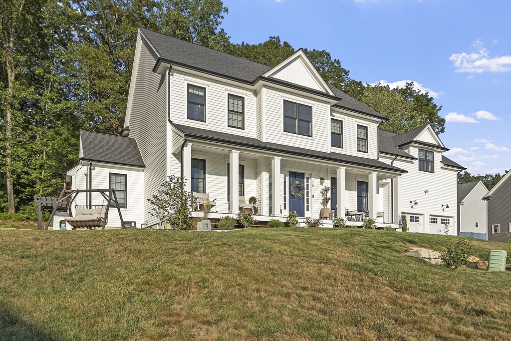 Your dream home awaits.......move-in ready in a highly desirable cul-de-sac with glorious views of sunsets over the Blackstone Valley! This like-new 4 br /2 1/2 bath nearly 4500 sq ft Colonial is loaded with extras including such amenities as state-of-the-art kitchen with range hood, tile backsplash and granite counters, spacious mudroom, shiplap, crown moulding, and 1st floor office. The finished basement adds tremendous living space including a bar lounge with wine wall and dry bar, along with a family / playroom, and an exercise room. The backyard boasts a large bluestone patio including a custom pergola, wood-burning fire pit, and expansive seating areas flanked by speakers - perfect for entertaining! Tremendous backyard privacy are yours with the abutting acres of Town-owned wooded recreational area complete with walking trails. Centrally located near the Town Center with easy highway and train access. This property has it all with its location, privacy, and great neighborhood!