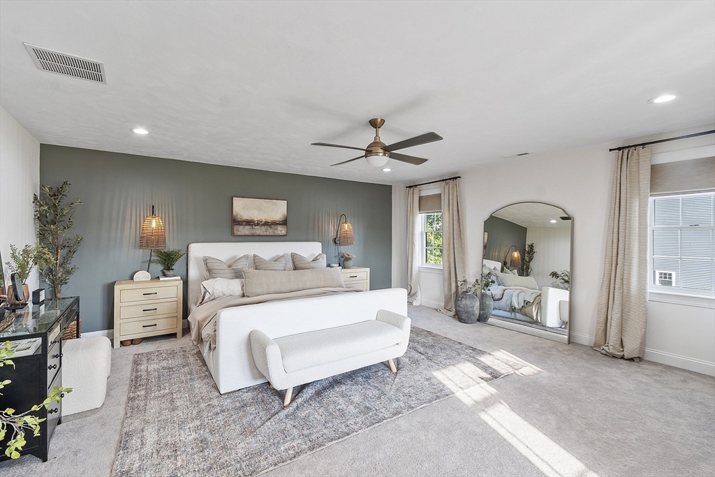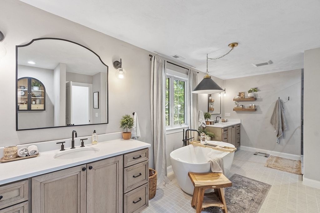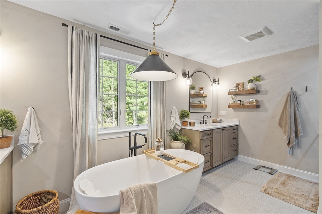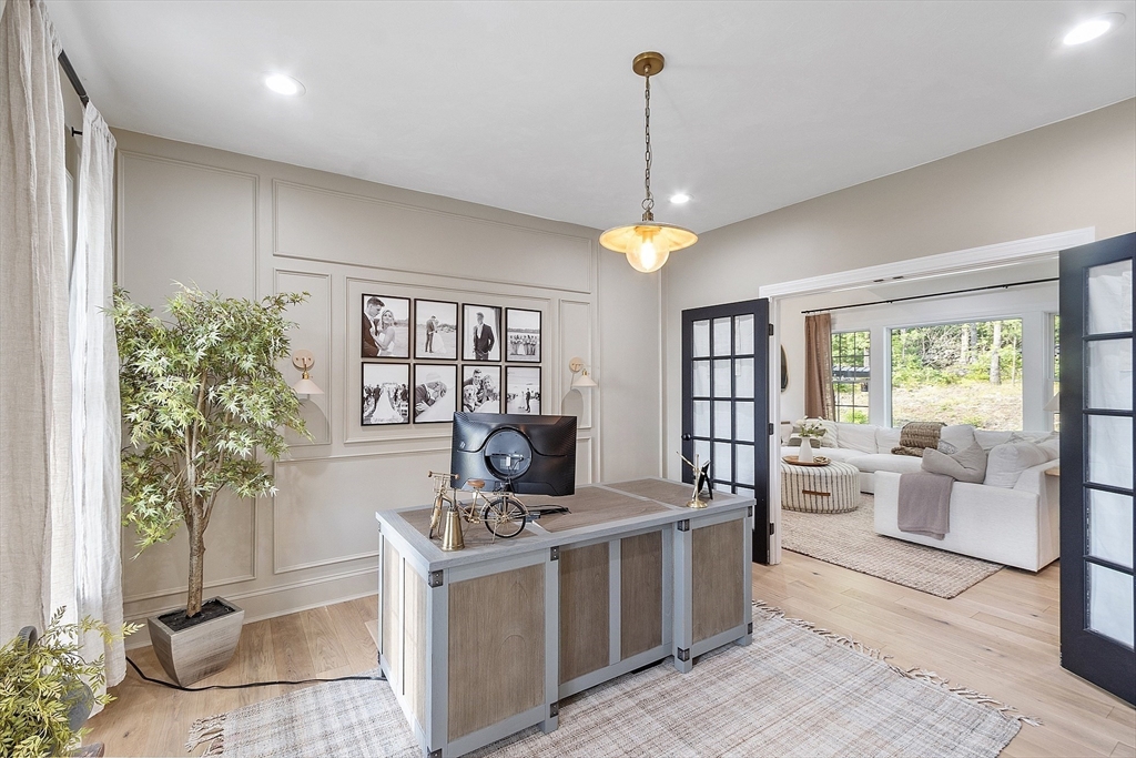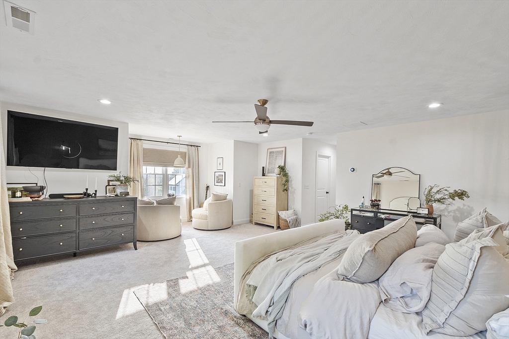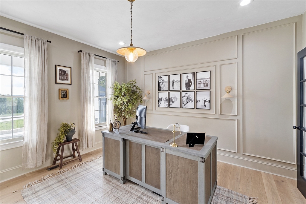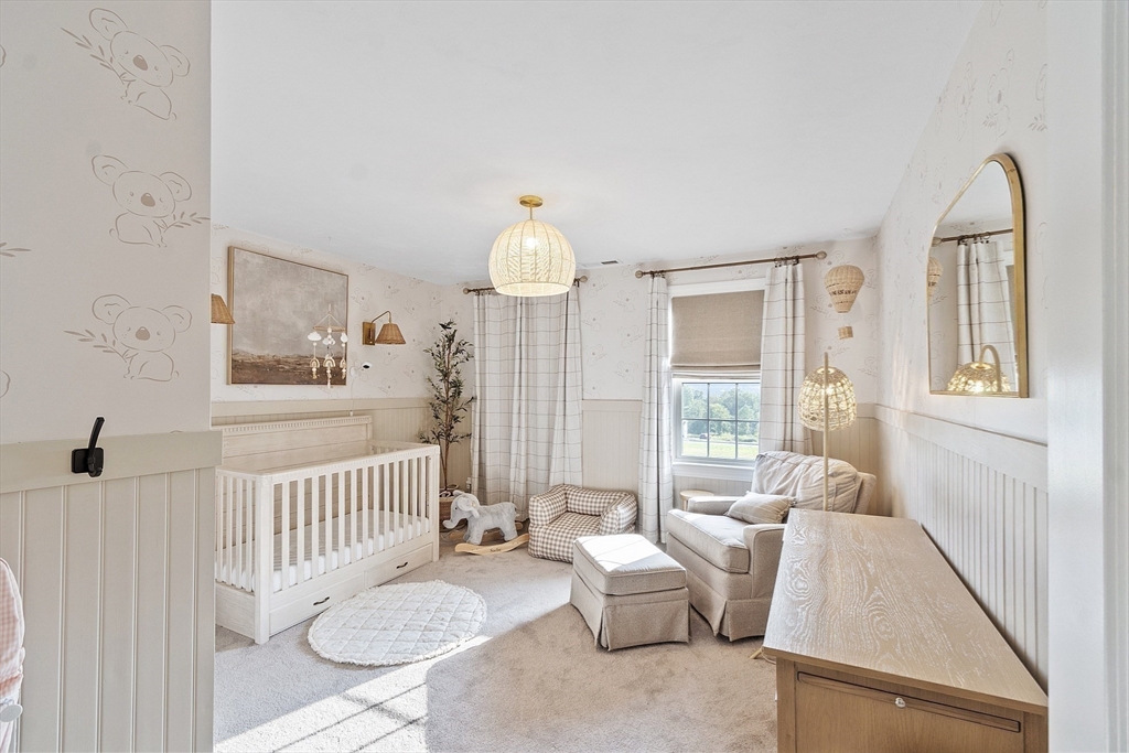 Your dream home awaits.......move-in ready in a highly desirable cul-de-sac with glorious views of sunsets over the Blackstone Valley! This like-new 4 br /2 1/2 bath nearly 4500 sq ft Colonial is loaded with extras including such amenities as state-of-the-art kitchen with range hood, tile backsplash and granite counters, spacious mudroom, shiplap, crown moulding, and 1st floor office. The finished basement adds tremendous living space including a bar lounge with wine wall and dry bar, along with a family / playroom, and an exercise room. The backyard boasts a large bluestone patio including a custom pergola, wood-burning fire pit, and expansive seating areas flanked by speakers - perfect for entertaining! Tremendous backyard privacy are yours with the abutting acres of Town-owned wooded recreational area complete with walking trails. Centrally located near the Town Center with easy highway and train access. This property has it all with its location, privacy, and great neighborhood!