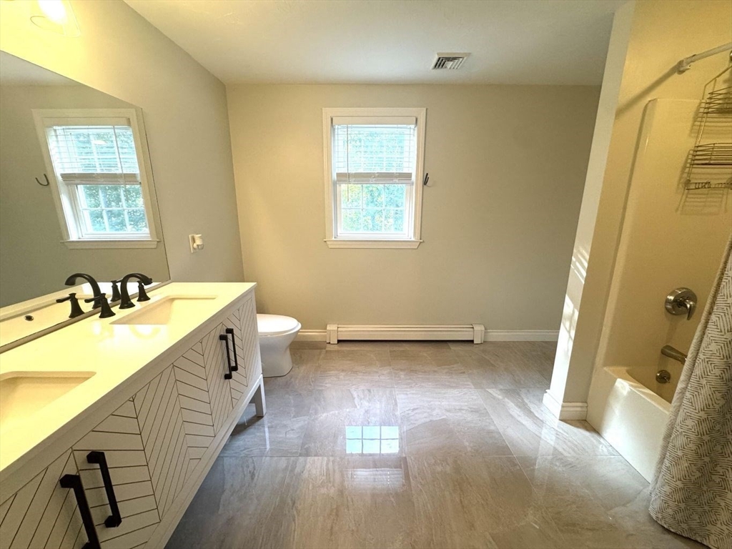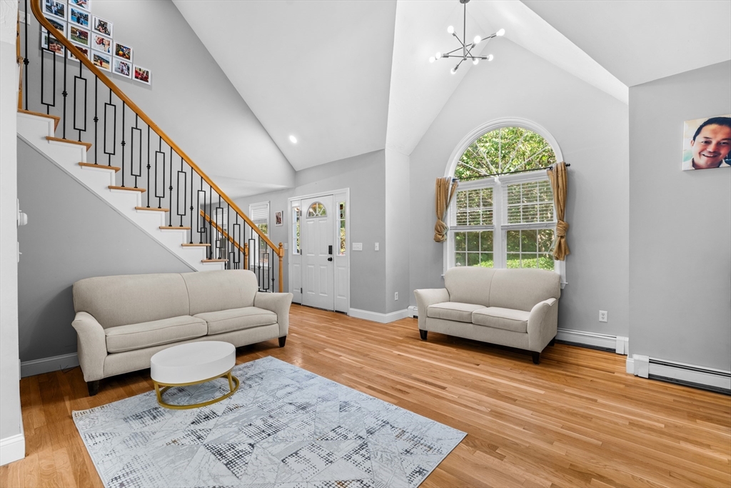 Hidden Gem!! Sunny palladium Cape style house with almost 1 acre of land! The first floor offers a nice bright kitchen with stainless steel, quartz counters, large island for entertaining or breakfast bar. Slider off the dining room leads out to the manicured back yard & decking. Great space for BBQ'S. Living room has vaulted ceiling & great open floor plan. Whole house has A/C! This level also has a spacious room which could be used as a den/office. Recreate the 1st level space & have room for sleeping arrangements on the 1st floor. Wood flooring throughout this level, 1st floor laundry, one full bathroom. Second floor offers a very large primary bedroom with bathroom access and two additional bedrooms as well. The basement is partially finished with two rooms to use for games, office, overflow etc. Level lot with professional landscaping & irrigation, outside shower, shed for storage, garden space etc. A must see!!