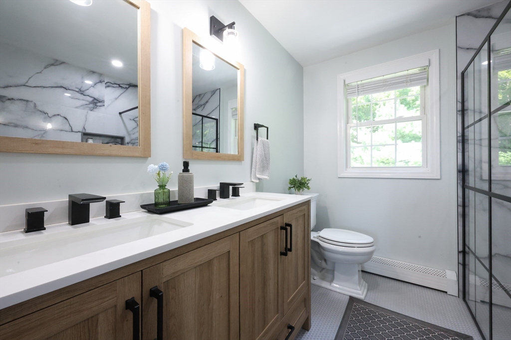 This beautifully renovated 4-bedrooms, 2.5-bath Colonial single-family home is move-in ready and designed to impress. The kitchen serves as a true centerpiece, featuring a large island perfect for meal prep and casual dining, quartz countertops that combine elegance with durability, and a stylish backsplash paired with a wall-mounted range hood. Hardwood floors flow throughout the home, complemented by fully renovated bathrooms.The primary suite offers a private retreat with a walk-in closet and an en-suite bathroom featuring a double vanity and walk-in shower. Additional upgrades include a modern staircase, recessed lighting, a new roof, and enhanced insulation in the attic and garage.Step outside to the deck overlooking serene woods, or gather around the fire pit in the spacious outdoor living area,perfect for making lasting memories. Situated on an expansive 34,412-square-foot lot, this home provides ample space for both relaxation and recreation.OH Saturday and Sunday from 1-3PM