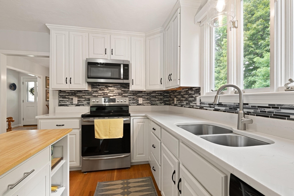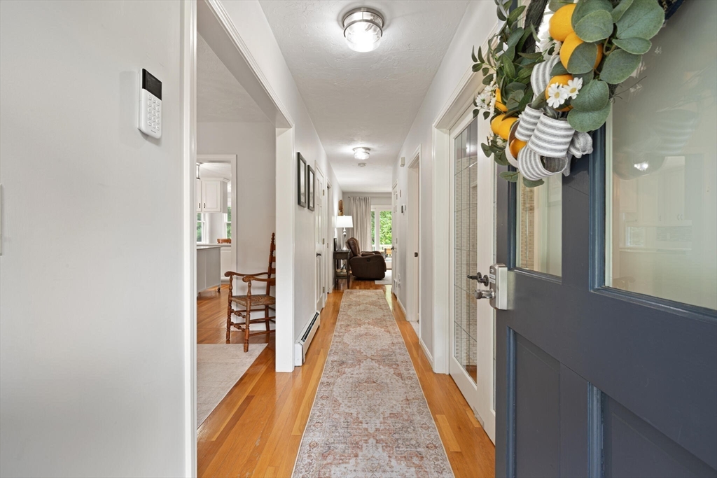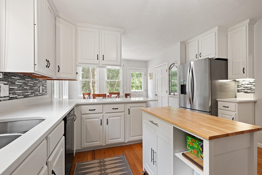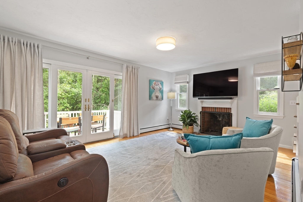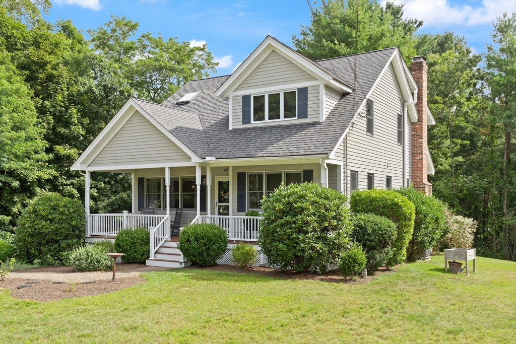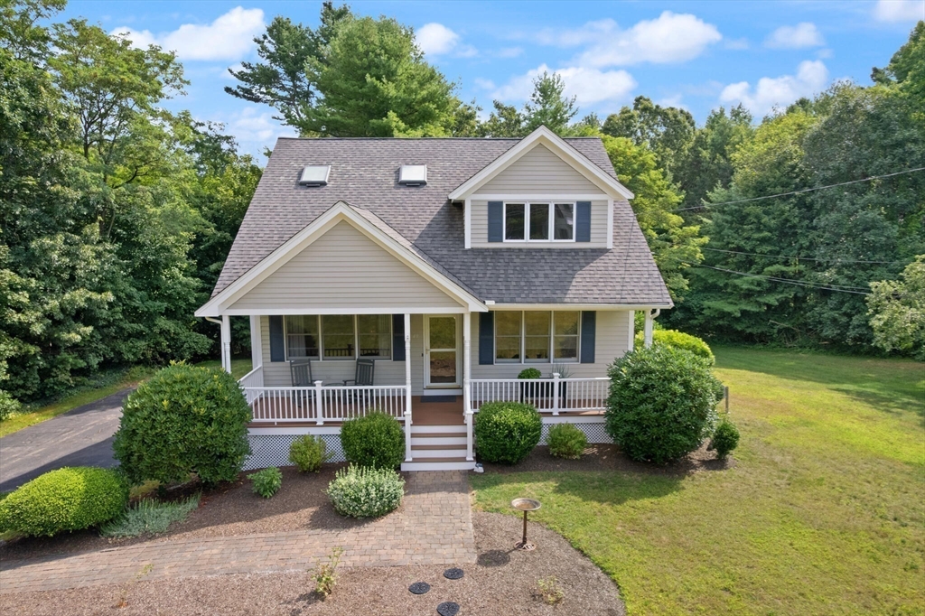 Tucked away on over 2 acres in peaceful West Wrentham, this Cape-style home offers a perfect blend of charm and modern updates. The inviting farmers porch provides an ideal location to enjoy morning coffee or welcome guests. Inside, you’ll find 3 bedrooms, 2 home offices and 3 full baths, with hardwood floors throughout the first level. The renovated kitchen flows to a sunny deck that overlooks the private backyard, complete with mature apple trees and a natural landscape that creates a serene retreat. A fireplaced family room with direct deck access adds to the inviting first floor. Upstairs you'll find 3 generously sized bedrooms. The spacious primary suite includes an en suite bath and a Juliette balcony where you can enjoy views of the grounds. Mere steps to the Rhode Island border, enjoy quick access to Diamond Hill, 295 and an easy commute to Providence. Showings begin at first Open House.