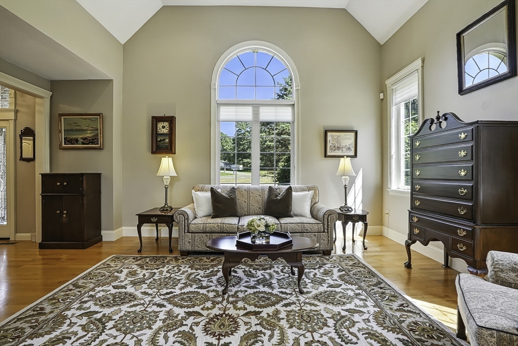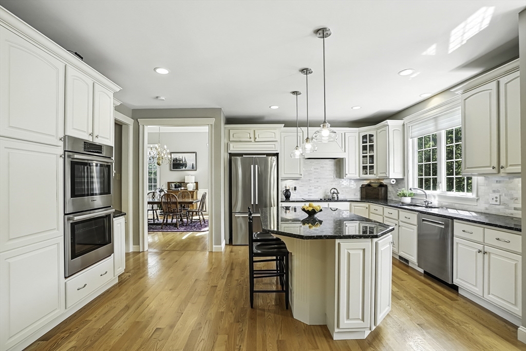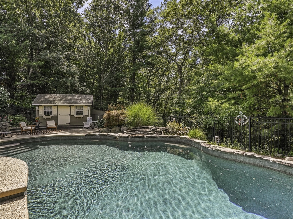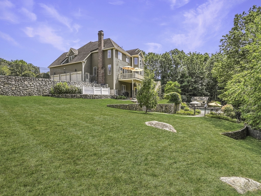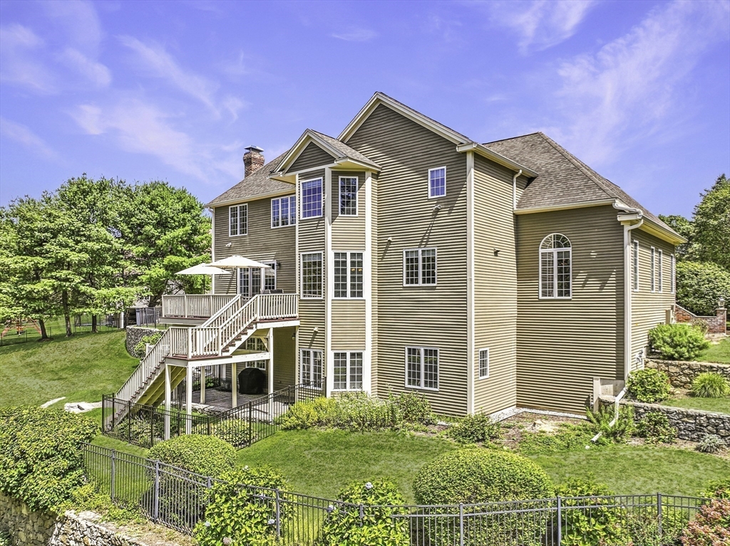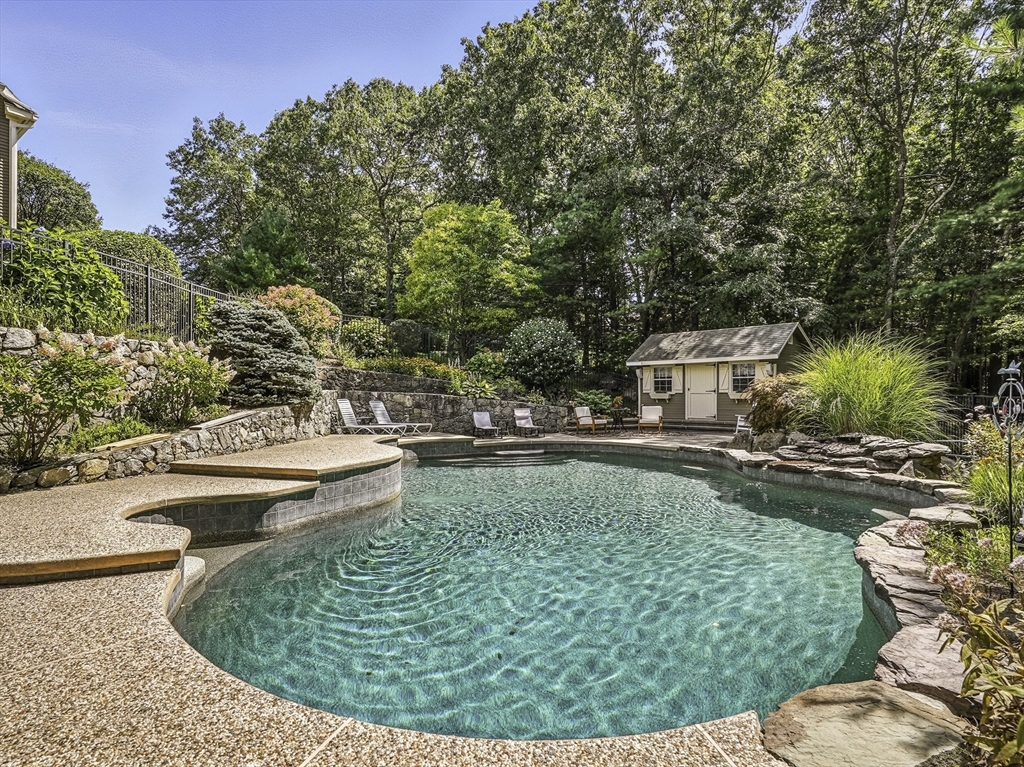 Exquisite, custom-built French Country masterpiece gracefully nestled on 2 private acres in coveted cul-de-sac. Prepare to be captivated by the home’s elegant sophistication, soaring ceilings, intricate millwork & timeless architectural details. Entertain effortlessly in formal living & dining rooms, designed w refined finishes. Sun-drenched chef’s kitchen outfitted w NEW Bosch appliances including refrig, double ovens & dishwasher flows into expansive family room w stately wood-burning fireplace & access to Trex deck—perfect for BBQs. Work from home in the private office, adorned w French doors. Upstairs, discover 4 en suite bedrooms w hardwood floors & walk-in closets. Walkout lower level w 12-ft ceilings, bar, rec/playroom & full bath. Private backyard oasis awaits w heated pool, cascading waterfall & surrounded by multiple seating areas to for unwind or host gatherings under the stars. New propane heating & CA. Enjoy easy access to Top-rated schools, commuter rail & I90 & parks.