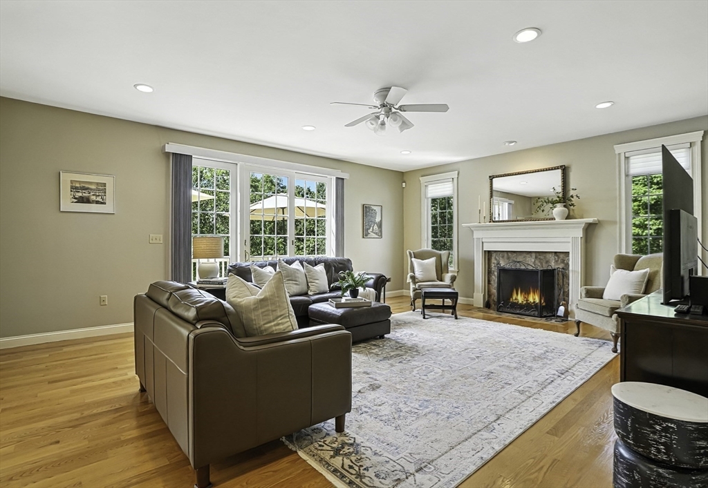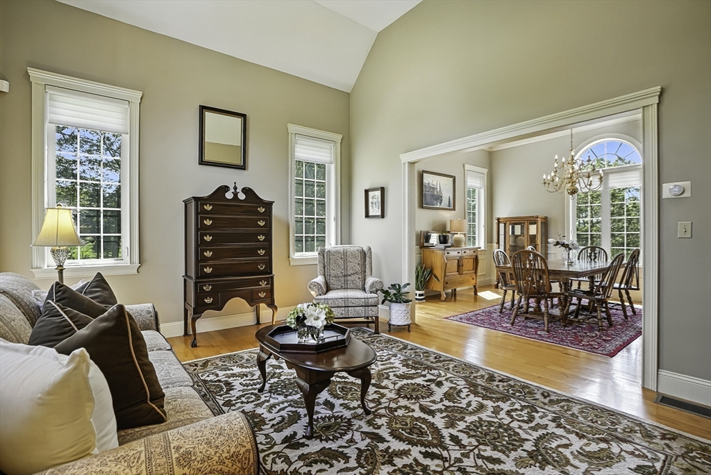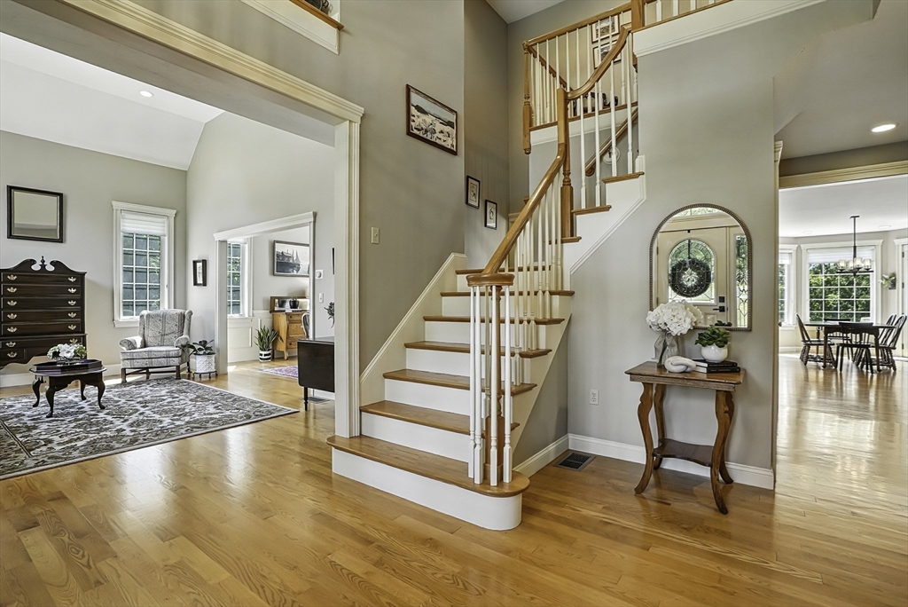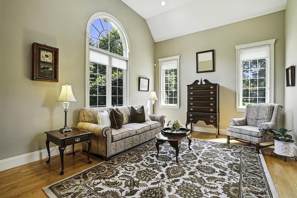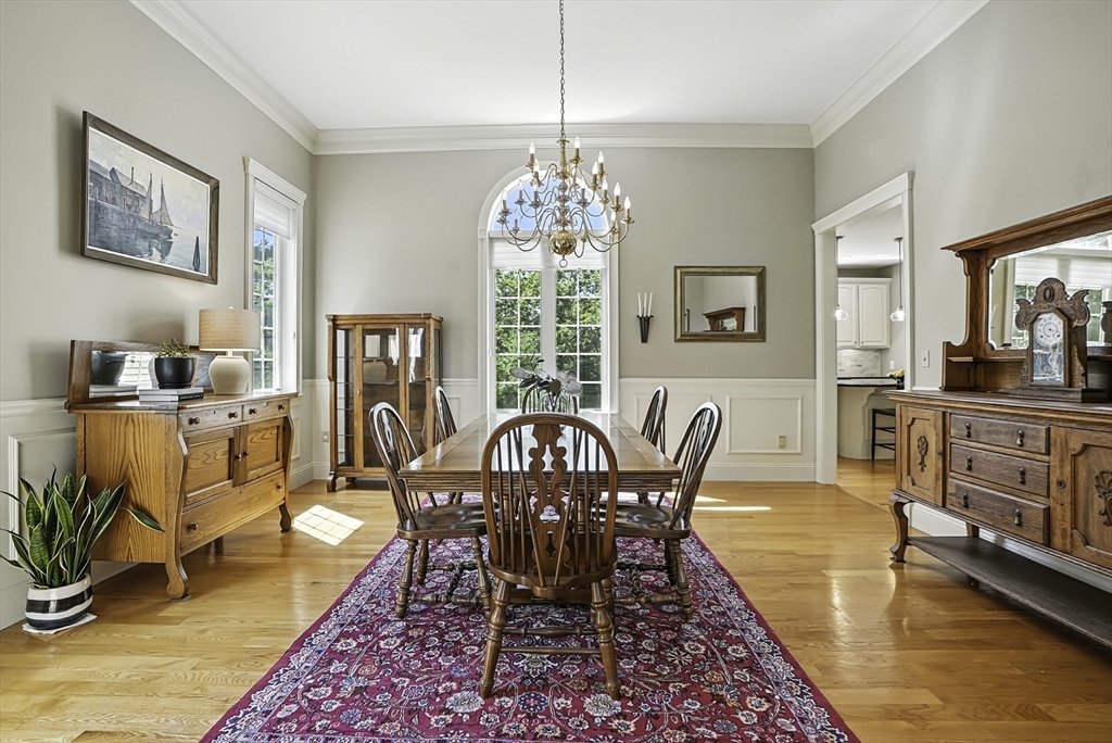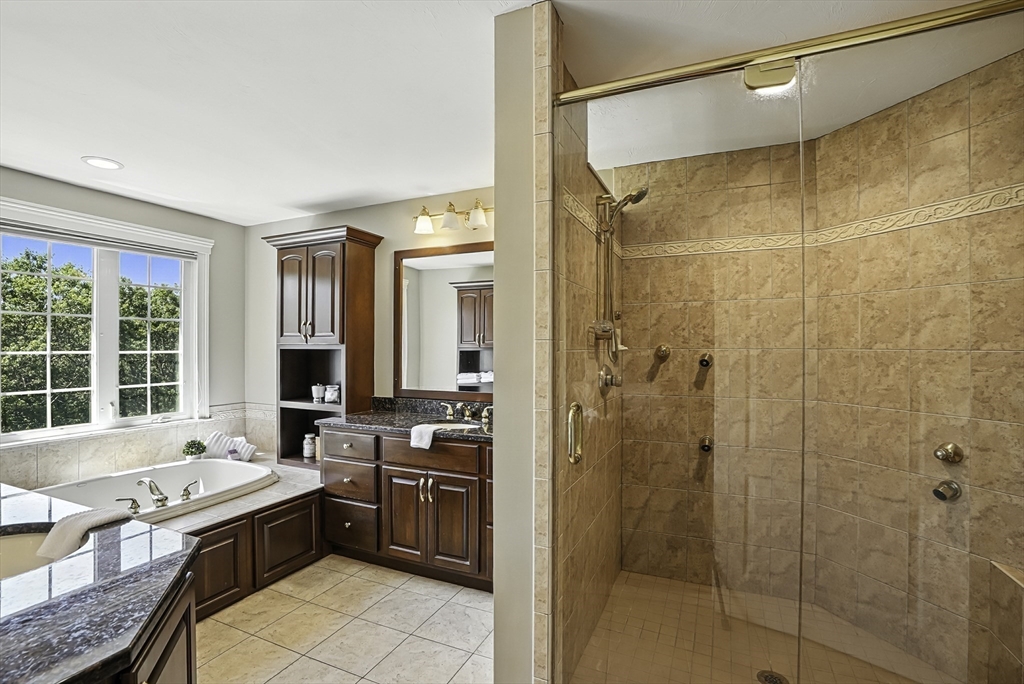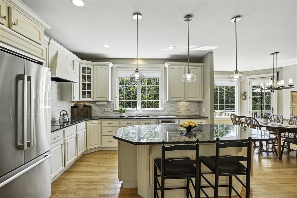 Exquisite, custom-built French Country masterpiece gracefully nestled on 2 private acres in coveted cul-de-sac. Prepare to be captivated by the home’s elegant sophistication, soaring ceilings, intricate millwork & timeless architectural details. Entertain effortlessly in formal living & dining rooms, designed w refined finishes. Sun-drenched chef’s kitchen outfitted w NEW Bosch appliances including refrig, double ovens & dishwasher flows into expansive family room w stately wood-burning fireplace & access to Trex deck—perfect for BBQs. Work from home in the private office, adorned w French doors. Upstairs, discover 4 en suite bedrooms w hardwood floors & walk-in closets. Walkout lower level w 12-ft ceilings, bar, rec/playroom & full bath. Private backyard oasis awaits w heated pool, cascading waterfall & surrounded by multiple seating areas to for unwind or host gatherings under the stars. New propane heating & CA. Enjoy easy access to Top-rated schools, commuter rail & I90 & parks.