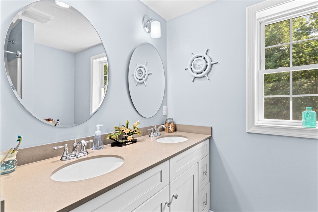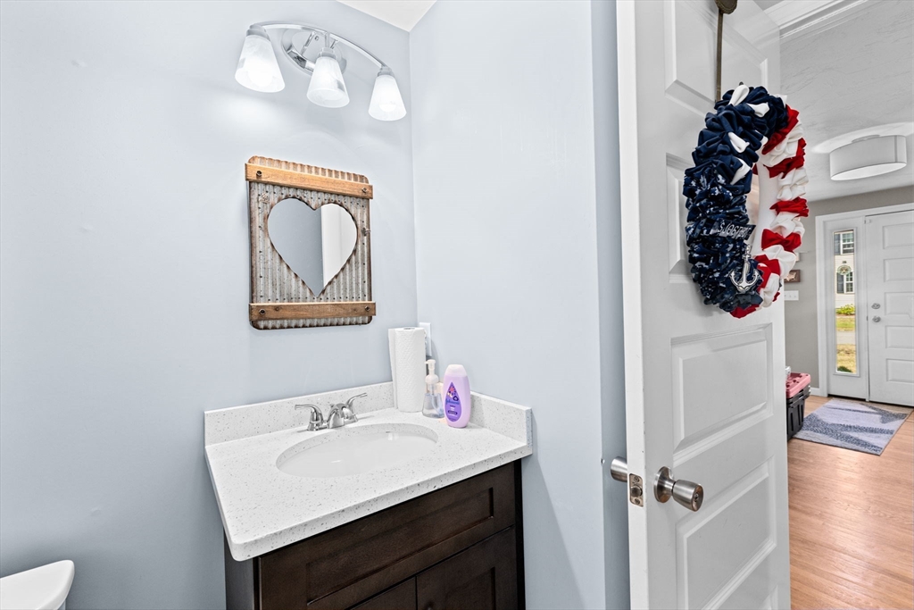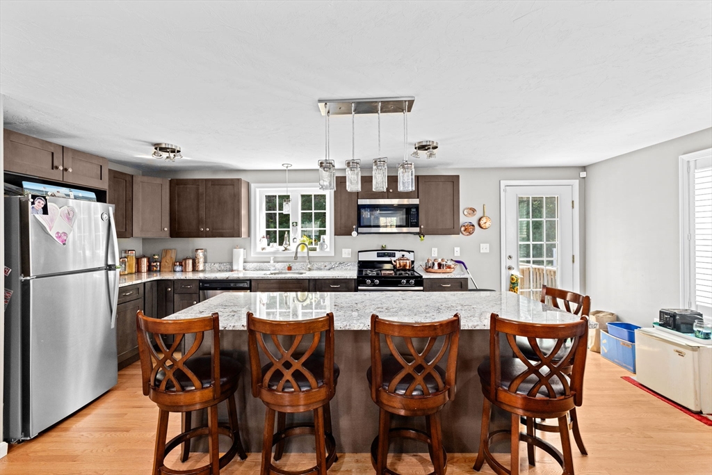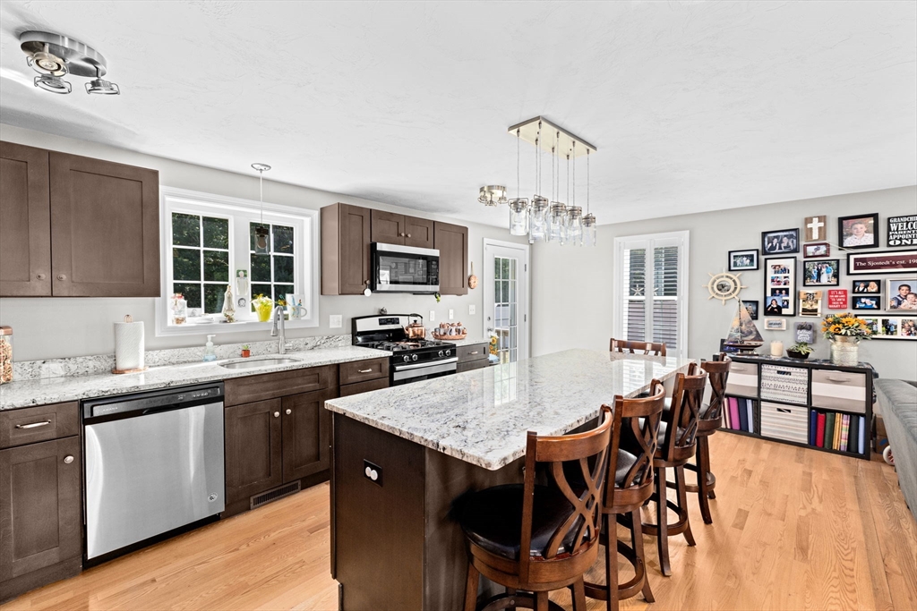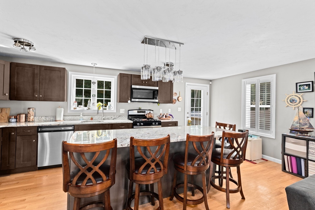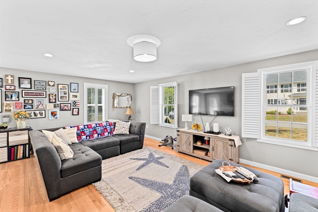 Better than new in West Plymouth’s Winter Hollow. This 2018 Colonial shines with an open-floorplan, hardwood floors, and a chef’s kitchen featuring gas cooking, a beautiful large island, granite counters, stainless appliances, and warm brown cabinetry with soft-close drawers. A Lite French door extends the living space to the back deck, while a first-floor laundry and upgraded lighting add convenience. Upstairs, find three spacious bedrooms, including a primary en suite with walk-in closet and spa-like bath with quartz double vanity and tiled floors. The finished basement adds 660 sq ft of flexible space, ideal for a media room, office, or gym. Custom plantation shutters, landscaped grounds, and a quiet dead-end street enhance the charm. All just minutes to Rt 3, Rt 44, shopping, beaches, and Plymouth’s historic waterfront.