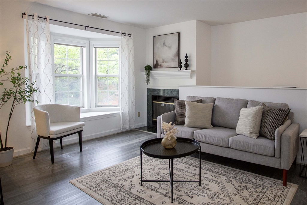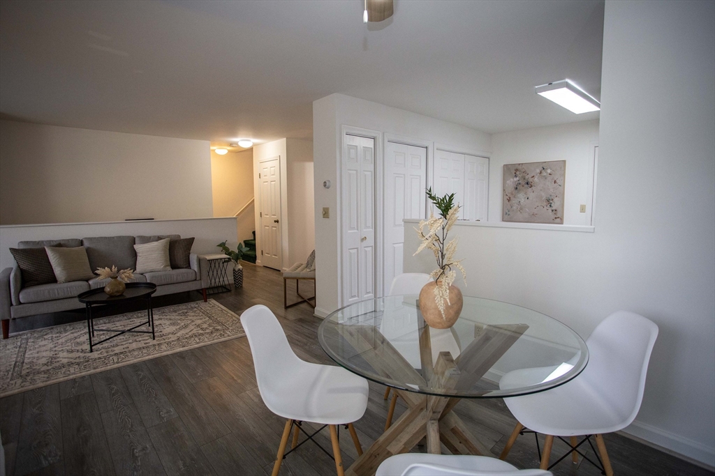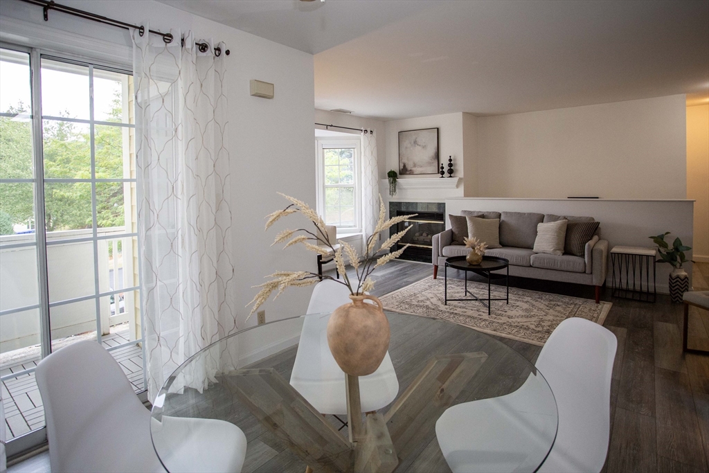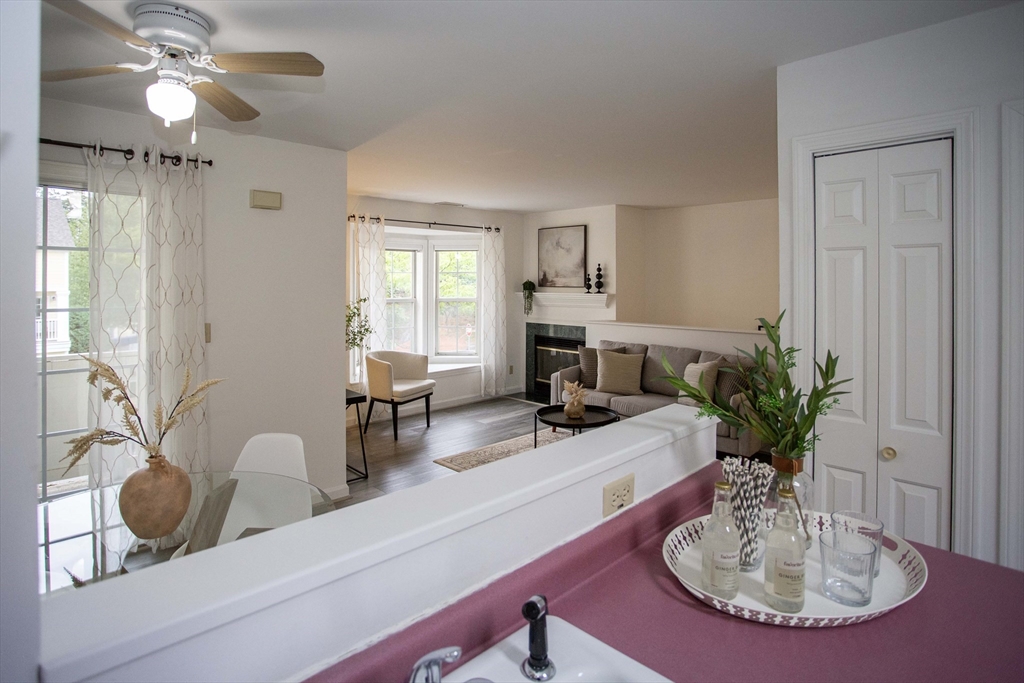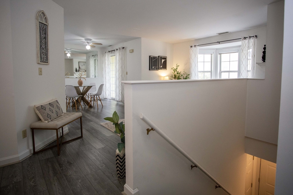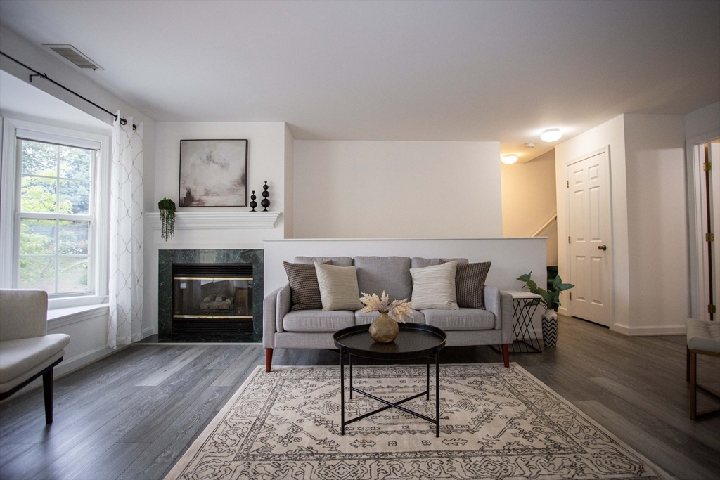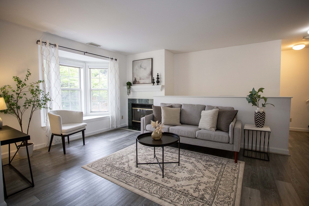 Sought after Summit Village! Built in 1996 & meticulously maintained , this 2nd and 3rd floor Townhouse style condominium unit features a fireplaced living room with a window seat, a dining room/den area adjacent to living room with a fan and sliders leading to deck, large eat in kitchen with washer dryer closet. The 3rd level features 2 bedrooms and the master bedroom has a large closet and sliders leading out to a 2nd deck. There are electric and gas utilities, central AC(which needs to be repaired), in unit washer, dryer, and refrigerator are included. This complex is pet friendly up to 30 lbs. & is located a short distance to all major highways. Park 2 cars in driveway, 1 in garage! Freshly painted and ready to move in !