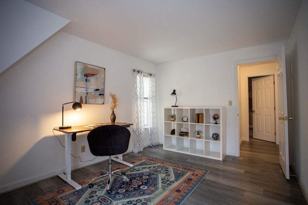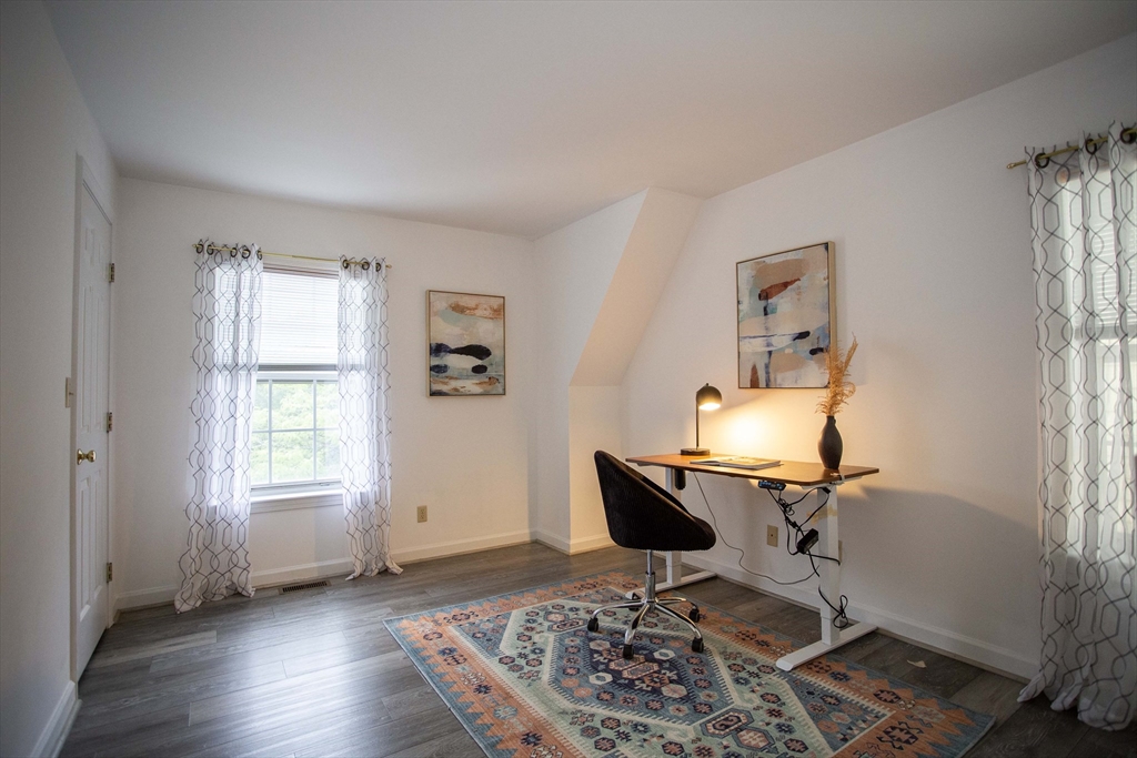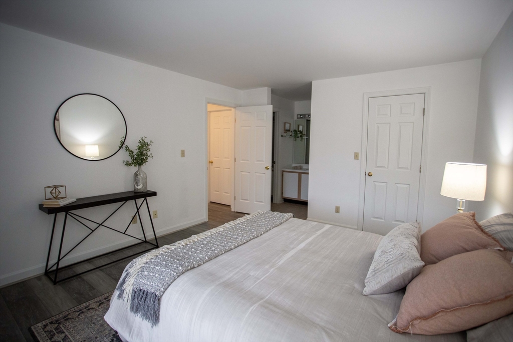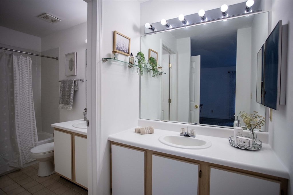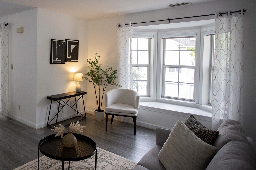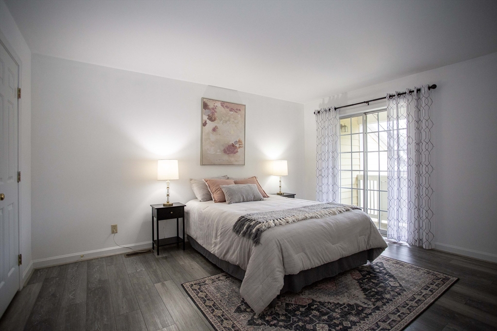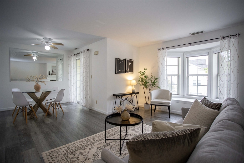 Sought after Summit Village! Built in 1996 & meticulously maintained , this 2nd and 3rd floor Townhouse style condominium unit features a fireplaced living room with a window seat, a dining room/den area adjacent to living room with a fan and sliders leading to deck, large eat in kitchen with washer dryer closet. The 3rd level features 2 bedrooms and the master bedroom has a large closet and sliders leading out to a 2nd deck. There are electric and gas utilities, central AC(which needs to be repaired), in unit washer, dryer, and refrigerator are included. This complex is pet friendly up to 30 lbs. & is located a short distance to all major highways. Park 2 cars in driveway, 1 in garage! Freshly painted and ready to move in !