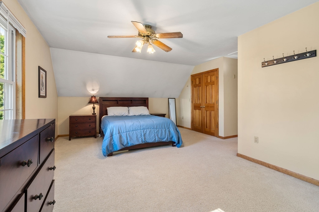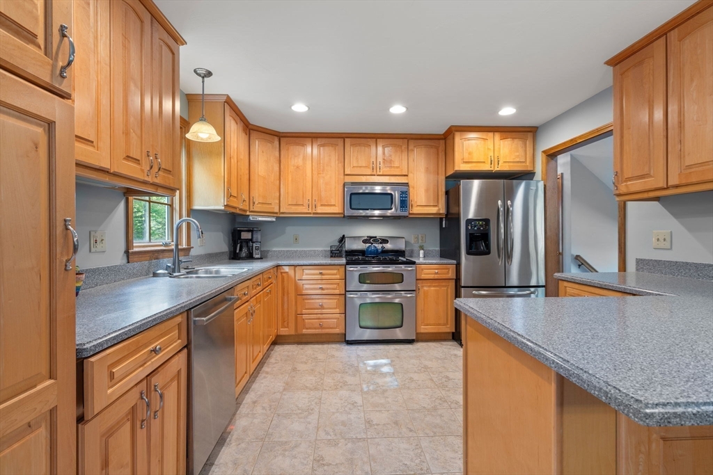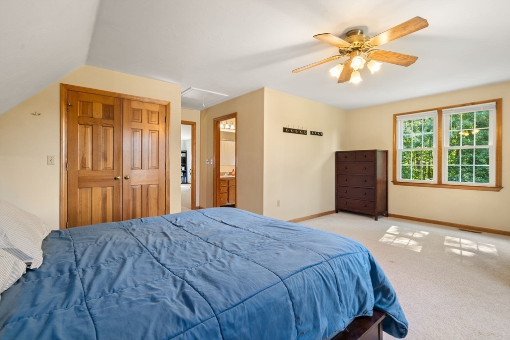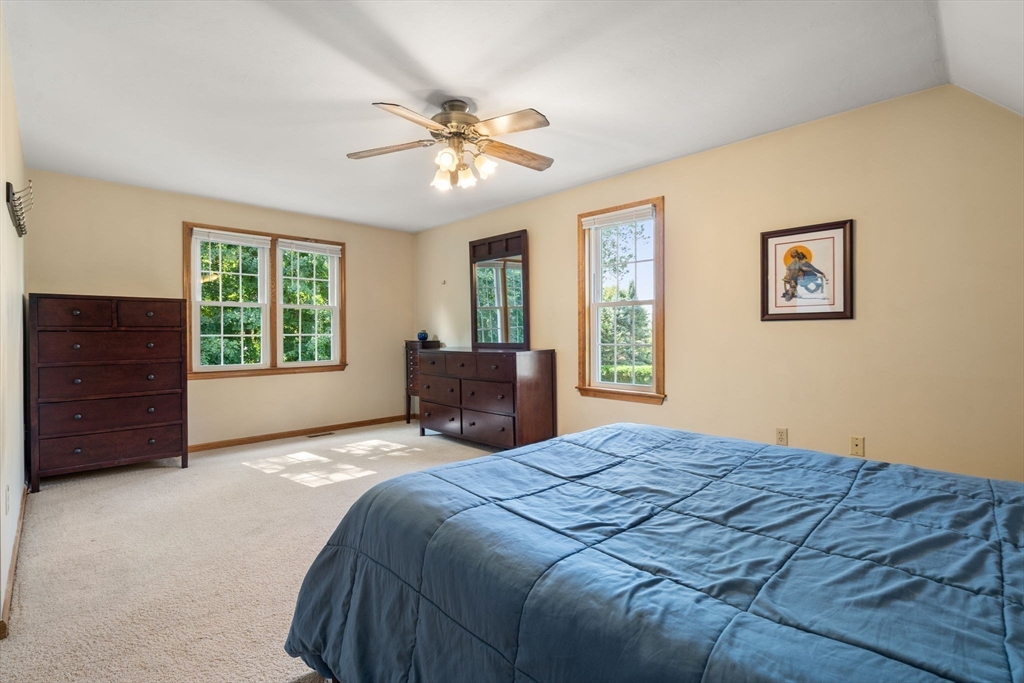 Welcome to this well maintained THREE-bedroom raised Cape style home on a .35-acre level lot. This home offers 2,200 sf of living space that includes a large living rm w/ hardwood floor, cathedral ceiling & fireplace, adjacent dining area, kitchen w/ granite counter tops & an island w/ access to a large rear deck. This level also offers 2 large bedrooms & full bathroom w/ laundry closet. The upper level offers a large primary bedroom suite w/ walk-in closet & full bathroom, as well a large loft area that can be used as family room or home office. The lower level provides a finished space for additional living space, plus additional storage w/ access to a 2-car garage. Large spacious partially fenced in back yard for entertaining w/ a shed & large driveway for plenty of parking. Recent updates include furnace (2022), A/C & garage doors/opener (2018), hot water heater (2016), roof (2015), windows (2014). Welcome home! Open House on Sunday 8/24 from 12 to 2 pm.