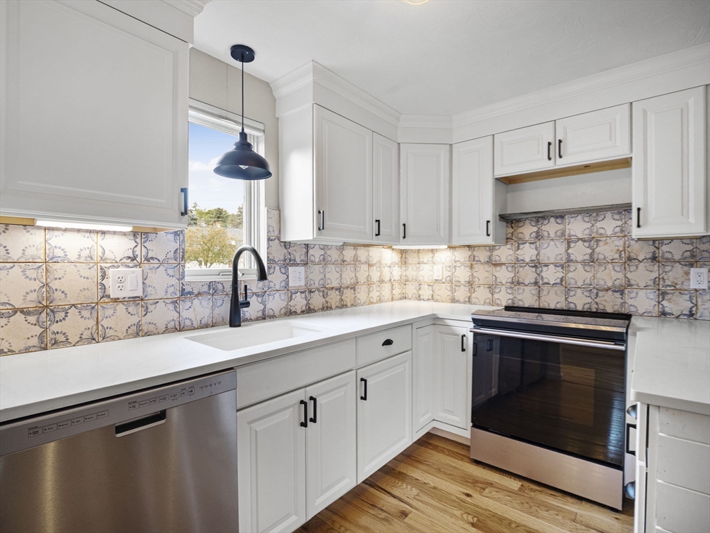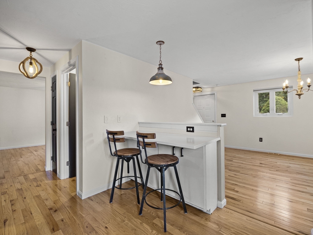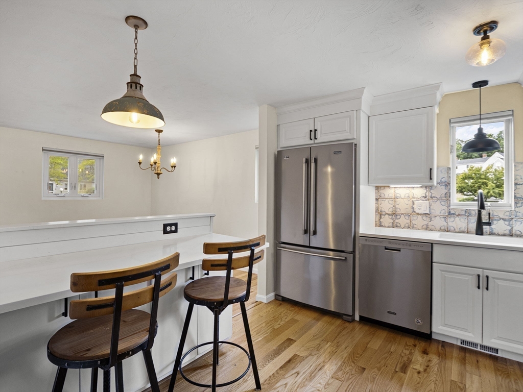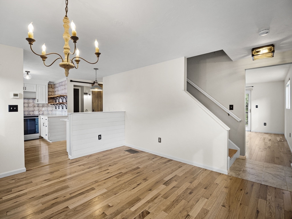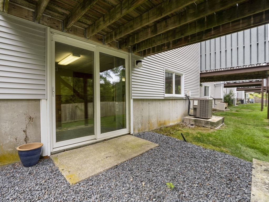 Move right in to this spacious, sun-filled end-unit townhouse just 1.5 miles from Plymouth's vibrant downtown, waterfront, shops & restaurants. .Privately situated with parking at the door, this home features a tastefully upgraded kitchen with quartz countertops, tile backsplash, stainless steel appliances, & a breakfast bar. The front-to- back living room offers shiplap accents, a cozy wood-burning fireplace & sliders to a private deck.. Hardwood floors and chic custom lighting abound &.a charming barn door adds style to the half bath. Upstairs, find two skylit bedrooms w/pickled flooring, HUGE walk-in closets & a full bath w/tiled flooring & glass tub enclosure. The walkout lower level includes a large finished room w/ sliders to the yard & a separate area w/laundry perfect for storage or a workshop.. Mechanical updates include a newer furnace, central air & water heater. Enjoy the benefits of a well-managed association, lushly landscaped grounds and a move-in ready home!