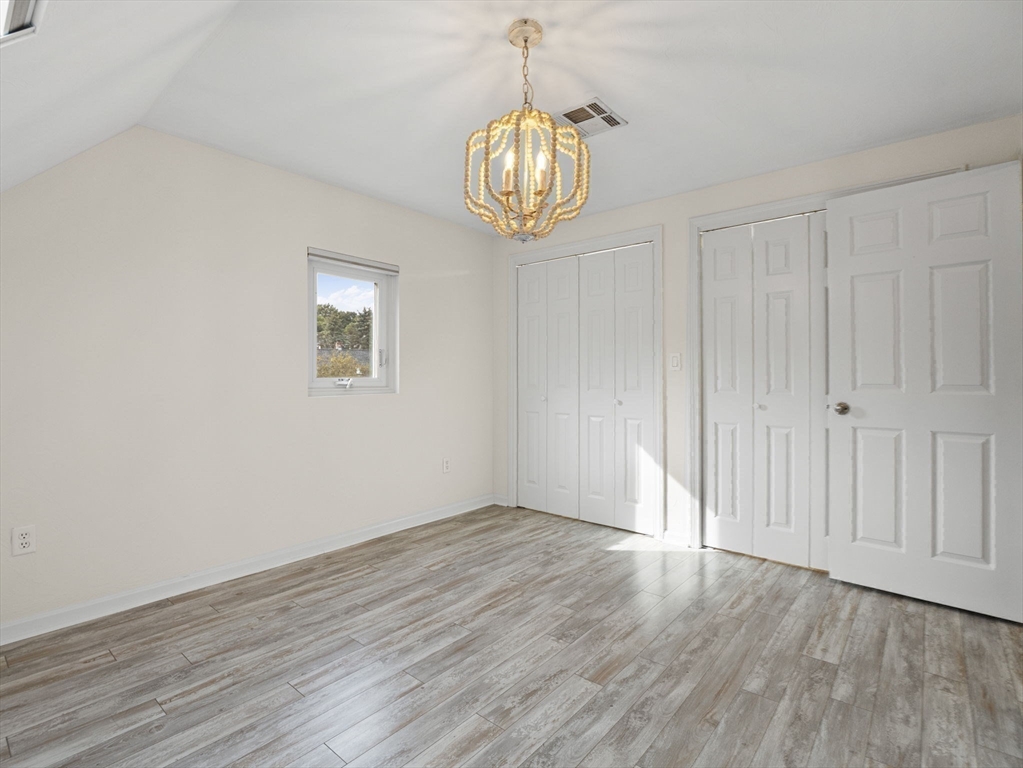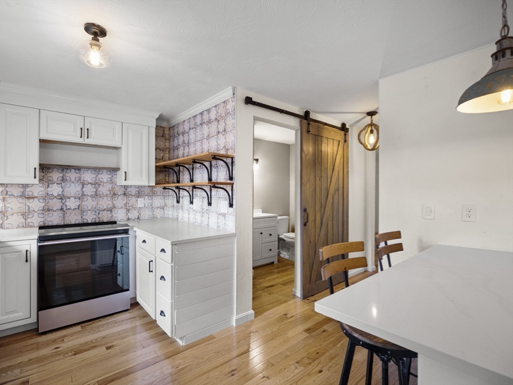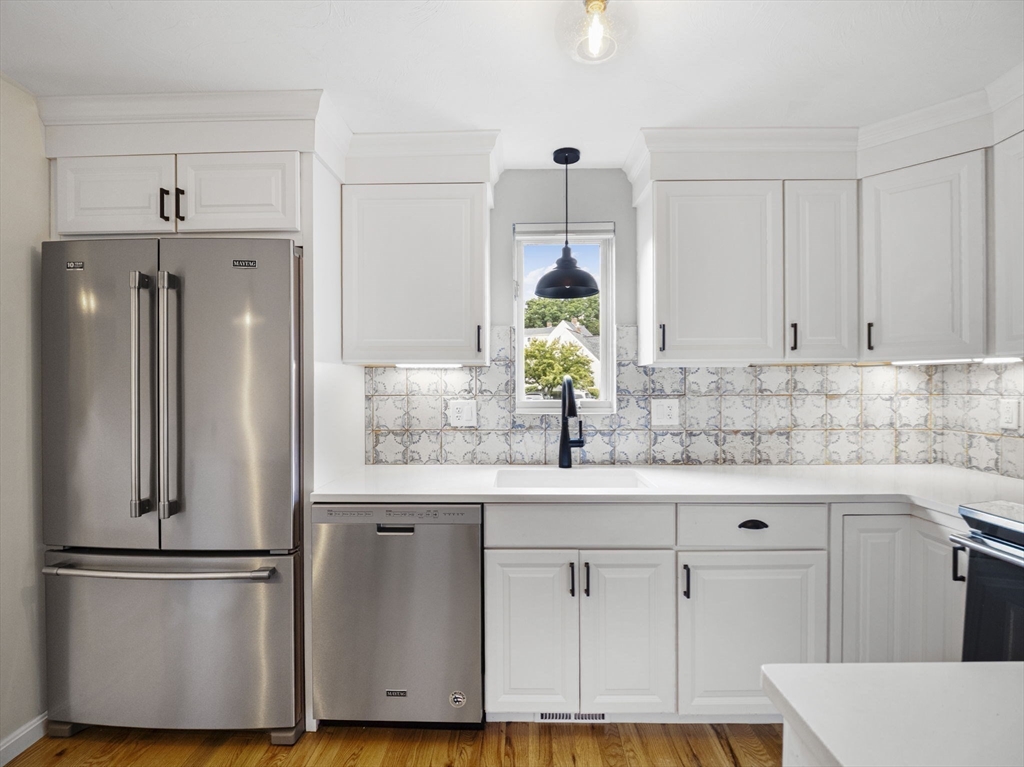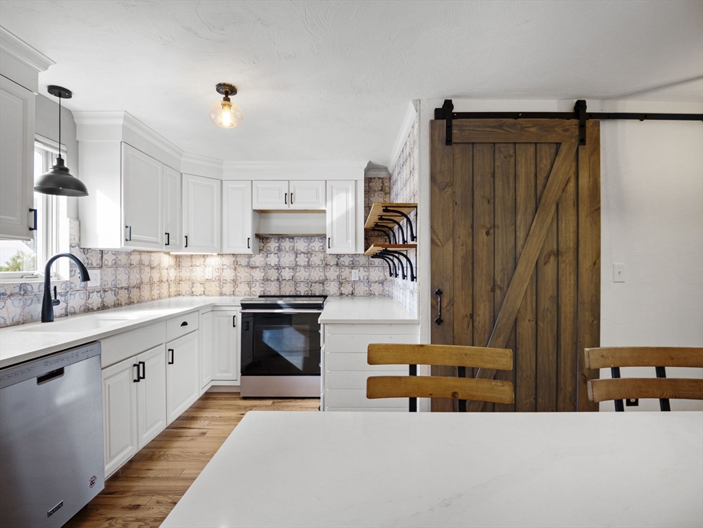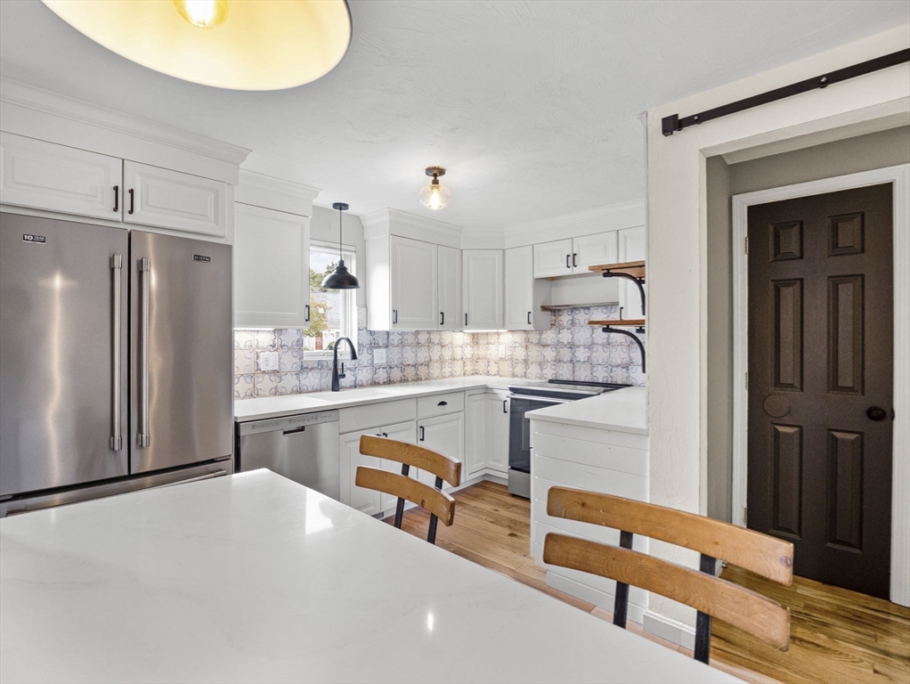 Move right in to this spacious, sun-filled end-unit townhouse just 1.5 miles from Plymouth's vibrant downtown, waterfront, shops & restaurants. .Privately situated with parking at the door, this home features a tastefully upgraded kitchen with quartz countertops, tile backsplash, stainless steel appliances, & a breakfast bar. The front-to- back living room offers shiplap accents, a cozy wood-burning fireplace & sliders to a private deck.. Hardwood floors and chic custom lighting abound &.a charming barn door adds style to the half bath. Upstairs, find two skylit bedrooms w/pickled flooring, HUGE walk-in closets & a full bath w/tiled flooring & glass tub enclosure. The walkout lower level includes a large finished room w/ sliders to the yard & a separate area w/laundry perfect for storage or a workshop.. Mechanical updates include a newer furnace, central air & water heater. Enjoy the benefits of a well-managed association, lushly landscaped grounds and a move-in ready home!