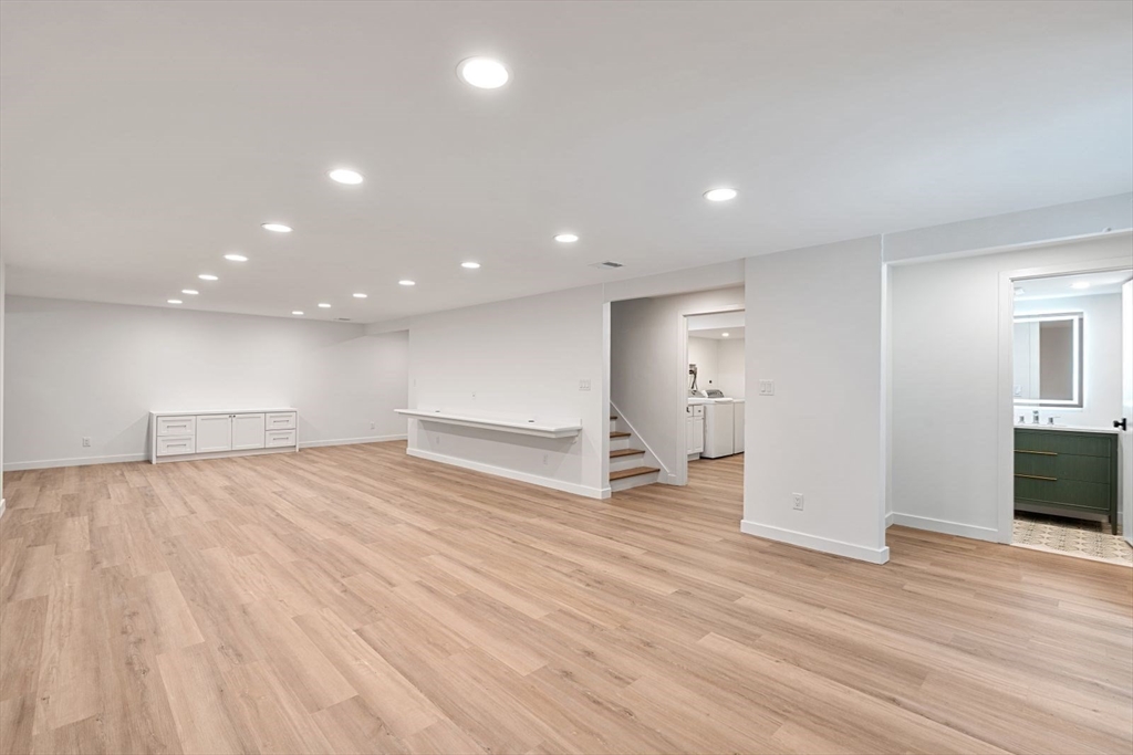 Welcome to this beautifully renovated 4 bedroom, 4 bathroom home, offering over 5,000 square feet of thoughtfully designed living space nestled on more than 3.5 acres in a wonderful family neighborhood. A flexible open floor plan is bathed in natural light, creating warm, inviting spaces perfect for both relaxed daily living & entertaining. The gourmet kitchen features custom cabinetry, high end appliances, & sleek modern finishes. Spacious living and dining areas flow seamlessly onto an expansive deck, overlooking landscaped grounds, ideal for outdoor gatherings. The primary suite is a private retreat, boasting a spa like bathroom and enormous walk-in closet. The fully finished walk out lower level offers versatile family living space, complete with a full bath, bonus rooms, & direct access to a bluestone patio, perfect for guests, a home gym, or private office. Ideally located for commuters. This remarkable home has it all - style, space, unbeatable location, & top ranked schools.