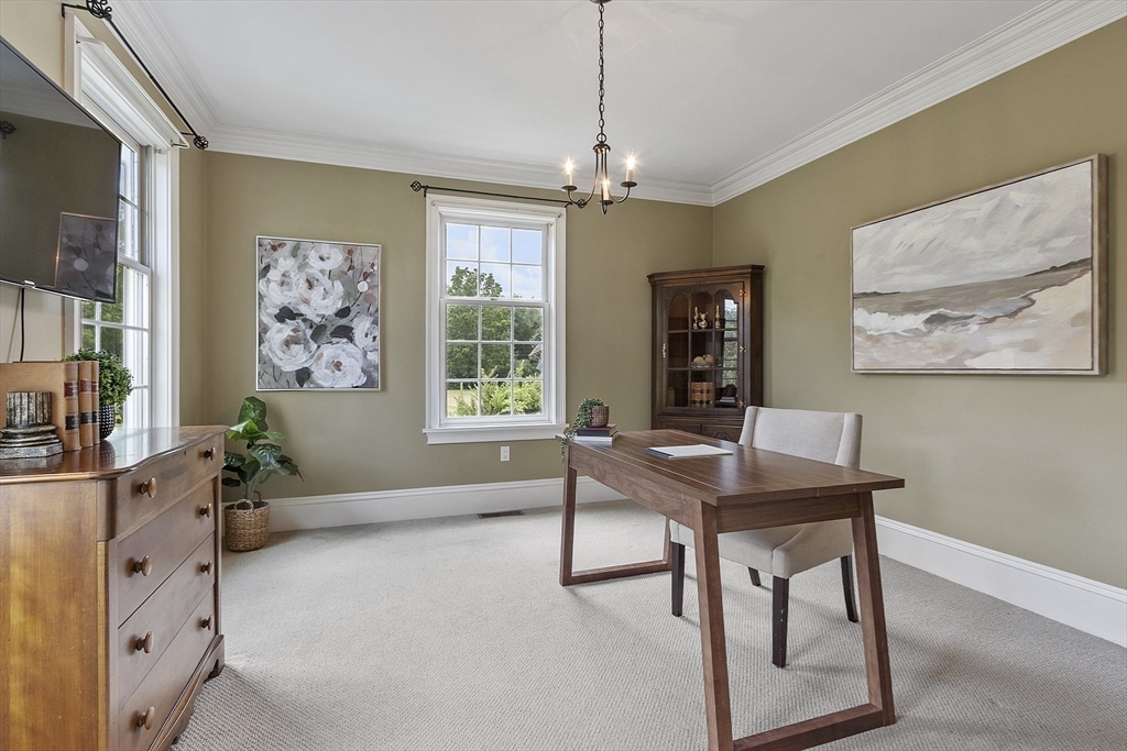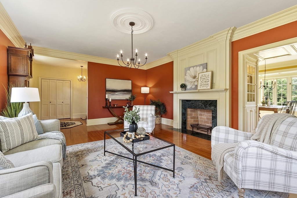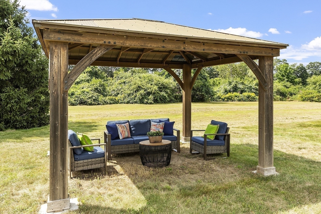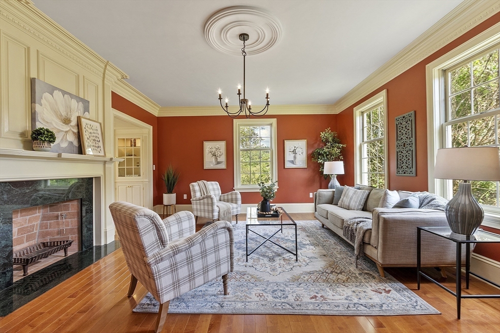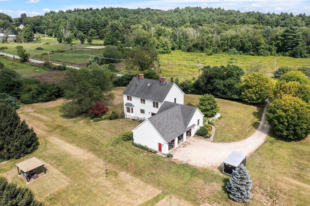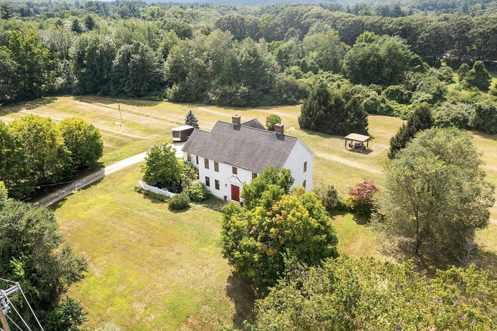 Welcome to 50 Hill Road! Set on 3 picturesque acres, this 2002 antique reproduction offers timeless design with thoughtful updates. Hardwood flooring, built-in cabinetry and custom millwork run throughout, complementing the formal dining and family rooms, living room with fireplace and chef’s kitchen featuring custom cabinetry, tiled countertops and a cozy fireplaced dining nook. A first-floor bedroom and full bath add flexibility for guests or multi-generational living. Upstairs, the primary suite includes a spacious dressing room and full bath plus 2 additional bedrooms, full bath and oversized laundry room. The unfinished walkout basement offers expansion potential, while the 3-car garage and level yard enhance everyday living. Enjoy exploring the conservation trails across the street or spend time in the shade of the backyard pergola. Located in the top-ranked Acton-Boxborough school district with easy highway access, this home blends a country setting with commuter convenience!