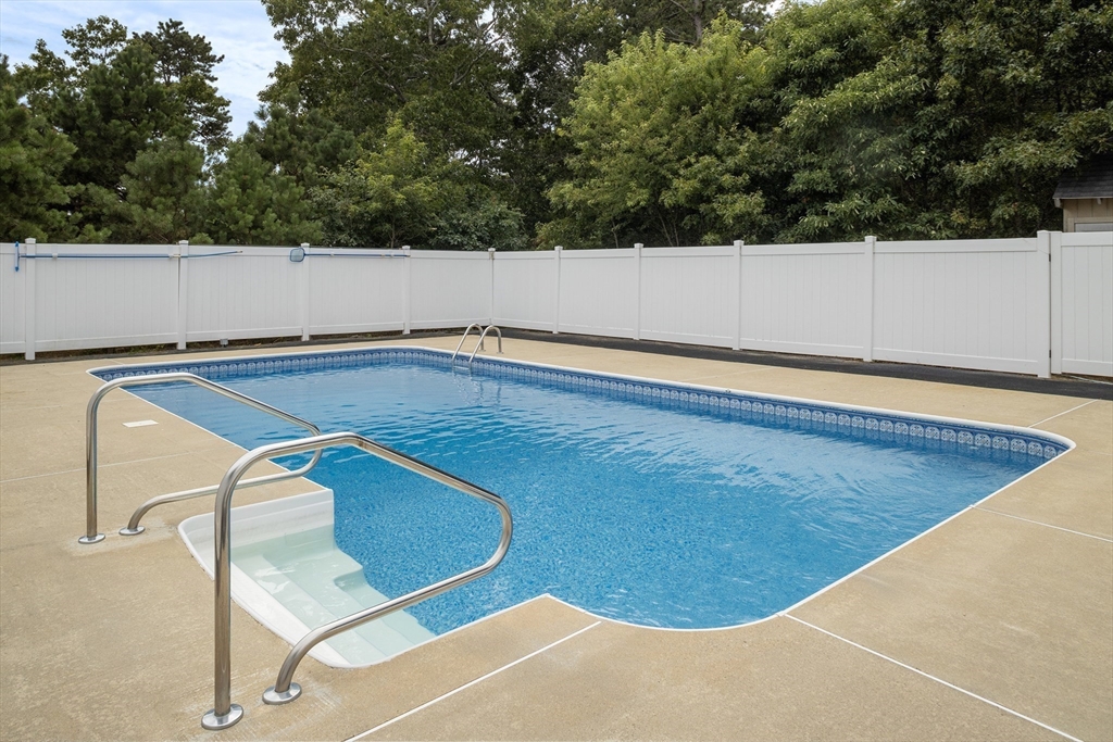 Nestled within the popular “Ponds of Plymouth” neighborhood, this quintessential colonial offers the perfect blend of classic charm and modern amenities. Step inside to discover an open floor plan designed for effortless entertaining throughout the seasons. The spacious kitchen features ample room for culinary creativity and seamlessly connects to an exterior deck covered by a roofed lanai~ideal for alfresco gatherings rain or shine. High ceilings and gleaming hardwood floors create an inviting atmosphere, while a dedicated home office provides the perfect space for remote work or study. Downstairs, the finished basement awaits your personal touch; simply add your choice of flooring to complete this versatile area. Outdoor living is elevated by the private inground pool, fitted with a newer liner, promising endless fun and relaxation. With space and thoughtful features throughout, this exceptional home invites you to make it your own in one of Plymouth’s most desirable communities.