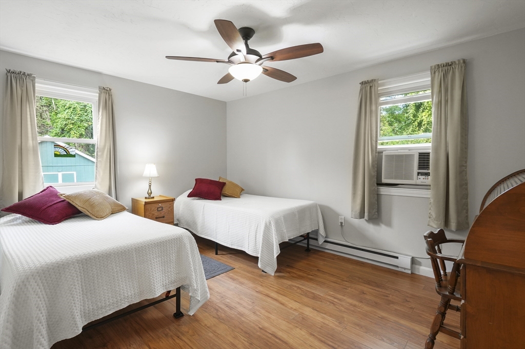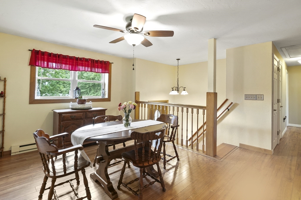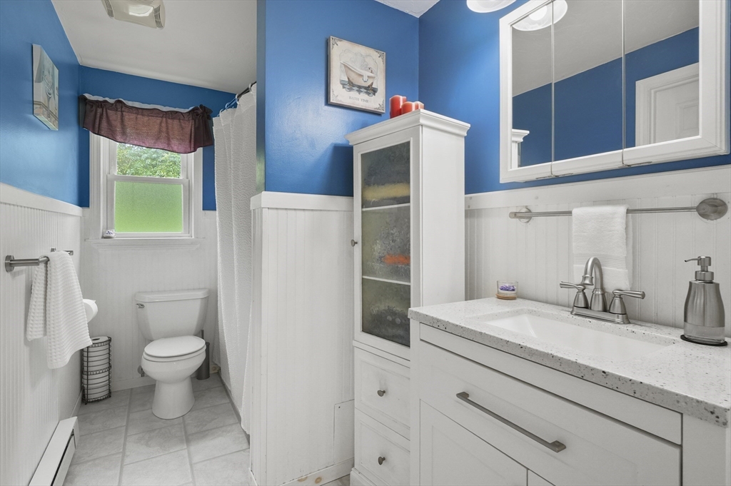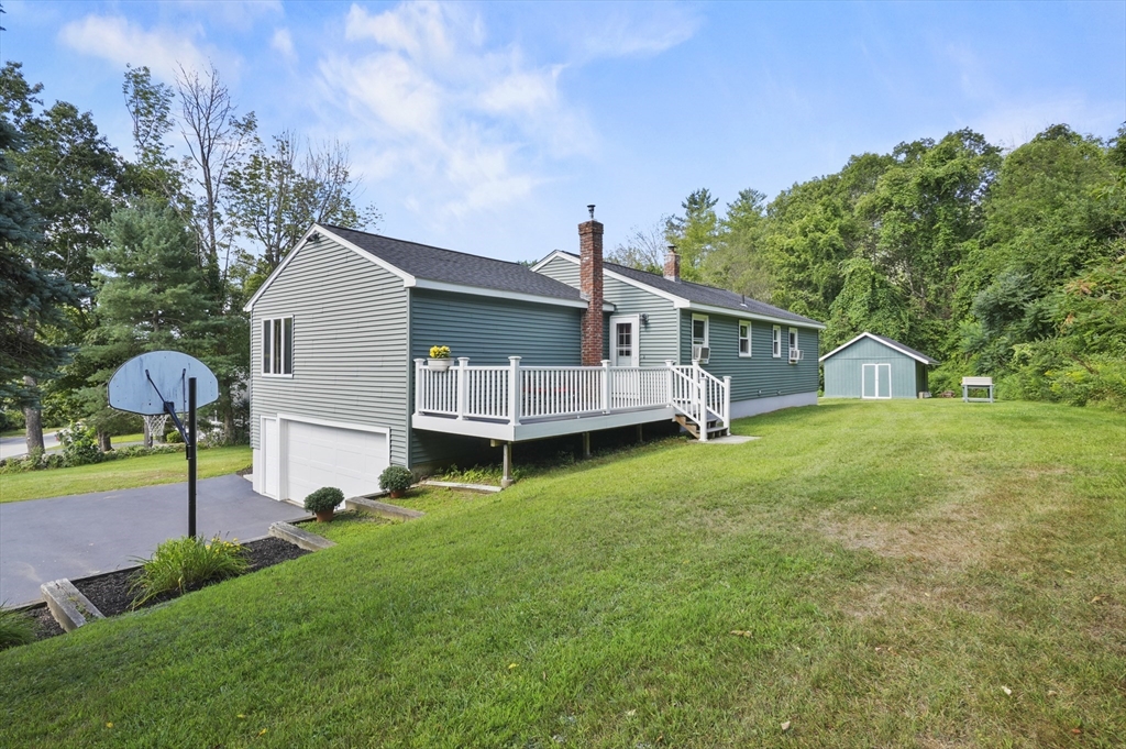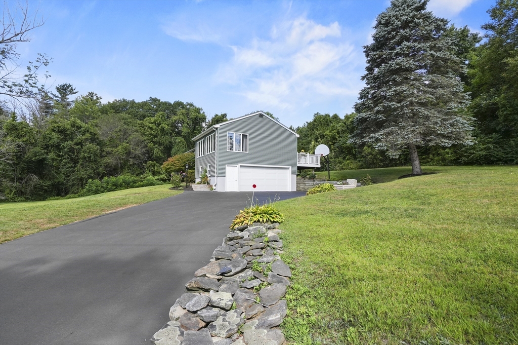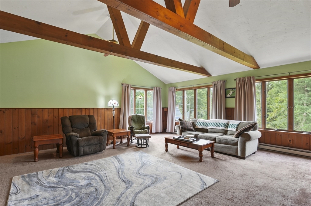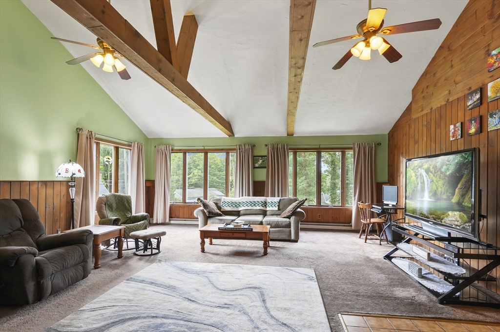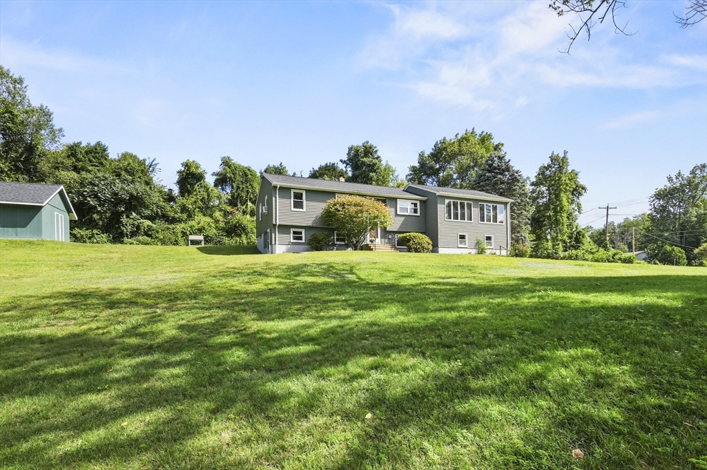 Welcome to this inviting split-entry home in Leicester, offering a thoughtful layout and plenty of charm. The warm, cabinet-packed kitchen features stainless steel appliances, granite counters, and a stylish tile backsplash, opening to the dining room with a convenient passthrough window. The spacious living room impresses with its beamed cathedral ceiling, wood panel accent wall, and cozy pellet stove. Two bedrooms, including the primary, and a full bath complete the main level. Downstairs, the partially finished lower level adds a third bedroom, another full bath, and a second pellet stove for year-round comfort. Enjoy the convenience of an attached garage, ample off-street parking, and great outdoor living with a large yard, composite deck, and storage shed.