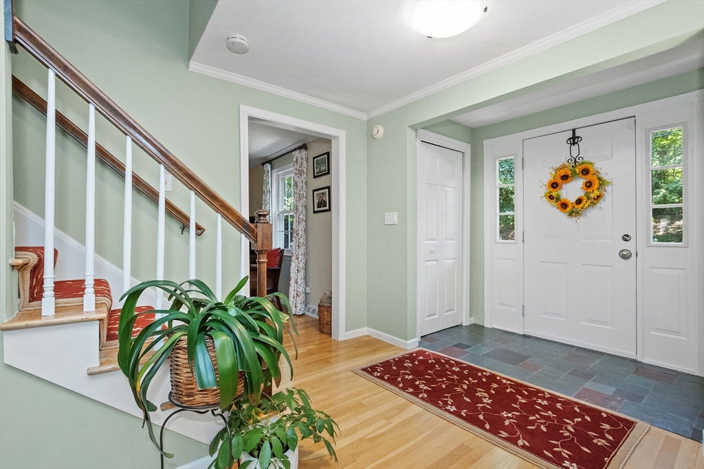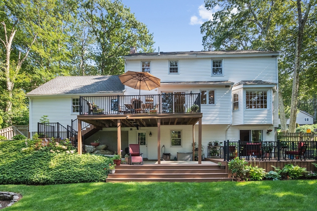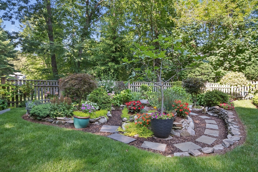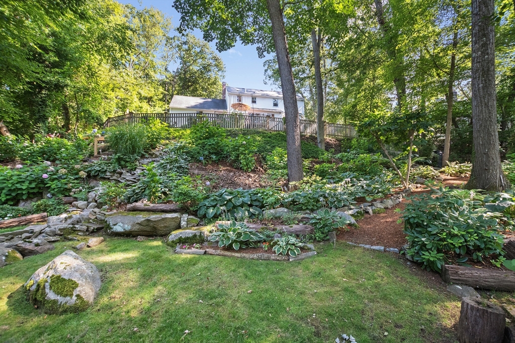 This beautifully maintained 4 bedroom,2.5 bath Colonial is situated on a gorgeous landscaped half-acre lot in wonderful neighborhood minutes from Framingham Country Club. Updated kit. features white cabinets with island & pantry, granite & st/steel appliances. Slider leads to huge 22' entertainment size Trex deck. All baths have been renovated. Finished walk-out basement. This fabulous home boasts recessed lights, crown molding, gleaming hdwd floors, solid doors installed thru-out the house, new furnace, replaced roof, 200 amp electrical, bluestone walkway and entryway, irrigation system with rain technology & new cedar fence. Enjoy outdoor living on two Trex decks overlooking the private & lush backyard filled with flowering trees and shrubs. Beyond the cedar fence is a "secret" garden in the woods with gentle slopes and winding paths leading to the lower garden. A dry waterfall, stone bridges, lots of flowering plants & a small pond - a little piece of heaven!! You will fall in love!