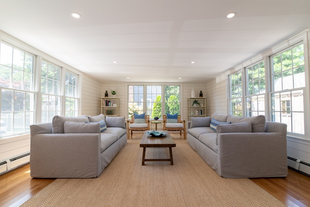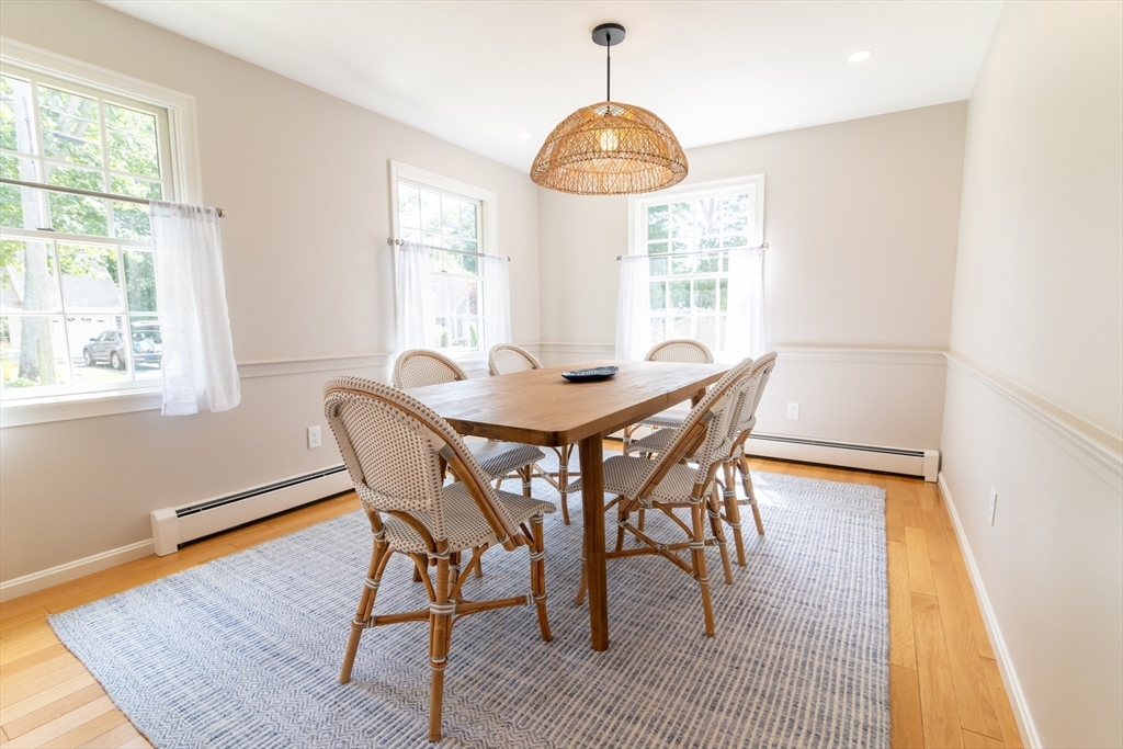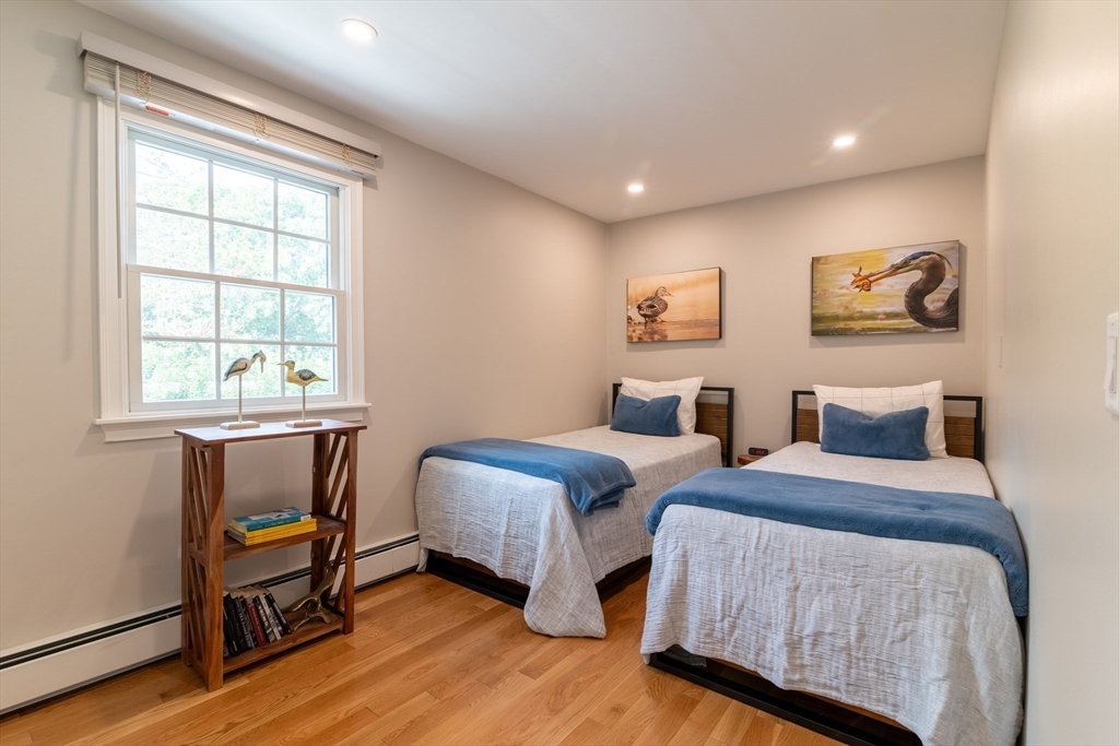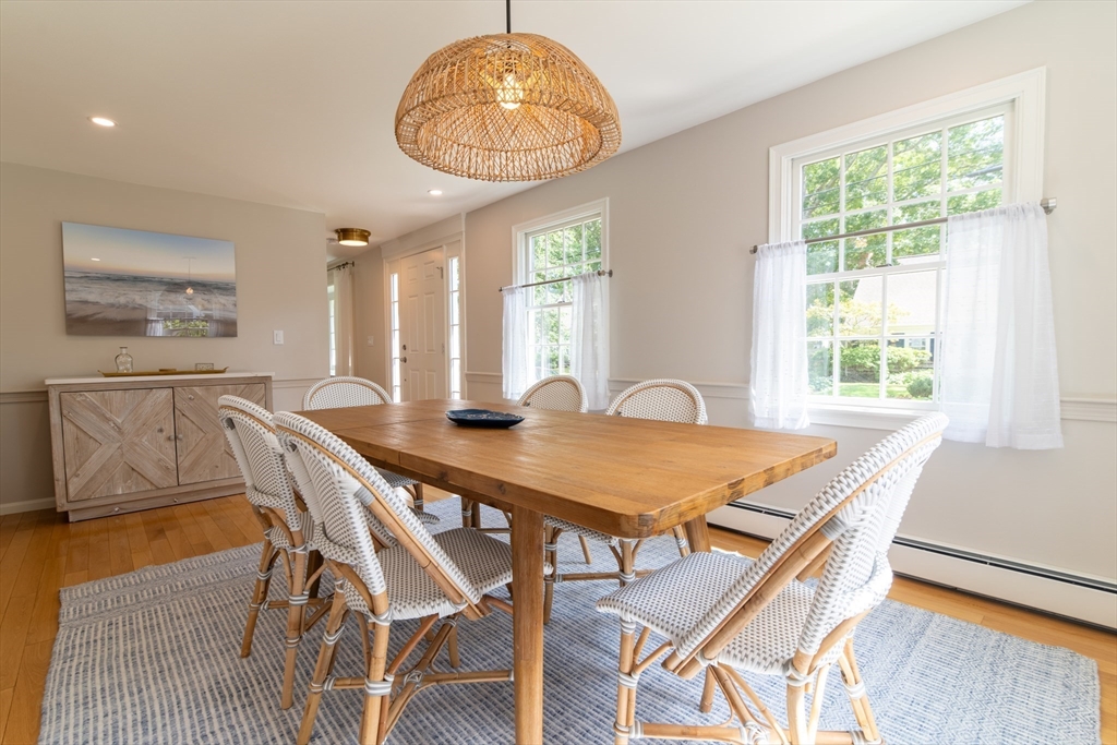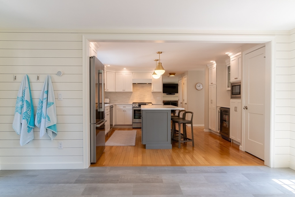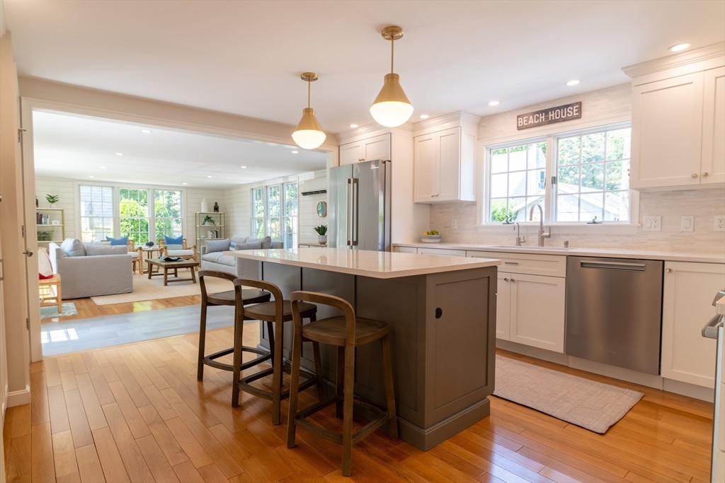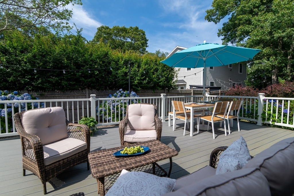 Set in the highly sought-after Maravista neighborhood, this beautifully renovated four-bedroom, two-and-a-half-bath Cape perfectly combines timeless charm with modern style. The first floor offers a spacious living room with shiplap walls, a custom kitchen with quartz countertops and high end appliances, a dining room, and a sun-filled family room with fireplace that opens to an expansive deck—an entertainer’s dream with seamless spaces for both formal and casual gatherings. Upstairs, the primary suite features a private ensuite bath, complemented by three additional bedrooms and a full guest bathroom. The unfinished basement provides endless potential for future expansion. Outdoors, enjoy the large deck, lush landscaping, and a newly built shed. Just steps away, Great Pond invites you to swim, kayak, paddleboard, and boat. With beaches, schools, shopping, restaurants, and the ferry all nearby, this home offers Cape Cod living at its finest.