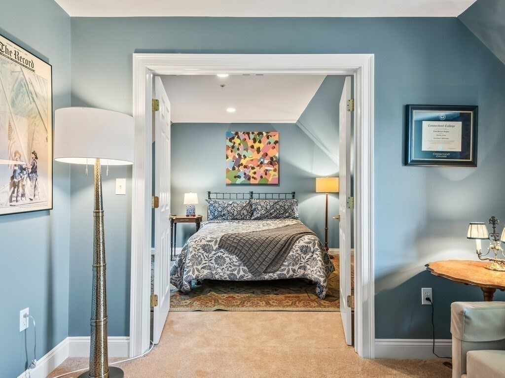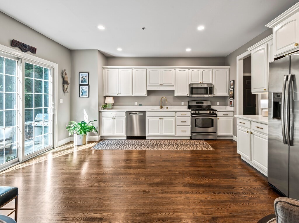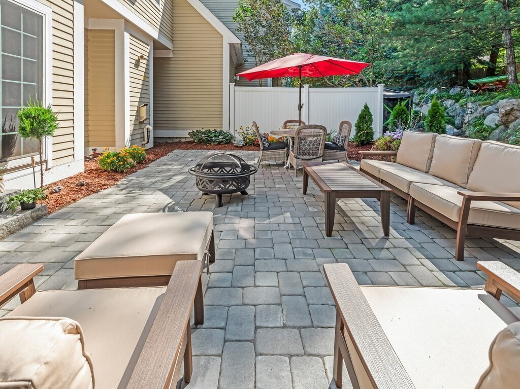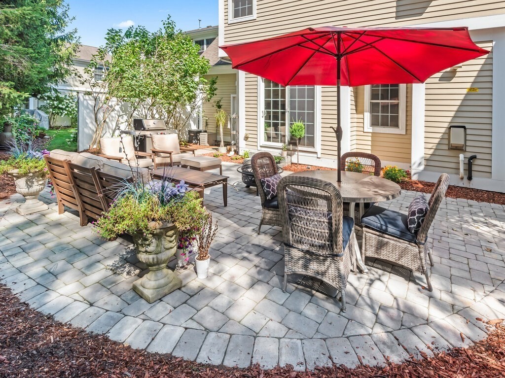 Open House 8/7 11-12:30, 8/8 12:00-1:30! Welcome to Carriage Lane! Beautiful townhouse, stylish living space. Open floor plan features fabulous chef's kitchen, w/ granite counters & stainless steel appliances, leading to the perfect for entertaining, cobblestoned patio! Hardwood floors throughout. Gas-fireplaced living room flows into dining room w/ 9ft ceilings. 2nd level presents the spacious primary suite, boasting a walk-in closet & spacious bath with double vanity, soaking tub & tiled shower. A 2nd bdrm with skylight and French doors plus another full bath provide comfort & flexibility. Additional highlights include in-unit laundry, central air, & an attached garage with ample parking. Professionally managed community w/ landscaping, snow removal, & exterior maintenance included in HOA fee. Conveniently located on Rt 20 near shopping, dining, and commuter routes. This move-in ready home blends modern style, comfort, & convenience. Please call to set an appointment.