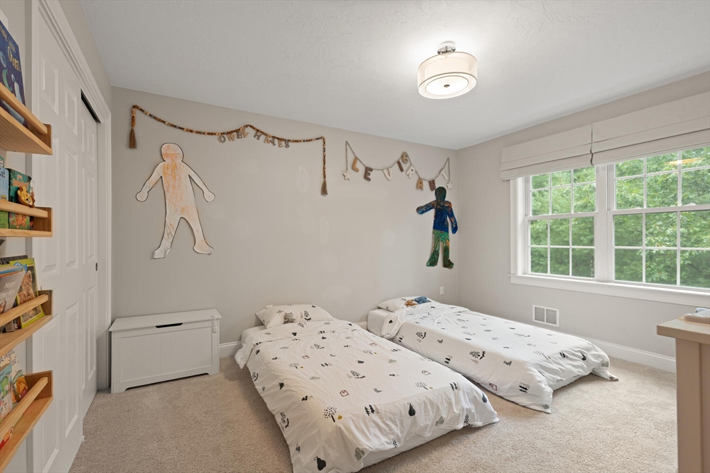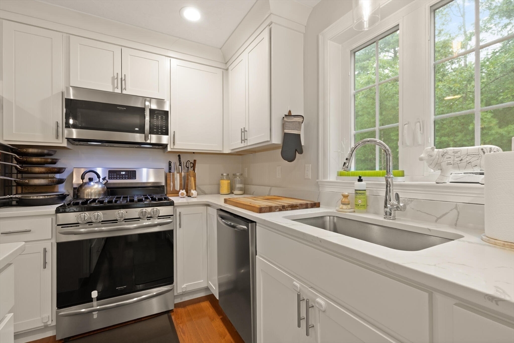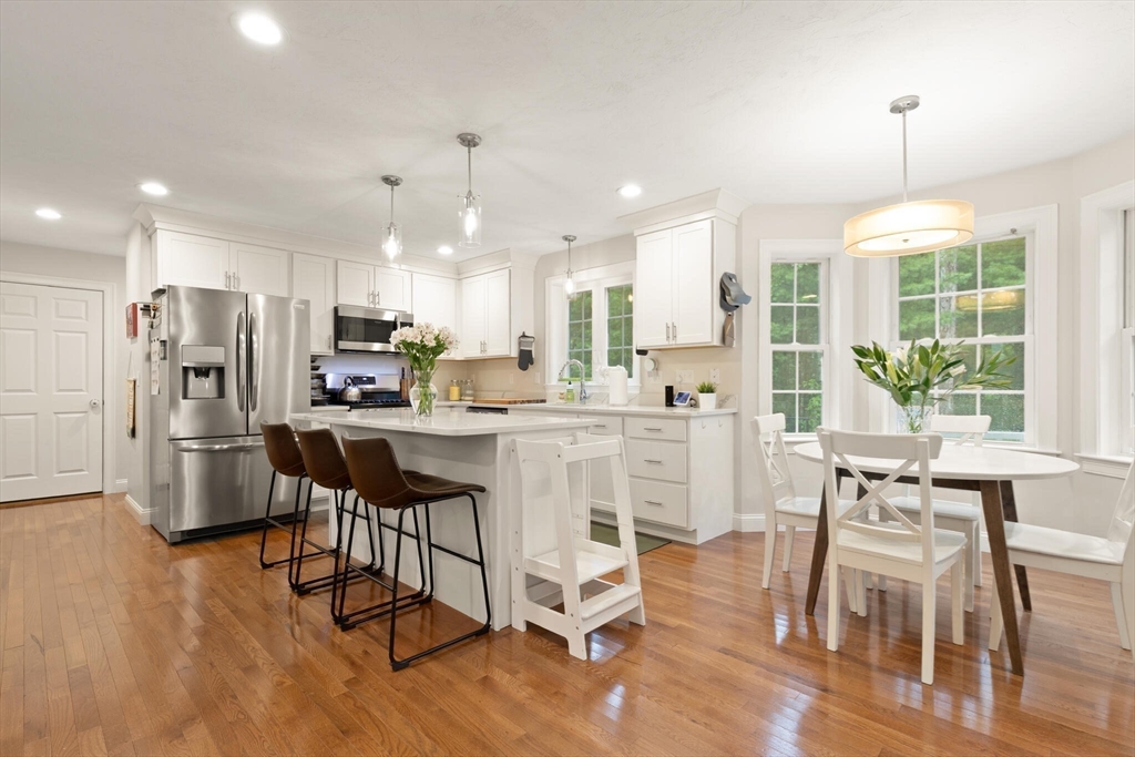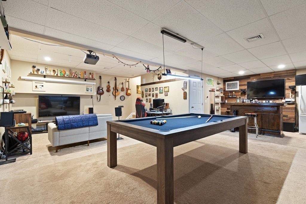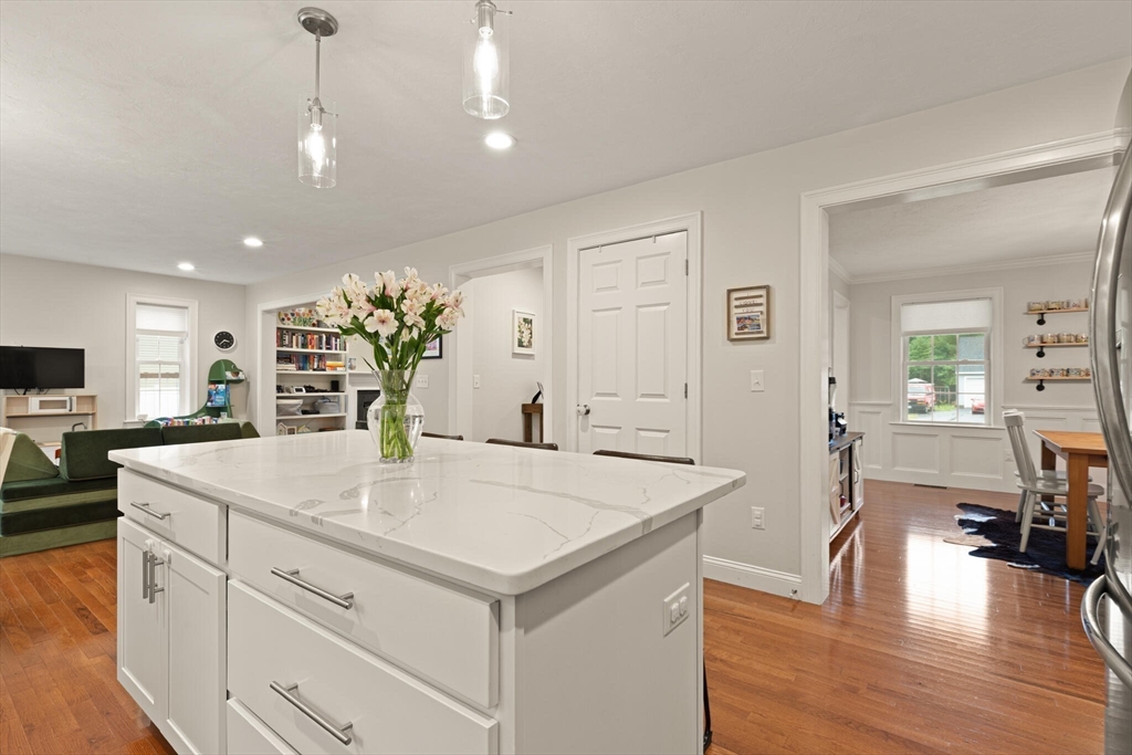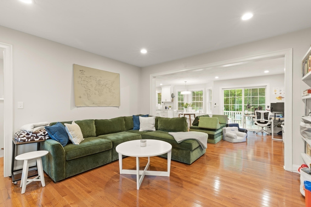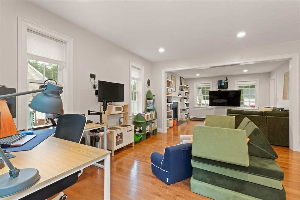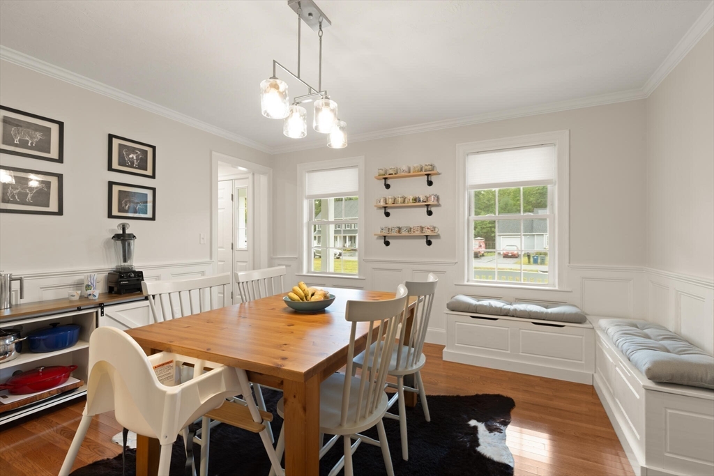 An amazing opportunity to own a 'better-than-new' center entrance colonial on a dead-end street in Townsend, right over the boarder from Pepperell and Groton. Open concept living encompaces kitchen, dining, family, and living rooms. Eat-in kitchen has white shaker cabinets and large quartz island with room for 3 barstools. Gas fireplace in living rm. Family rm has sliders to deck and backyard oasis - fully fenced and thoughtfully designed with deck and patio and optional playstructure. First floor is complete with half bath and direct entry from the garage. Hardwood floors on 1st floor run up the threads and in hallway upstairs, where 3 bedrooms all have wall-to-wall carpet and overhead lighing. Main bedroom has recessed lighting, walk-in closet with built-ins as well as en-suite bath with shower and dual vanity. The basement was finished by builder upon construction and has an extra deep foundation giving it 9ft and 8ft ceilings (1/2+1/2) making it truly usable space.