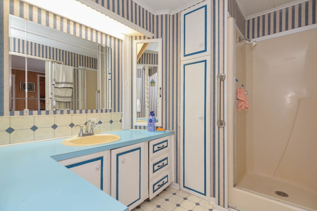 Discover affordable and comfortable living at 10 Sharon Circle in Merrimac’s sought-after North Shore Community Park. This charming two-bedroom, two-bath home offers an inviting open-concept layout with a spacious eat-in kitchen and a cozy fireplaced living room that’s perfect for relaxing or entertaining. The primary suite features its own private bath, creating a true retreat within the home. Recent updates include a new furnace installed in 2022, giving you peace of mind for years to come. Outside, you’ll enjoy the convenience of a storage shed, while the monthly park fee of just $492 covers water, sewer, trash, and even taxes—keeping your living costs simple and predictable. Set in a great location and offering incredible value, this home is an opportunity you won’t want to miss. Sale is subject to park approval. Schedule your showing today and see all that this welcoming community has to offer! Sale is subject to park approval.