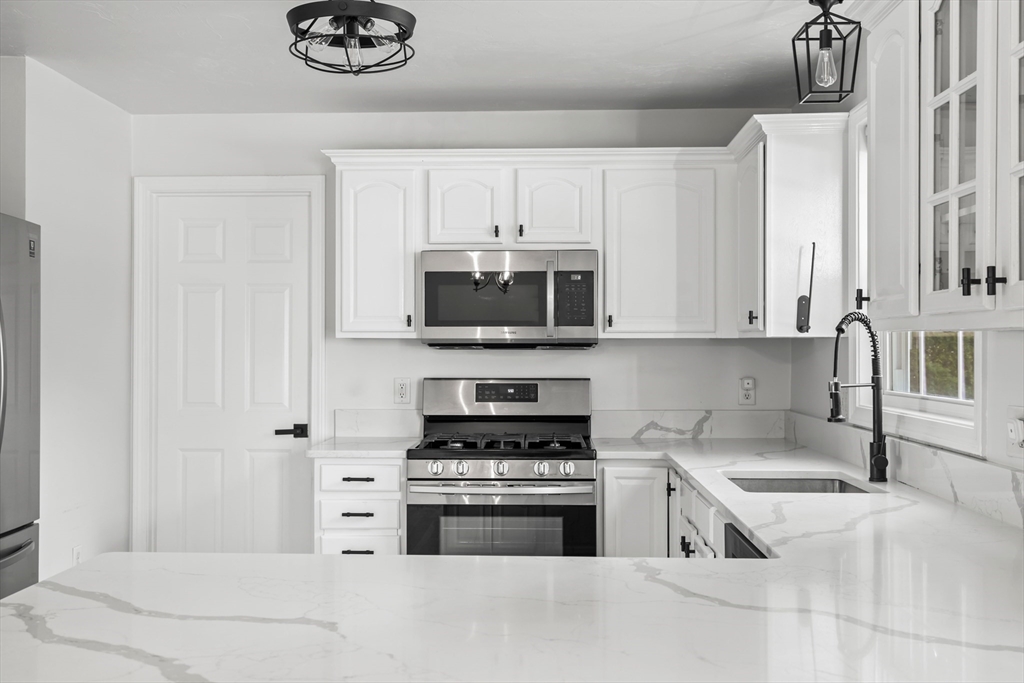 Welcome to South Pointe Condominium, a warm and inviting community nestled in a cozy Quincy neighborhood. This spacious 1,389 sq ft townhouse offers the perfect blend of suburban comfort and condo convenience. Step inside to discover a thoughtfully designed layout. The first floor features a private primary bedroom complete with an ensuite bathroom, ideal for single-level living. Upstairs, you’ll find two generously sized bedrooms, each with double closets, and a full second bathroom—perfect for family or guests. The open-concept living and dining areas create a seamless flow into the updated kitchen, with stainless steel appliances, quartz countertops, and a breakfast bar make both everyday living and entertaining a breeze. A glass door off the kitchen leads to a private backyard space—ideal for small gatherings or quiet mornings with coffee. Hardwood flooring throughout. A large basement adds even more versatility, with plenty of room for a family room, home office, or workout area.