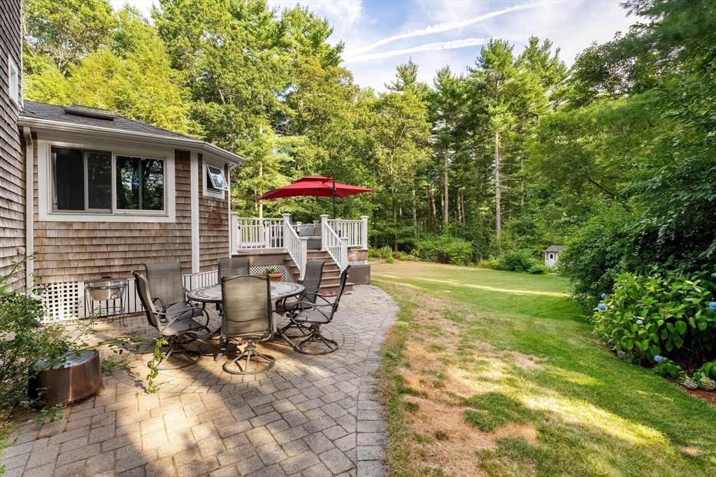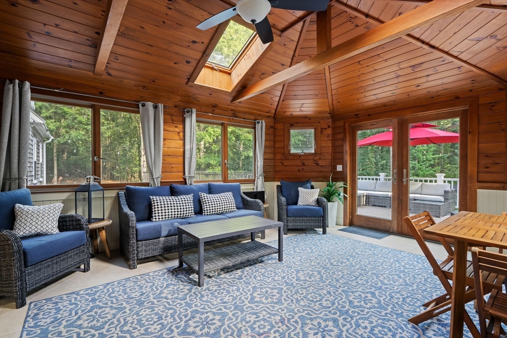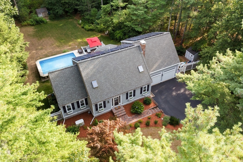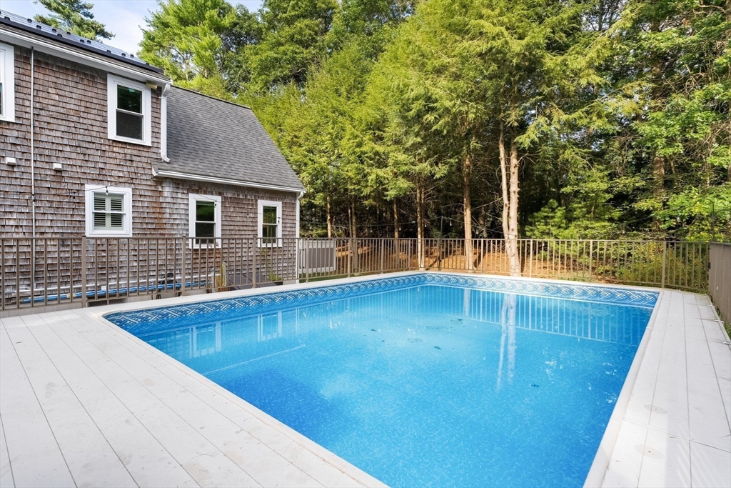 Set on a private lot in a highly regarded neighborhood, this contemporary cape offers a blend of comfort, space, and modern updates. The inviting foyer opens to a bright kitchen, dining, and living area that flow seamlessly together. A cathedral-ceiling three-season room overlooks the landscaped backyard, complete with pool, patio, outdoor dining, fire pit, and gardens along the property’s edge. The first-floor suite features vaulted ceilings, a spacious walk-in closet, and full bath, with first-floor laundry conveniently nearby. Upstairs are three additional bedrooms, a full bath, and an oversized bonus room with a second staircase leading directly to the kitchen. The finished basement adds even more versatile living space. Additional highlights include brand-new windows, a new heating system, newly painted exterior, irrigation, full-house generator, and Tesla solar panels for energy efficiency. A well-maintained property in an amazing neighborhood. Schedule your showing today!
