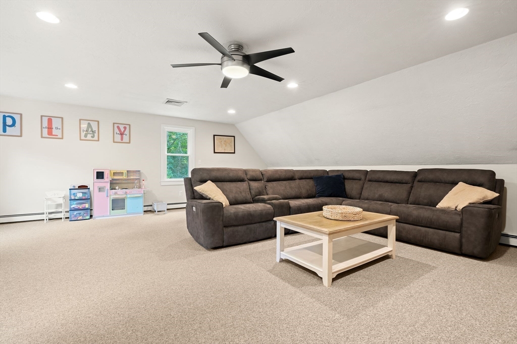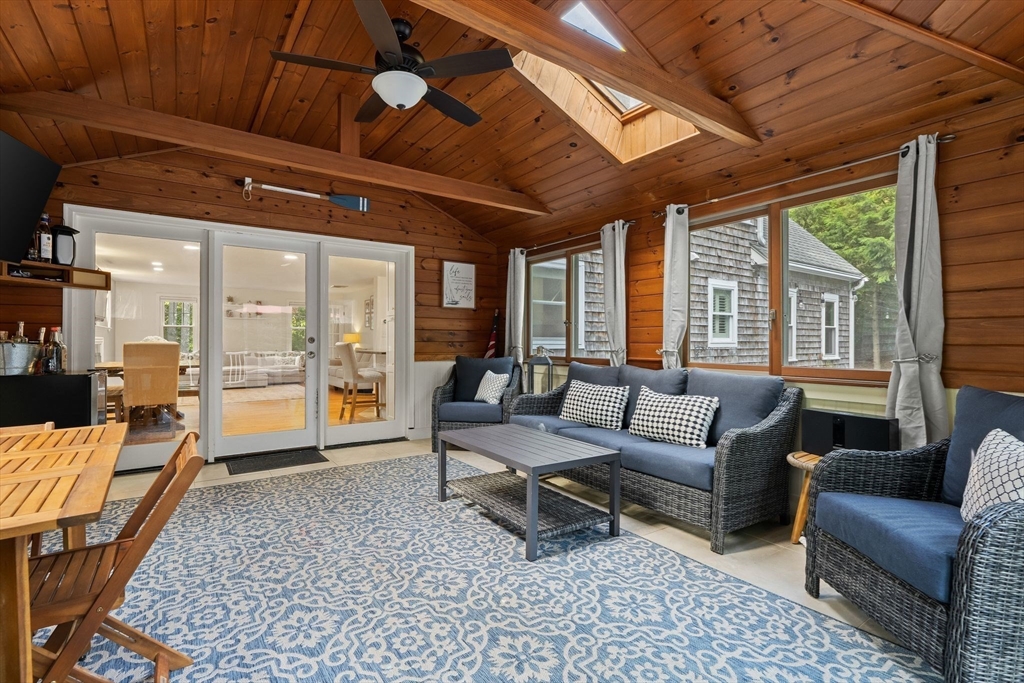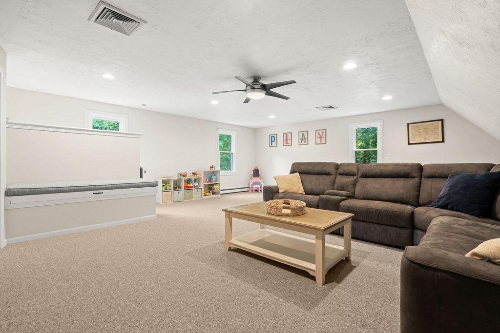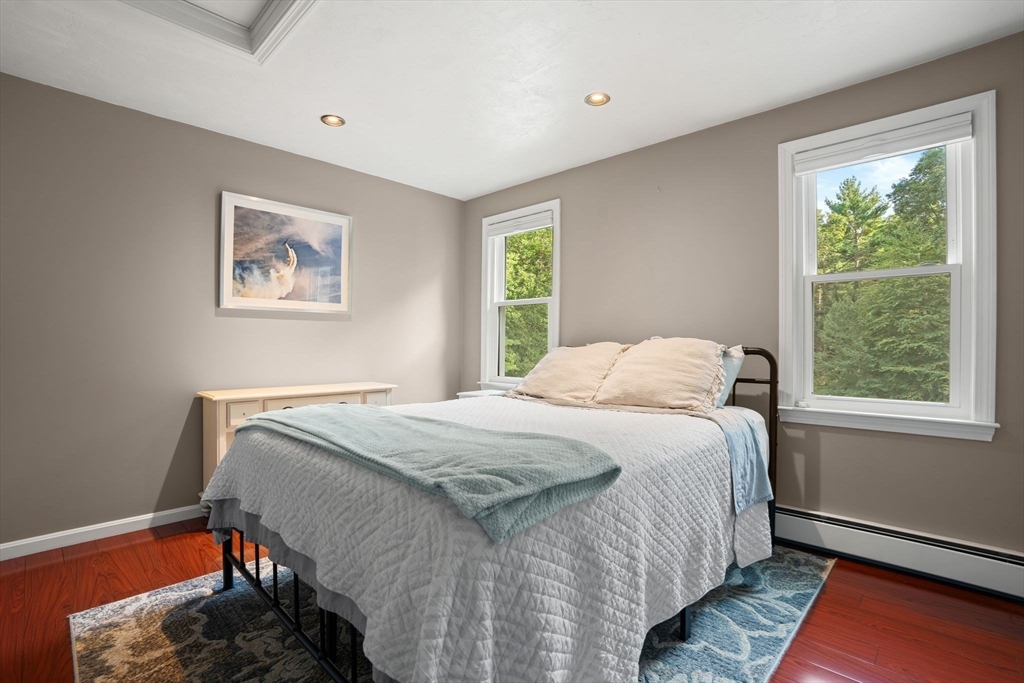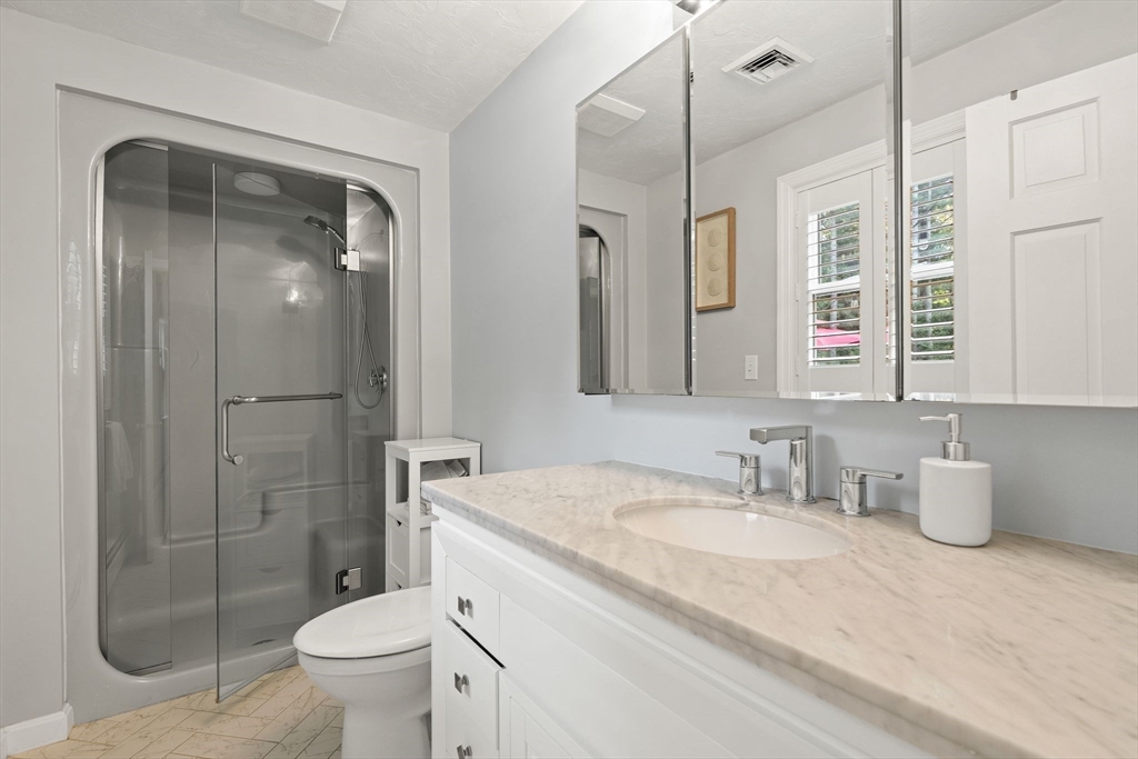 Set on a private lot in a highly regarded neighborhood, this contemporary cape offers a blend of comfort, space, and modern updates. The inviting foyer opens to a bright kitchen, dining, and living area that flow seamlessly together. A cathedral-ceiling three-season room overlooks the landscaped backyard, complete with pool, patio, outdoor dining, fire pit, and gardens along the property’s edge. The first-floor suite features vaulted ceilings, a spacious walk-in closet, and full bath, with first-floor laundry conveniently nearby. Upstairs are three additional bedrooms, a full bath, and an oversized bonus room with a second staircase leading directly to the kitchen. The finished basement adds even more versatile living space. Additional highlights include brand-new windows, a new heating system, newly painted exterior, irrigation, full-house generator, and Tesla solar panels for energy efficiency. A well-maintained property in an amazing neighborhood. Schedule your showing today!