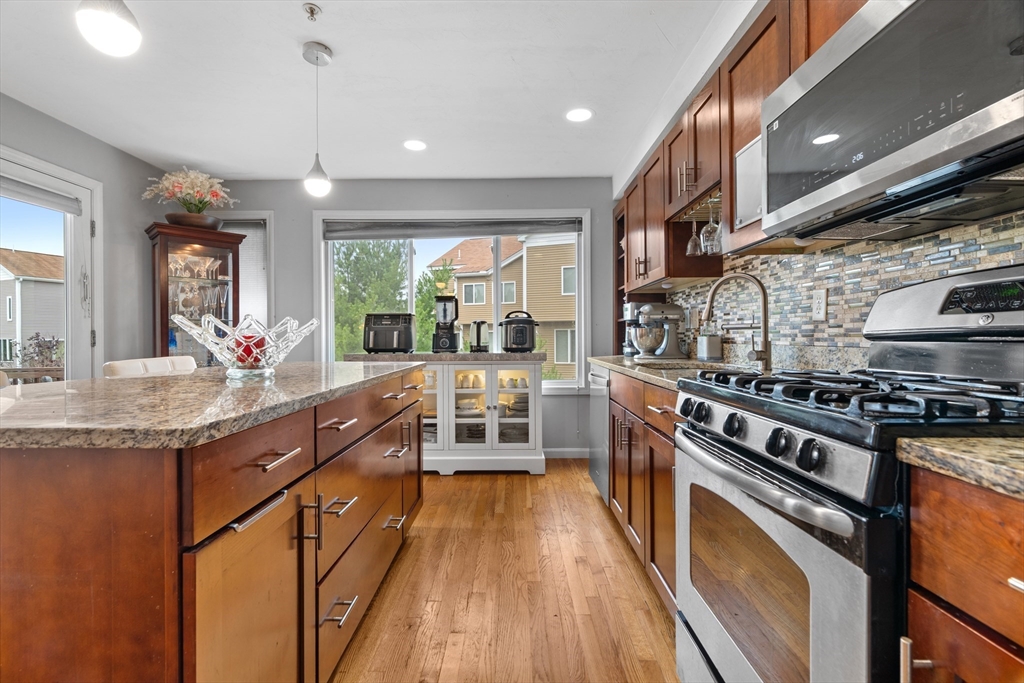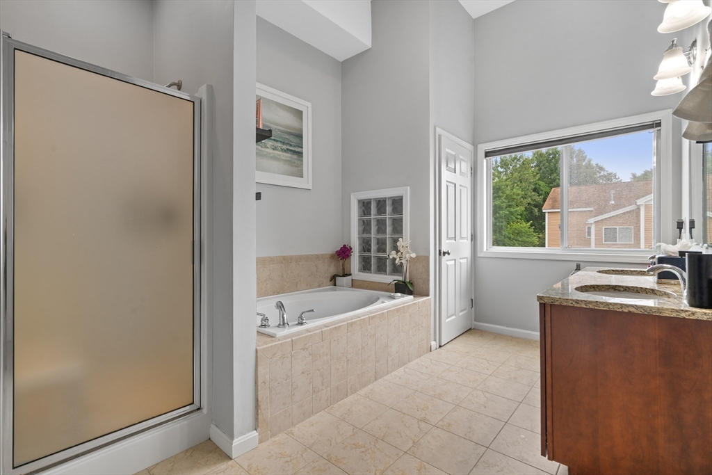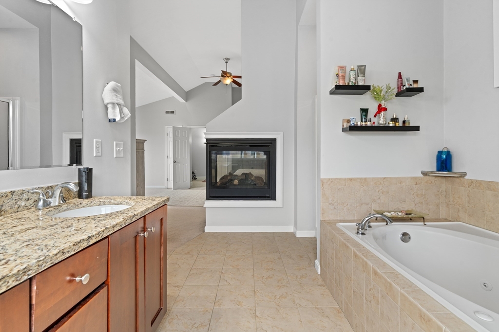 Welcome home to this stunning 2-bd, 2.5-bath condo with an open floor plan perfect for modern living with many great updates. The warm glow of the fireplace greets you upon entry creating an inviting space for both relaxing nights and entertaining guests. The gourmet kitchen shines with high-end appliances and generous counter space. Retreat to the expansive primary ste, featuring plush carpeting, generous dimensions, and a serene ambiance. Enjoy a spacious walk-in closet and a luxurious ensuite with dual sinks, soaking tub, jacuzzi, and separate shower-your personal spa-like escape. The 2nd bedroom is cozy and bright. A finished walkout lower level currently used as a 3rd bedroom and office provides flexible space for gym or playroom, while the walk-up attic adds even more storage or bonus space. Ashland known for its esteemed schools, offers a range of amenities and easy access to Boston, Rte 9, Rte 135, I-495, and the Ashland T station . A must-see to truly appreciate its beauty!