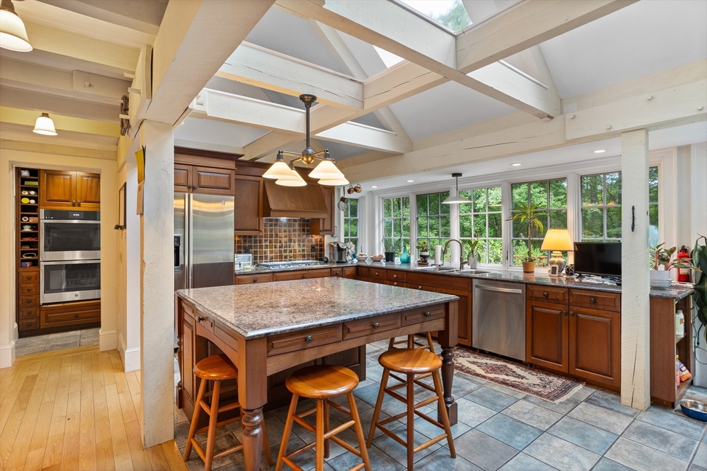 Nestled on nearly 3 acres in the peaceful town of Dunstable, this charming 3-bedroom (plus office and bonus room),4-bath home offers a blend of rustic character, flexible space, and serene outdoor living. You are greeted by a warm and welcoming property with a 2-car garage, beautiful gardens, and ample room to enjoy animals, gardening, or simply relaxing in your private pool yard. Inside, the main house showcases classic post-and-beam construction, exposed woodwork, and an abundance of natural light thanks to generous skylights throughout. The updated kitchen features new appliances and large windows that frame tranquil views of the backyard gardens. The first floor is currently used as an art gallery and office space, but with its flexible layout, it could easily be reimagined as additional garage space, a home office or (ADU).Whether you're looking for a quiet retreat, a space to grow and create, or a home with expansion potential, "Oakstone" offers endless possibilities.