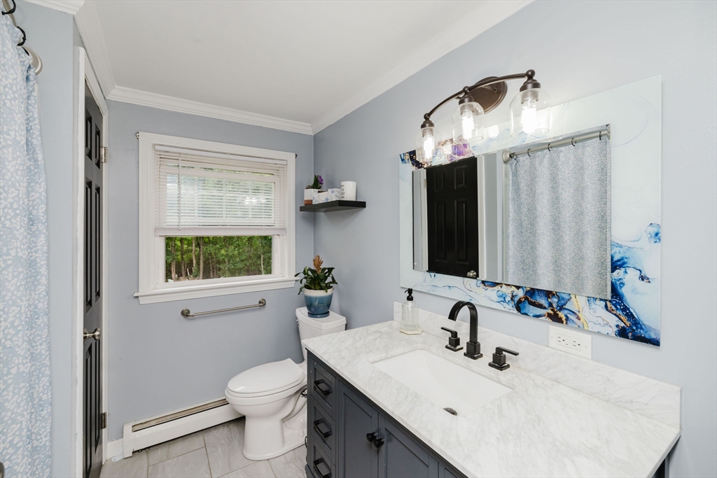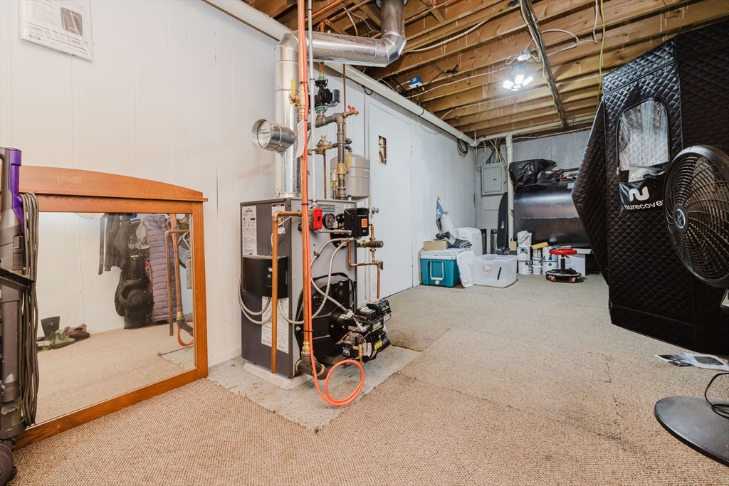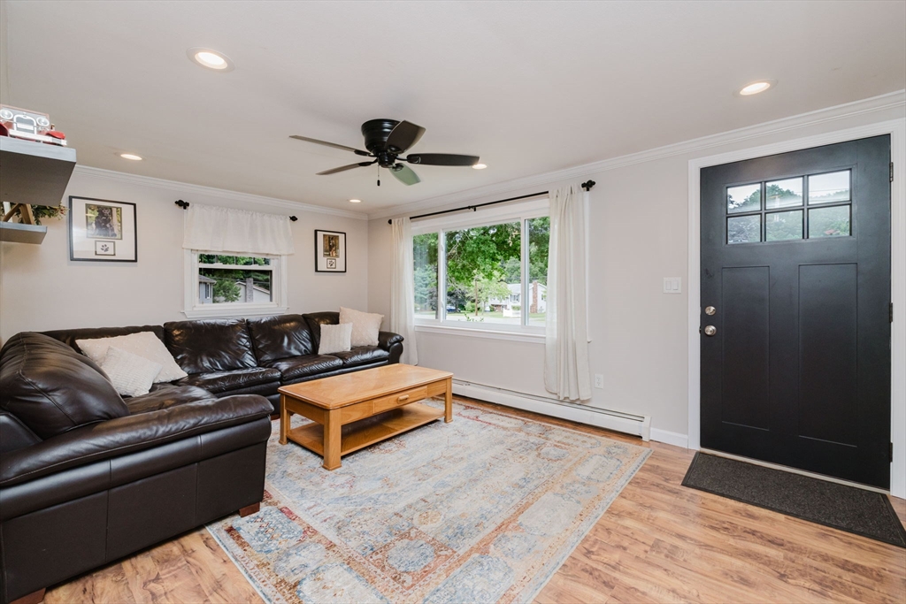 Welcome home to this well-maintained 3 bedroom, 1 bath ranch nestled on a generous 1/2 acre lot in quiet, well-established neighborhood near the end of a dead end street. This home offers comfortable, single level living with a bonus space in the partially finished basement, perfect for a home gym, office or family room. Step inside to a bright living area with large windows and a functional galley kitchen. Three nicely sized bedrooms share a bathroom recently updated in 2022. New furnace 10/23,new front door & storm door, new front window in living room and new slider leading out to the deck. Enjoy the peaceful outside setting with mature trees, a large backyard and plenty of room for gardening or entertaining. Move in ready home at an affordable price, don't miss your chance to make it yours!