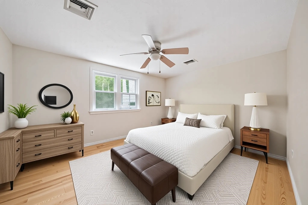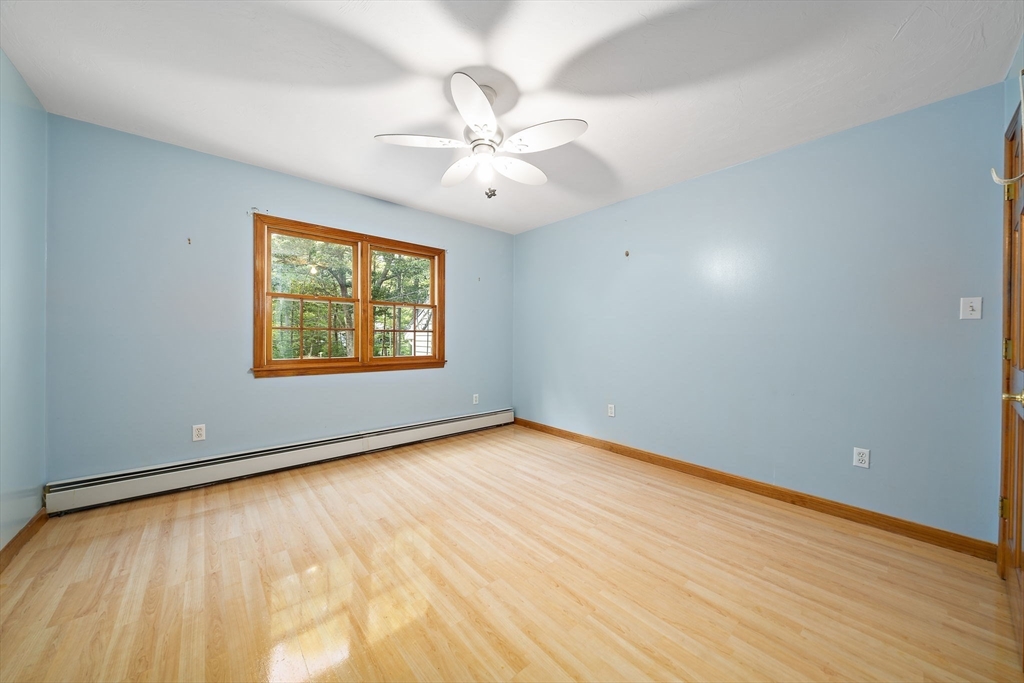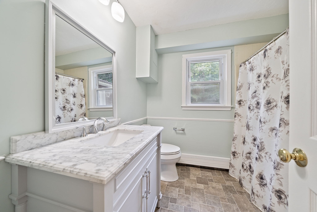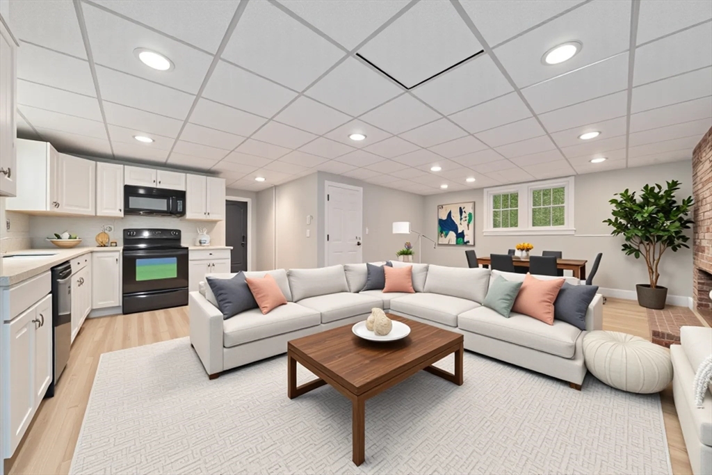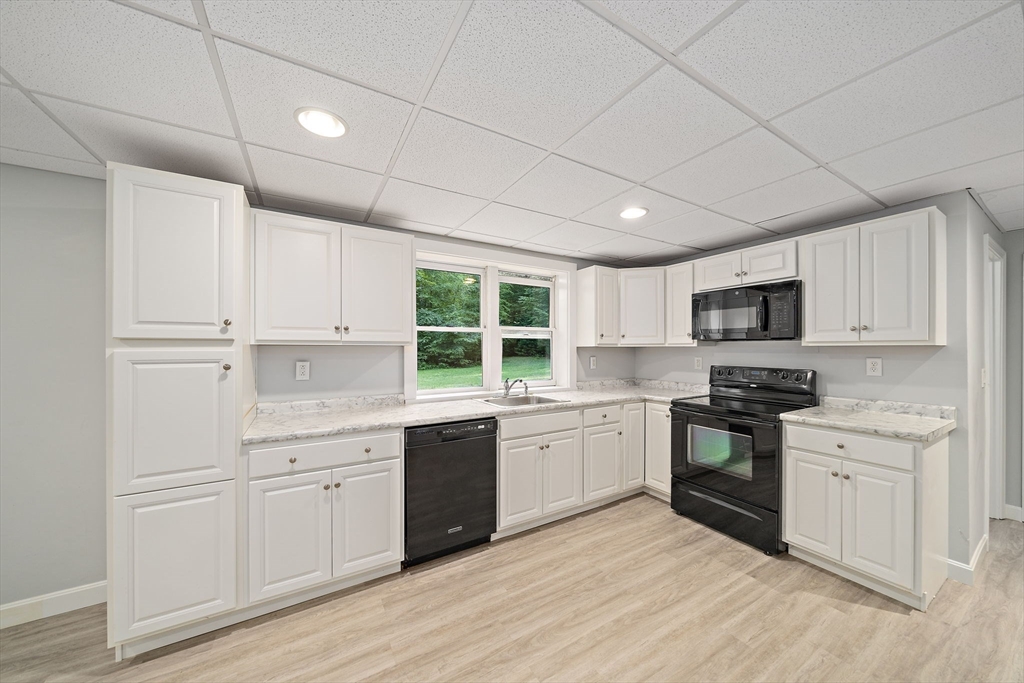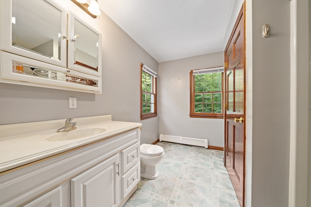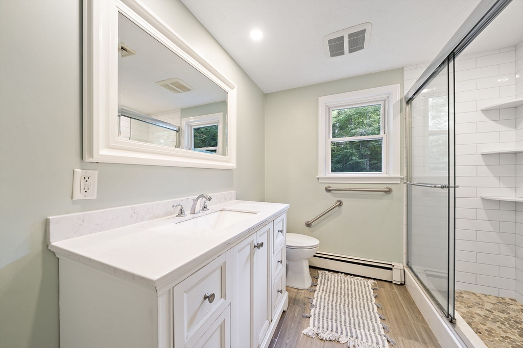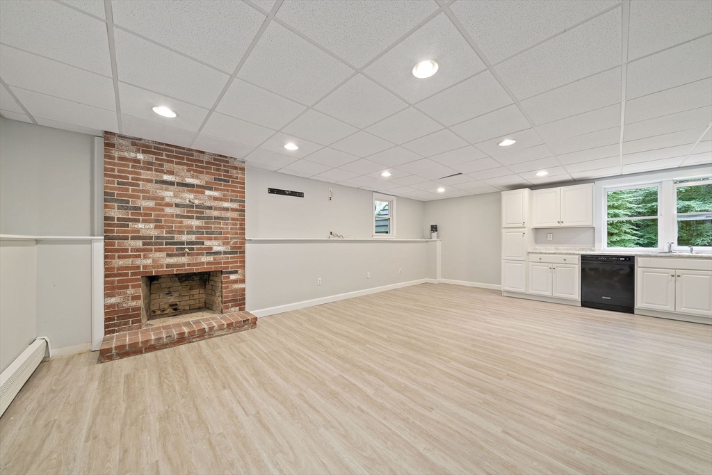 This spacious home truly has room for everyone! The main house welcomes you with a dramatic cathedral-ceiling family room complete with a wood-burning fireplace, leading into a generous eat-in kitchen and large deck overlooking the backyard.The main level features three bedrooms and an updated full bath, with newly installed oak hardwood flooring and fresh paint throughout 1st floor. The walk-out lower level expands the living space with a 2nd fireplaced family room, full bath, kitchenette and office/bedroom perfect for guests, extended family, or a private retreat. A massive addition enhances the property with an oversized two-car garage and a completely separate one-bedroom in-law suite above with its own private deck and laundry offering ultimate independence Set on a level 1.4 acre lot in a highly convenient neighborhood with walking trails and quick access to highways, shopping, and dining, this property provides endless possibilities for multi-generational living or rental income