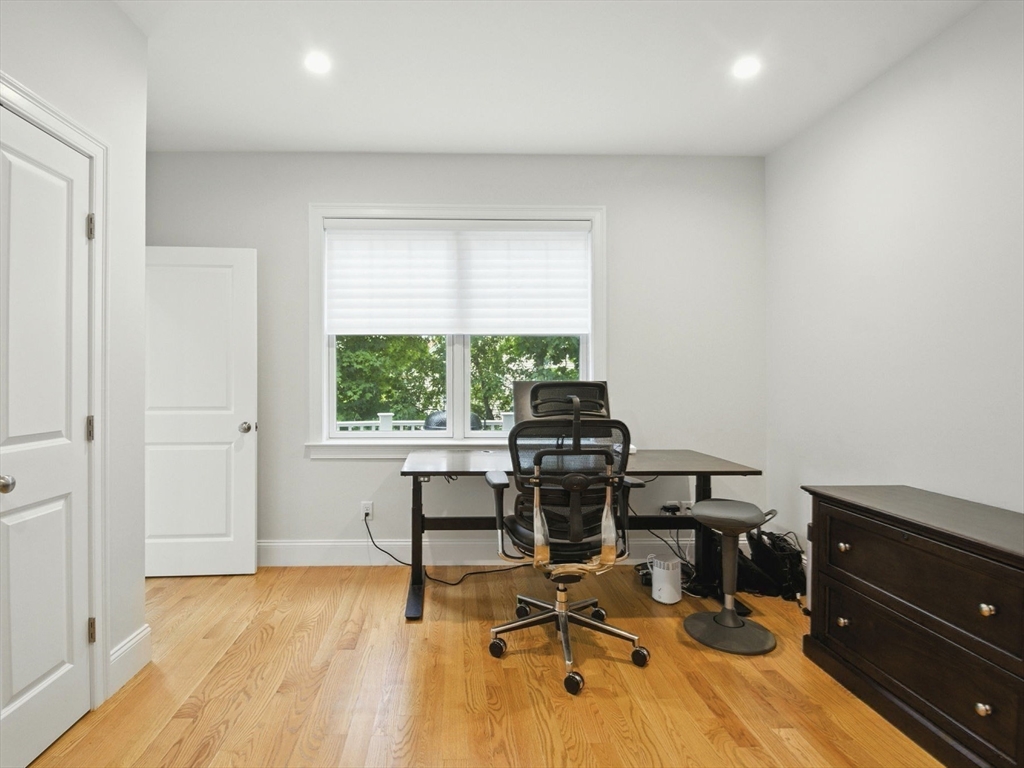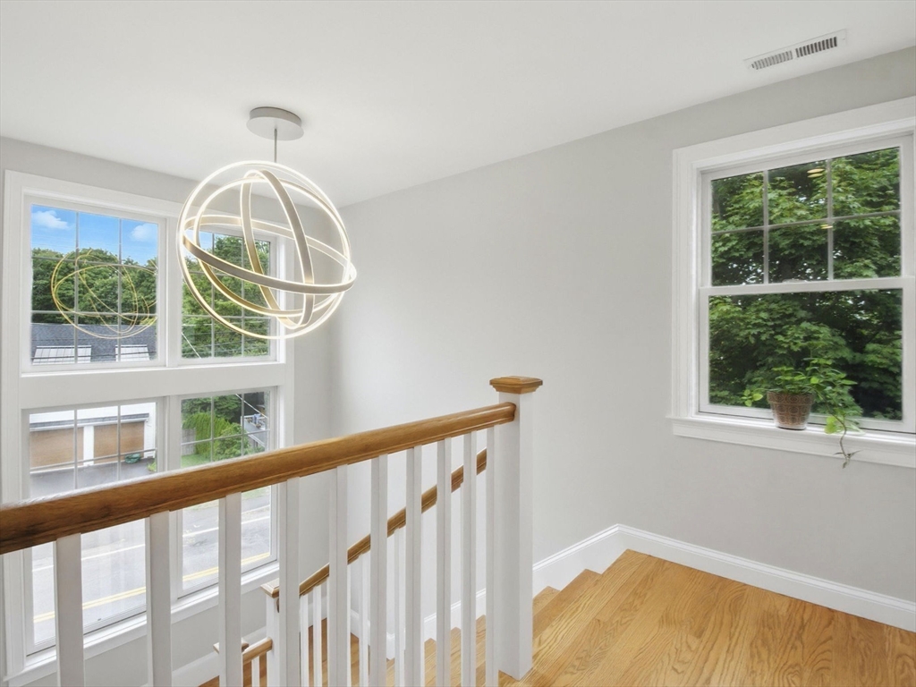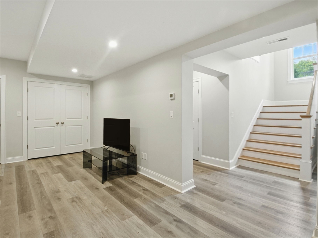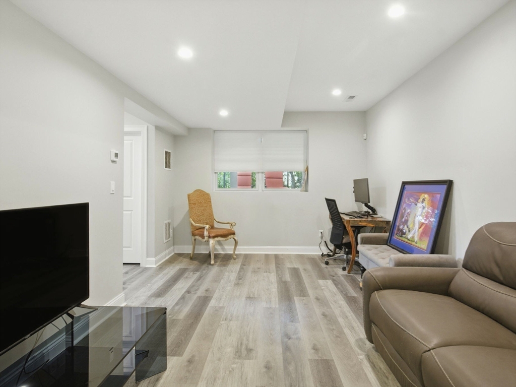 This stunning attached home offers a bright, open, and spacious floor plan, highlighted by a huge island kitchen and cabinet space your friends will envy, perfect for cooking and entertaining. Built in 2021 and meticulously cared for, it shows like new, featuring beautiful oak hardwood floors, 9ft ceilings, and ornate high-end light fixtures throughout. A much sought-after first-floor bedroom or office with a full bath allows for the perfect work-from-home space, or for guests with easy first-floor living. Upstairs, the luxurious primary suite boasts a large walk-in closet outfitted with custom shelving and cabinetry. The spa-like primary bath includes an oversized walk-in shower, a soaking tub, and a double-sink vanity. 2 additional 2nd floor bedrooms with a shared hall bath, plus a nice laundry room The lower level offers a spacious bonus room, ideal for game gatherings. There is a good size mudroom, and an oversized two-car garage.