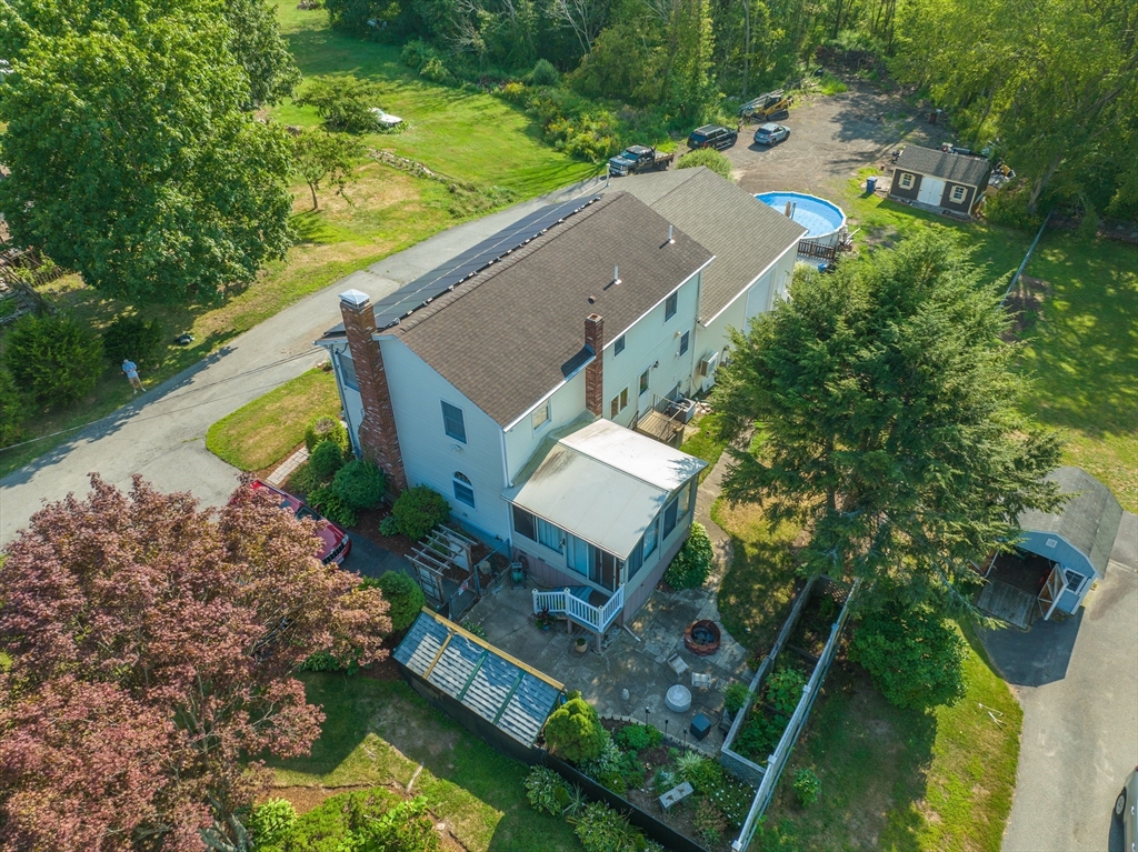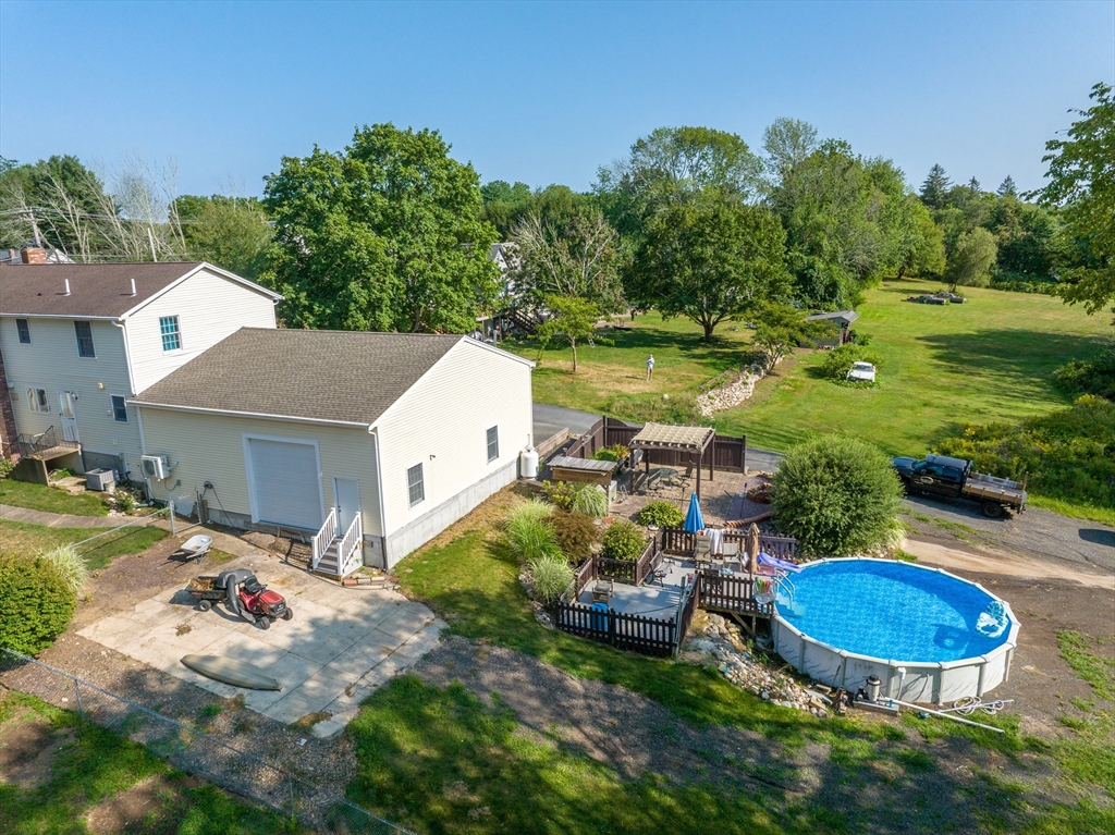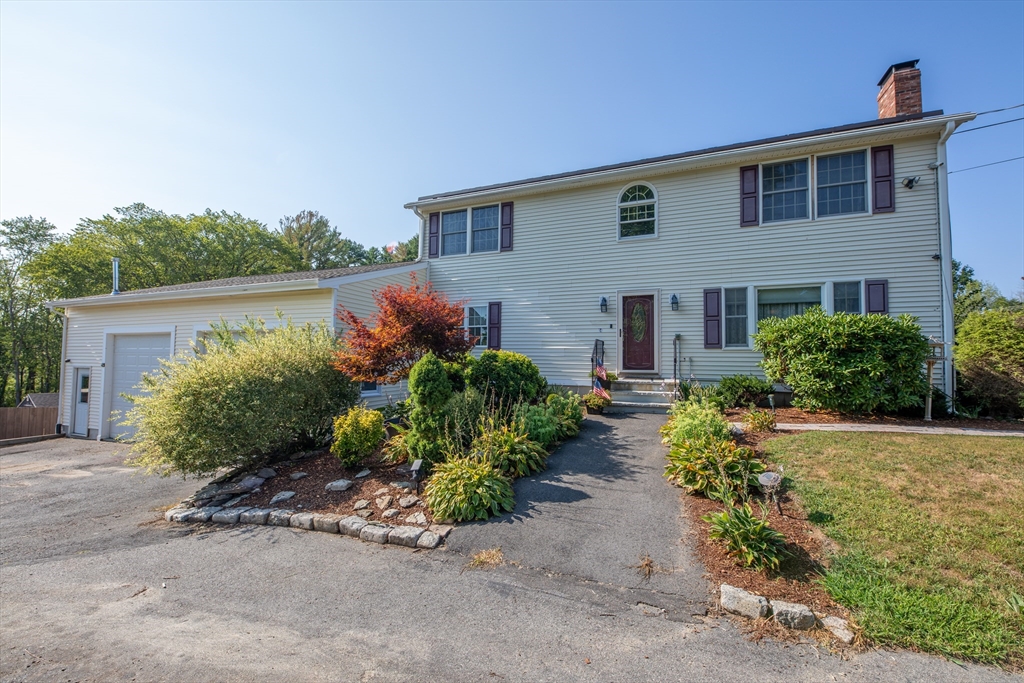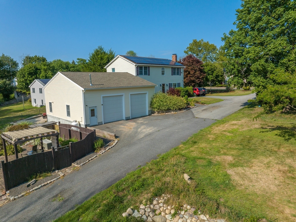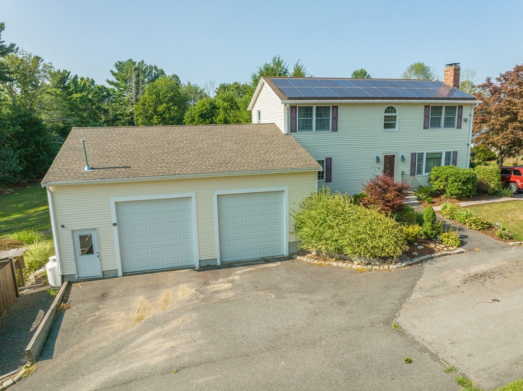 Located in the town of Whitman, this spacious colonial home presents a unique opportunity to establish roots in a desirable location. The property boasts versatile living areas that cater to various needs. It features 5 bedrooms, including 1 conveniently located on the 1st floor, along with 2 full bathrooms—1 equipped with a soothing Jacuzzi tub. The well-appointed kitchen is bright and spacious, seamlessly leading to a sunroom that enhances the home's living space. The basement offers a cozy family room heated by a wood stove, in addition to ample storage for all your essentials. The impressive 36x36 garage features a 14-foot ceiling, propane heater, mini-split for both a/c & heat, & cable hookup, making it ideal for vehicles, work or hobbies. A 20x14 garage with electricity provides further utility. Set on a generous 3.7-acre lot, there is opportunity to enjoy the outdoors, whether you're relaxing by the pool, lounging on the patio under the pergola or enjoying an evening by a fire.