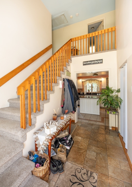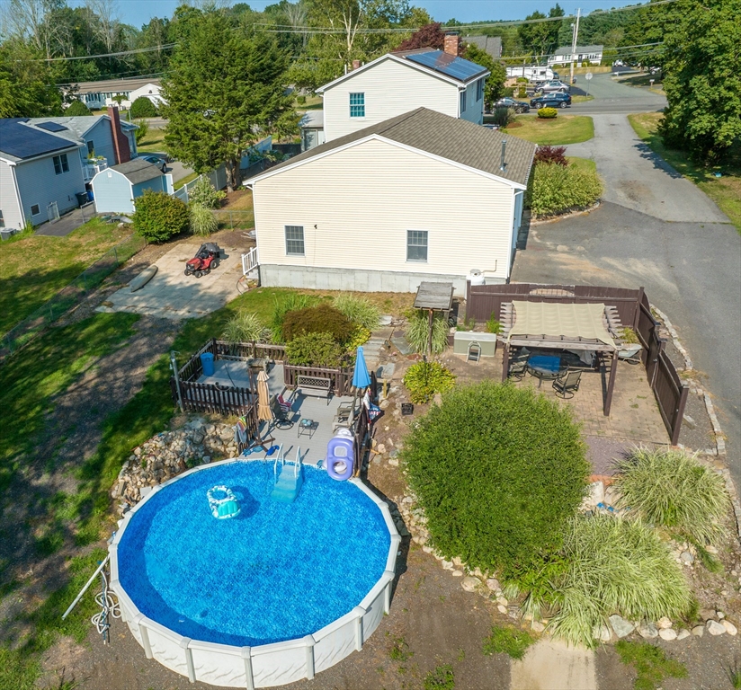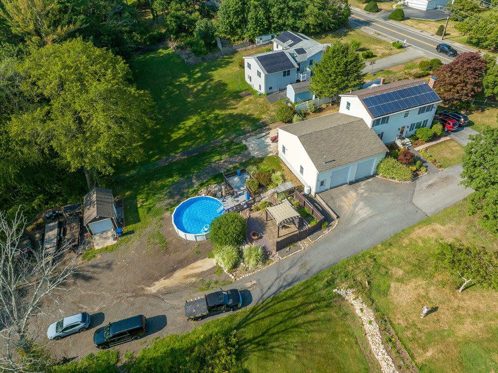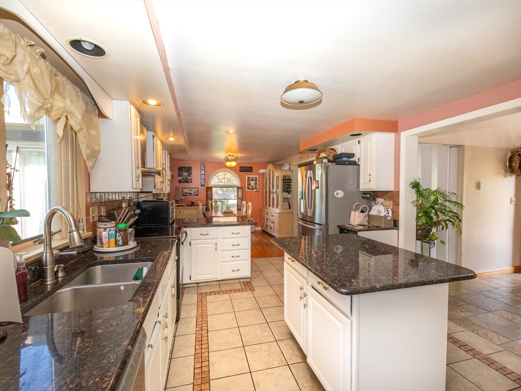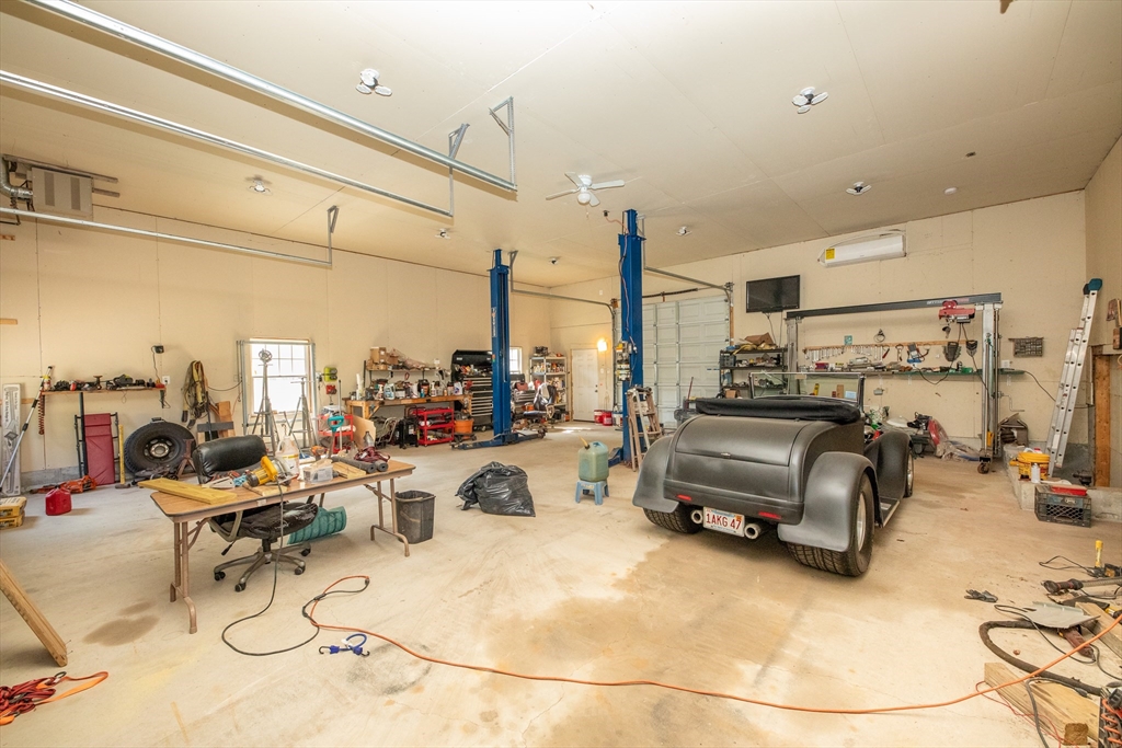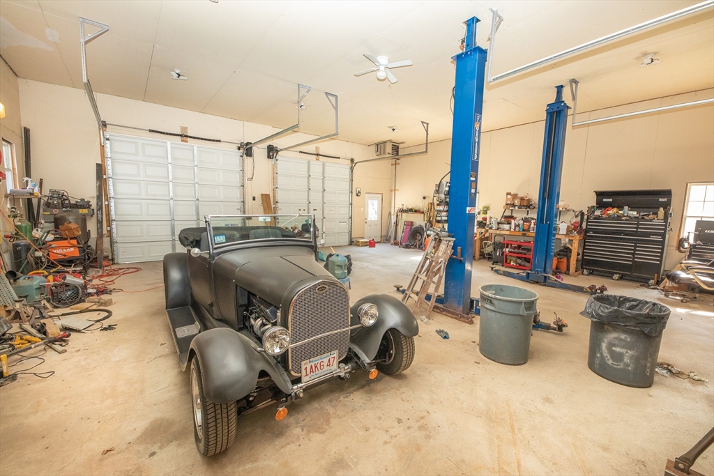 Located in the town of Whitman, this spacious colonial home presents a unique opportunity to establish roots in a desirable location. The property boasts versatile living areas that cater to various needs. It features 5 bedrooms, including 1 conveniently located on the 1st floor, along with 2 full bathrooms—1 equipped with a soothing Jacuzzi tub. The well-appointed kitchen is bright and spacious, seamlessly leading to a sunroom that enhances the home's living space. The basement offers a cozy family room heated by a wood stove, in addition to ample storage for all your essentials. The impressive 36x36 garage features a 14-foot ceiling, propane heater, mini-split for both a/c & heat, & cable hookup, making it ideal for vehicles, work or hobbies. A 20x14 garage with electricity provides further utility. Set on a generous 3.7-acre lot, there is opportunity to enjoy the outdoors, whether you're relaxing by the pool, lounging on the patio under the pergola or enjoying an evening by a fire.