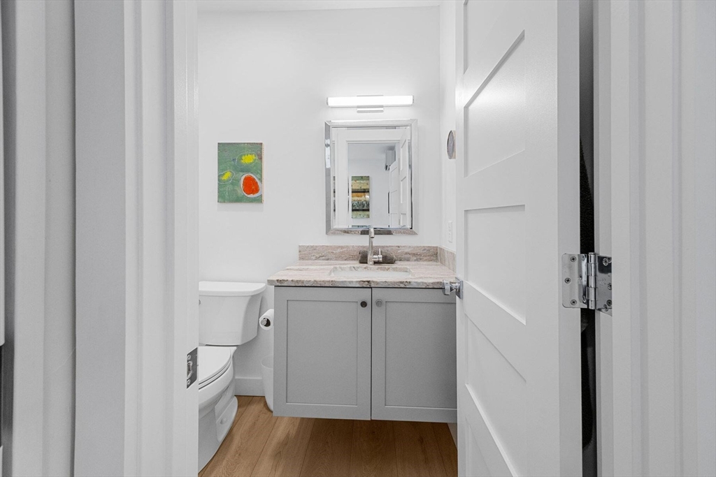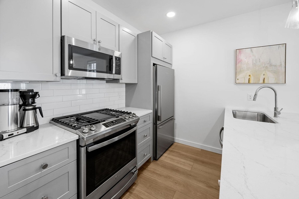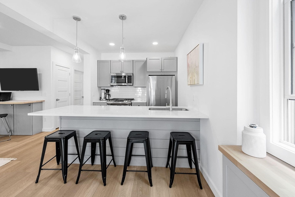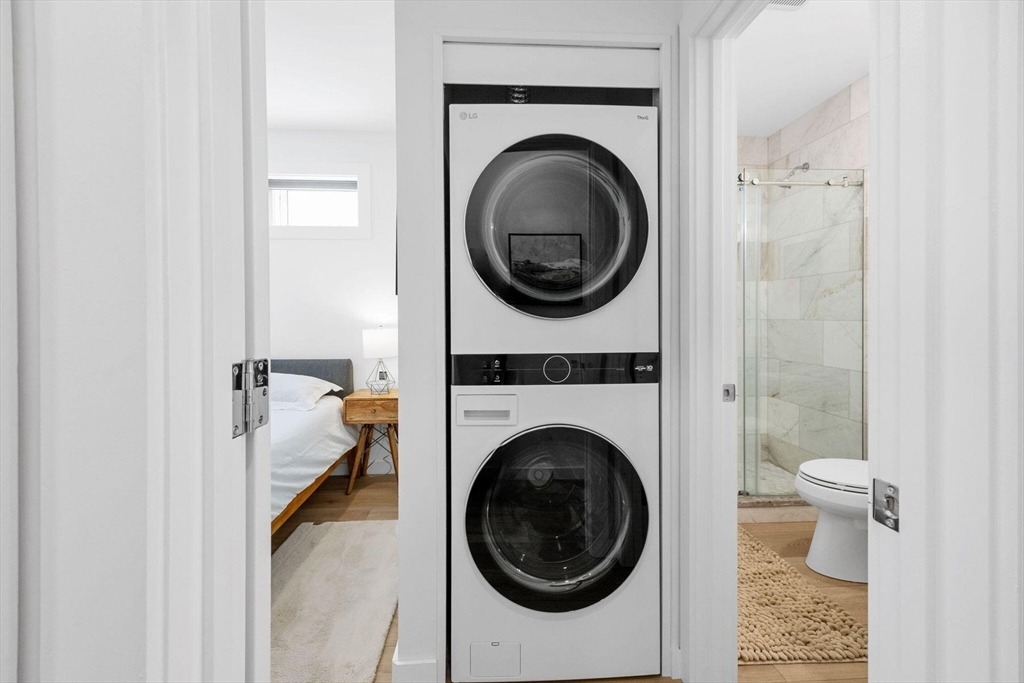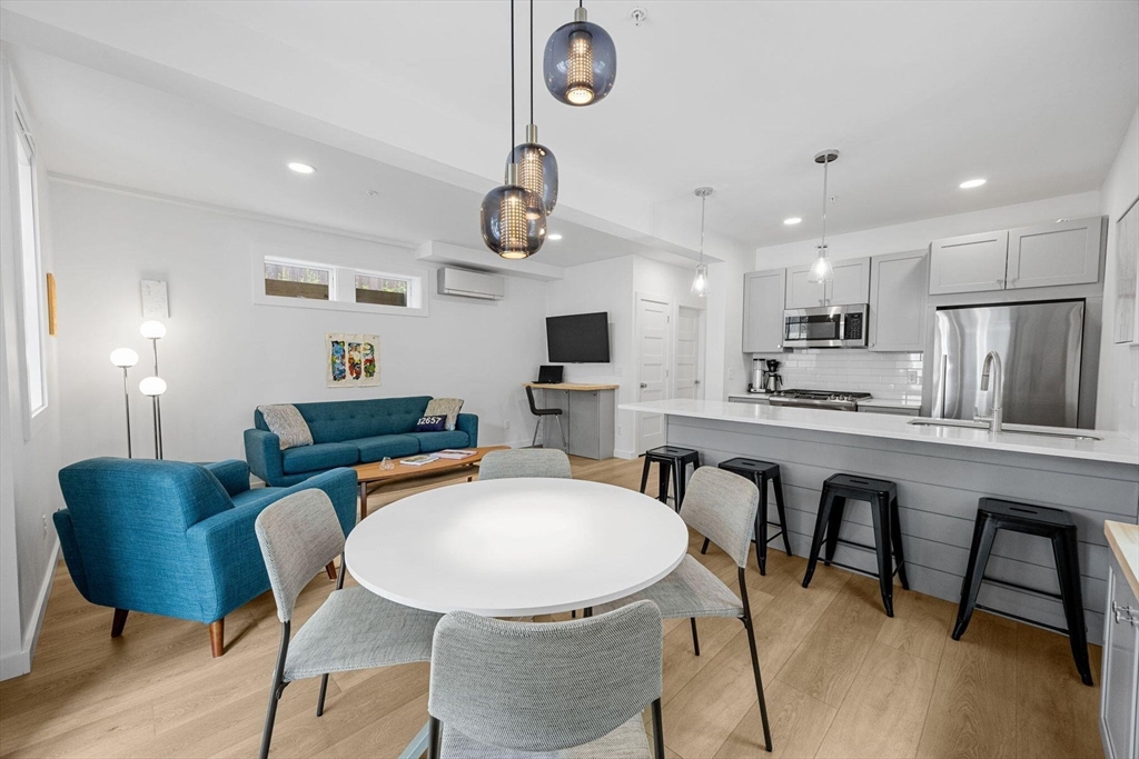 Located near the Provincetown Tennis Club, this 2021 garden-level condo combines modern design with everyday ease. Lightly lived in, it features nearly 9-foot ceilings, an open-concept layout, and a kitchen with upgraded cabinetry, high-end appliances, and a stone peninsula with seating for four. The spacious living and dining area flows seamlessly outdoors to a beautifully landscaped patio, perfect for entertaining or relaxing. A custom 110 sq. ft. shed offers ample storage for bikes, gear, and garden supplies, while an exclusive-use wooded area of about 9,000 sq. ft. provides privacy and potential for future use, such as an artist’s studio. With two bedrooms and two bathrooms, this rare East End property balances comfort, style, and convenience in one inviting package.