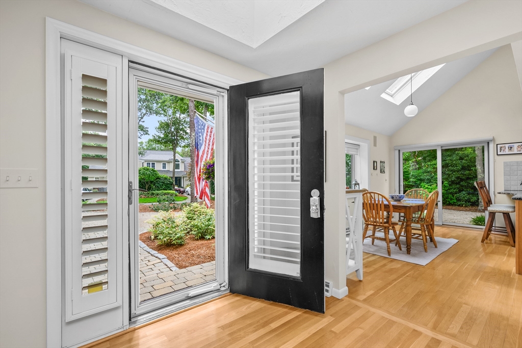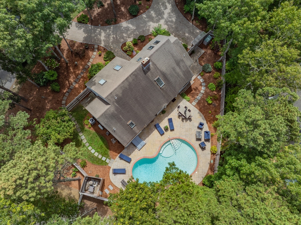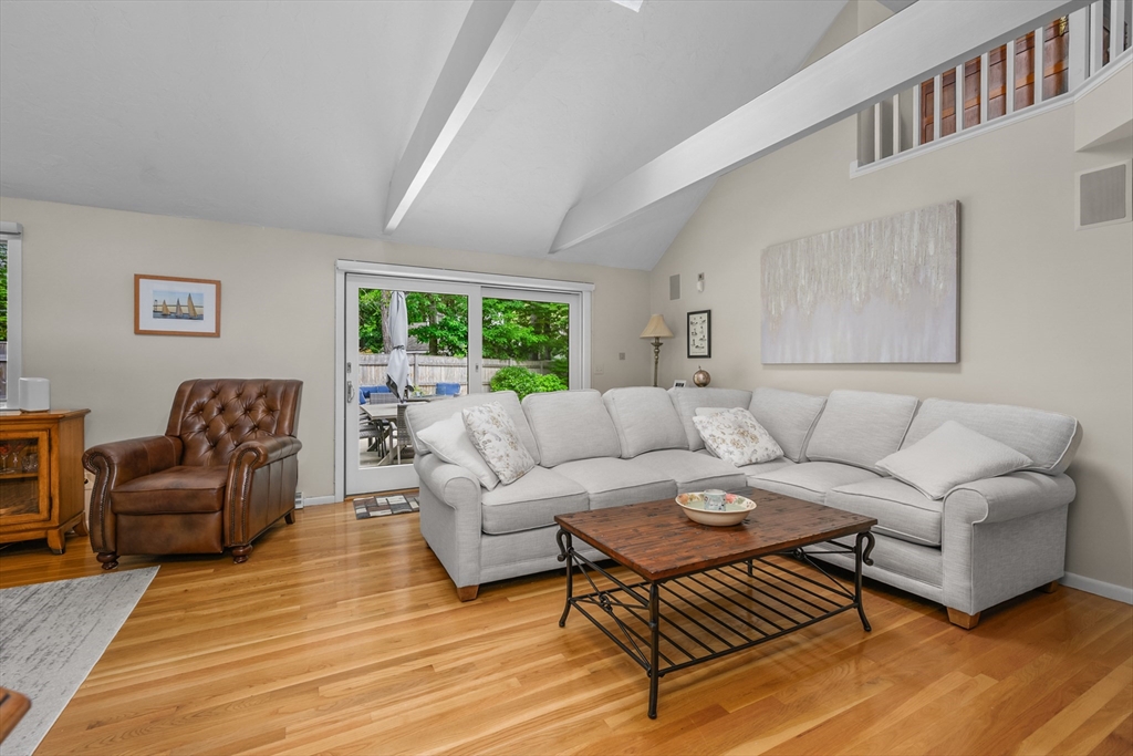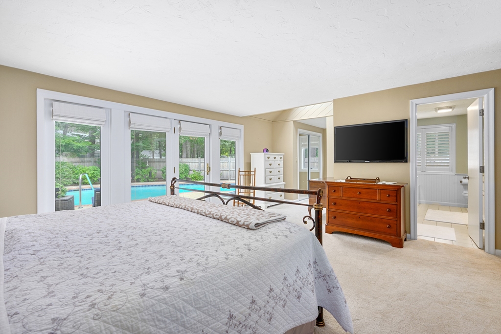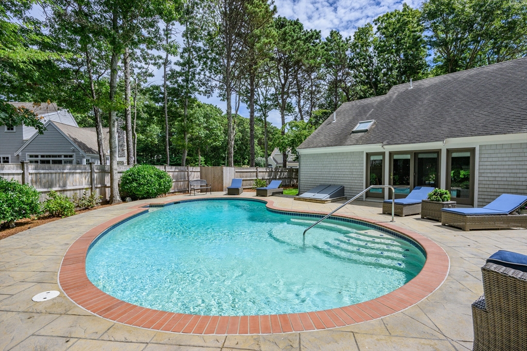 Move-in ready Contemporary Cape w/versatile floor plan & a great location in the much sought after Little Neck Bay subdivision. 4 BR, including a first floor primary w/ private bath & French doors to a beautiful in-ground pool. Nicely appointed kitchen w/soft close cabinets, stainless steel appliances, hardwood floors, & cathedraled breakfast area with 2 skylights. L-shaped living room w/hardwood floors, cathedraled & beamed ceilings & sliders to the pool. A lovely skylit entry foyer plus 2 guest BR, a full bath, & laundry complete the first floor. The second floor has a bedroom, a bath & a large open loft area. The lower level has a family room plus a half bath. Recent improvements include energy efficient Bosch hybrid heating & AC system, 2 new hot water heaters, pool heater, motor, electrical panel, pump, fencing & carpet in 1st floor bedrooms. There is a private association way that affords access to the water for kayaking & canoeing. The property is close to all Mashpee amenities.