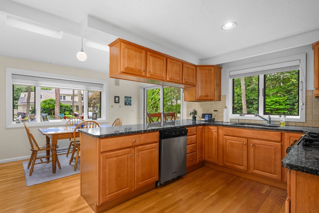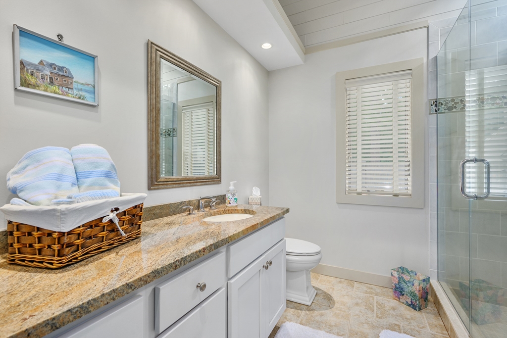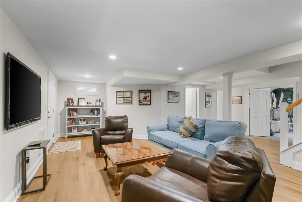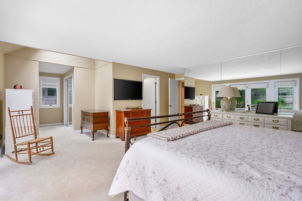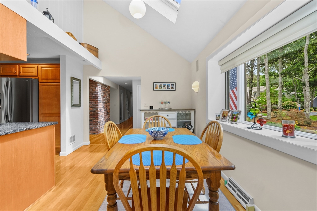 Move-in ready Contemporary Cape w/versatile floor plan & a great location in the much sought after Little Neck Bay subdivision. 4 BR, including a first floor primary w/ private bath & French doors to a beautiful in-ground pool. Nicely appointed kitchen w/soft close cabinets, stainless steel appliances, hardwood floors, & cathedraled breakfast area with 2 skylights. L-shaped living room w/hardwood floors, cathedraled & beamed ceilings & sliders to the pool. A lovely skylit entry foyer plus 2 guest BR, a full bath, & laundry complete the first floor. The second floor has a bedroom, a bath & a large open loft area. The lower level has a family room plus a half bath. Recent improvements include energy efficient Bosch hybrid heating & AC system, 2 new hot water heaters, pool heater, motor, electrical panel, pump, fencing & carpet in 1st floor bedrooms. There is a private association way that affords access to the water for kayaking & canoeing. The property is close to all Mashpee amenities.