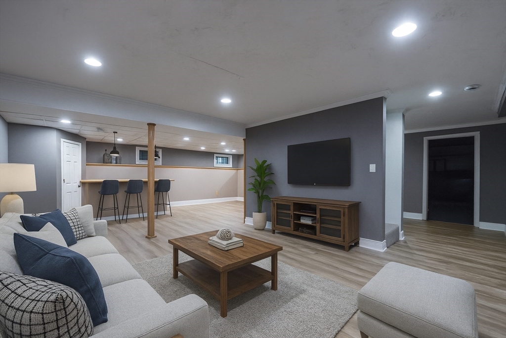 Welcome to this perfectly placed 4-bedroom, 2.5-bath home set on a spacious .93-acre cleared lot in a highly sought-after location. The first floor showcases a gorgeous kitchen with rich cabinets, granite countertops, and a large island, plus a generous dining room, family room with fireplace, and inviting living room. Terrific space to spread out. Hardwoods flow through most of the home, with new deluxe vinyl flooring in two bedrooms and the finished basement. Upstairs, the primary suite features elegant wallpaper, a walk-in closet, and a luxurious bath with jacuzzi tub, walk-in shower, and double vanity. Guest bathroom with double vanity. All bedrooms are terrific in size, offering comfort and flexibility. The finished basement adds valuable living space with endless possibilities—playroom, gym, or media room. Enjoy the best of both worlds—close to shopping, dining, and commuter routes, yet tucked away in a quiet setting. OPEN HOUSE SATURDAY 8/23 FROM 12-1:30